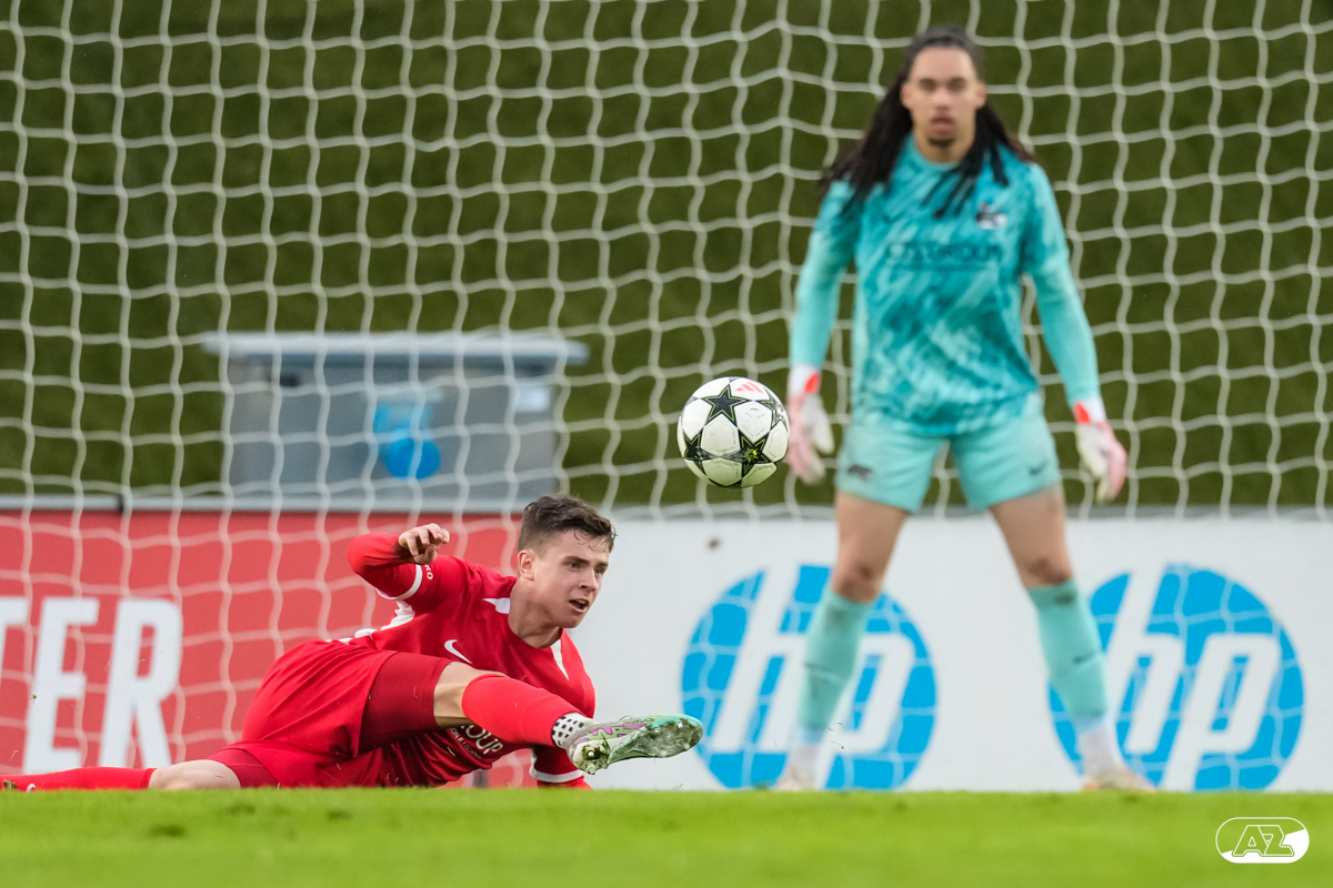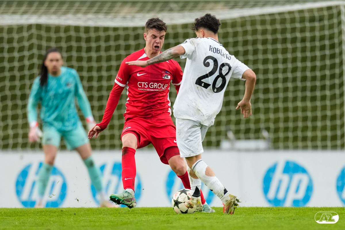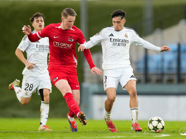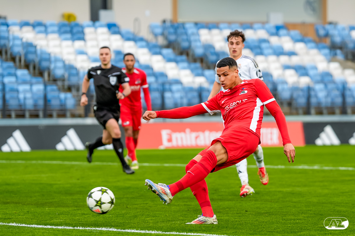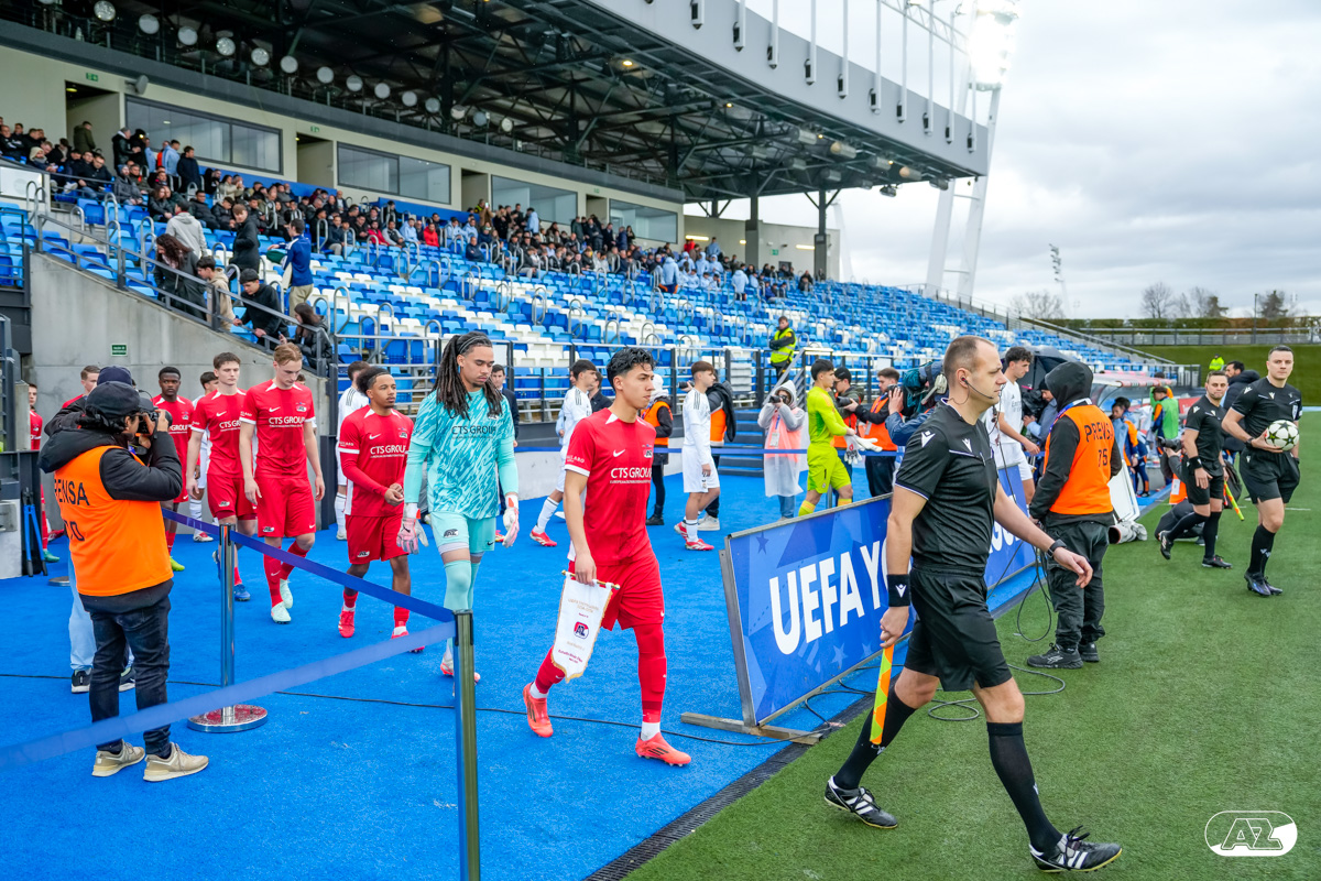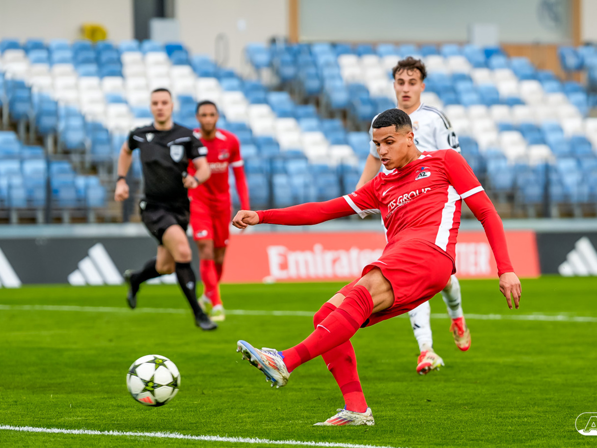 MADRID- AZ Onder 19 plaatste zich woensdagmiddag voor de kwartfinale van de UEFA Youth League. In het Estadio Alfredo Di Stéfano werd het Spaanse Real Madrid met 0-2 verslagen. Wassim Bouziane en Anthony Smits waren trefzeker namens de Alkmaarders. De overwinning in beeld. (Foto's: Ed van de Pol).