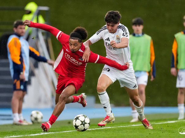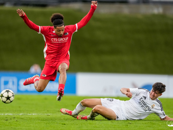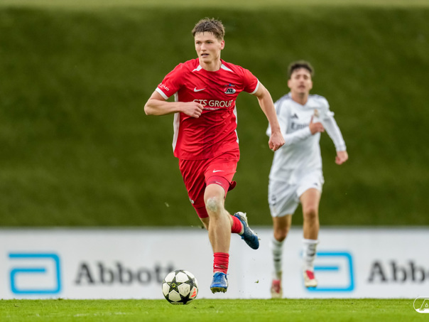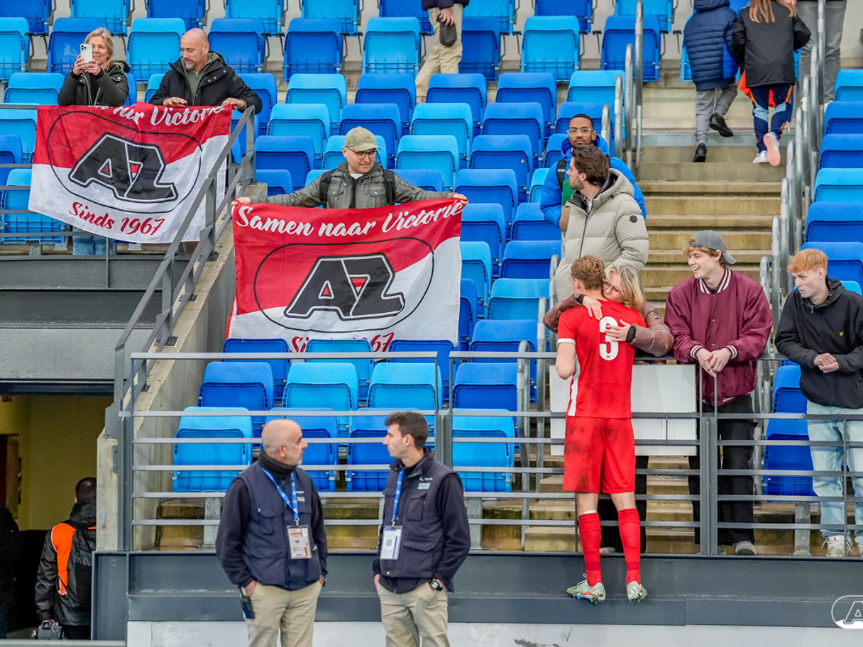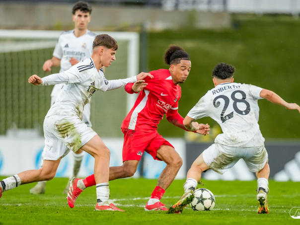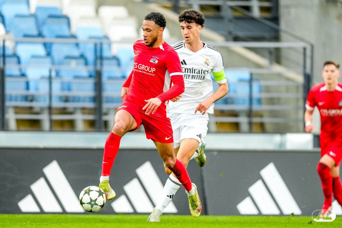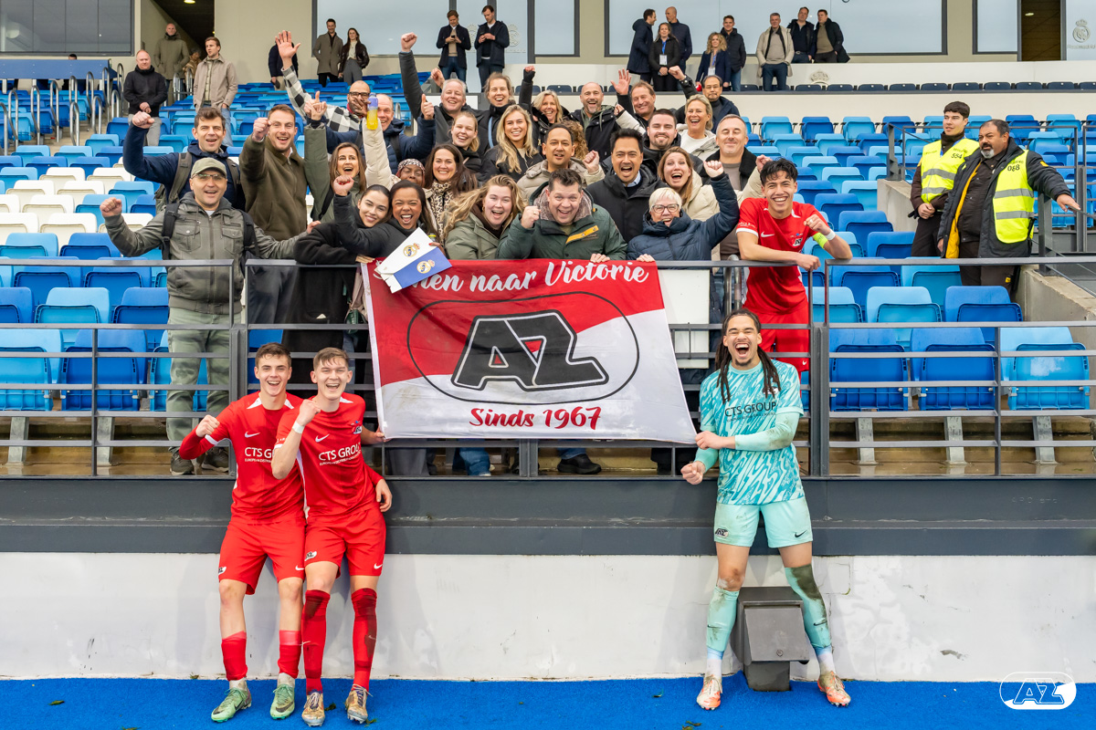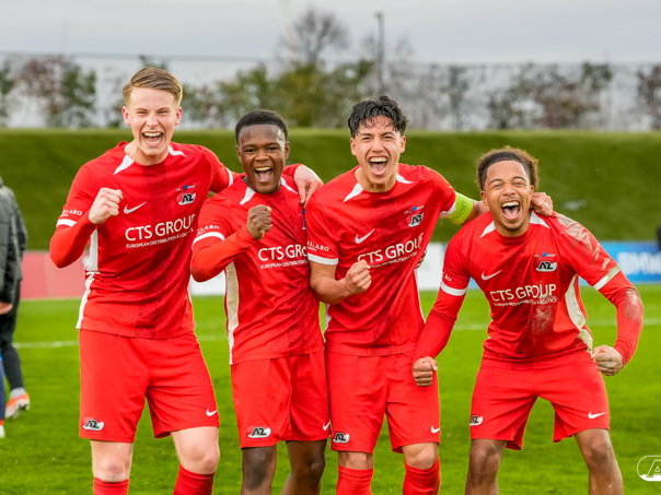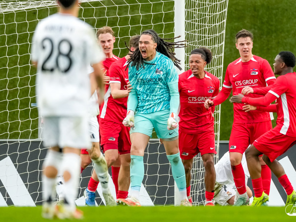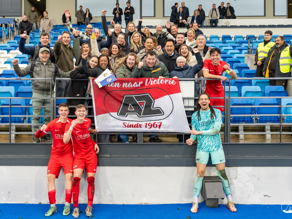 MADRID- AZ Onder 19 plaatste zich woensdagmiddag voor de kwartfinale van de UEFA Youth League. In het Estadio Alfredo Di Stéfano werd het Spaanse Real Madrid met 0-2 verslagen. Wassim Bouziane en Anthony Smits waren trefzeker namens de Alkmaarders. De overwinning in beeld. (Foto's: Ed van de Pol).