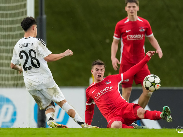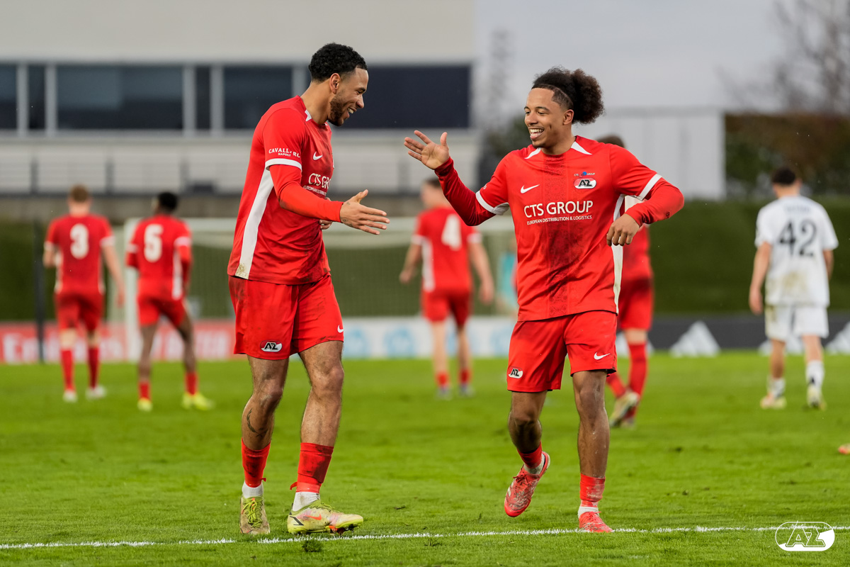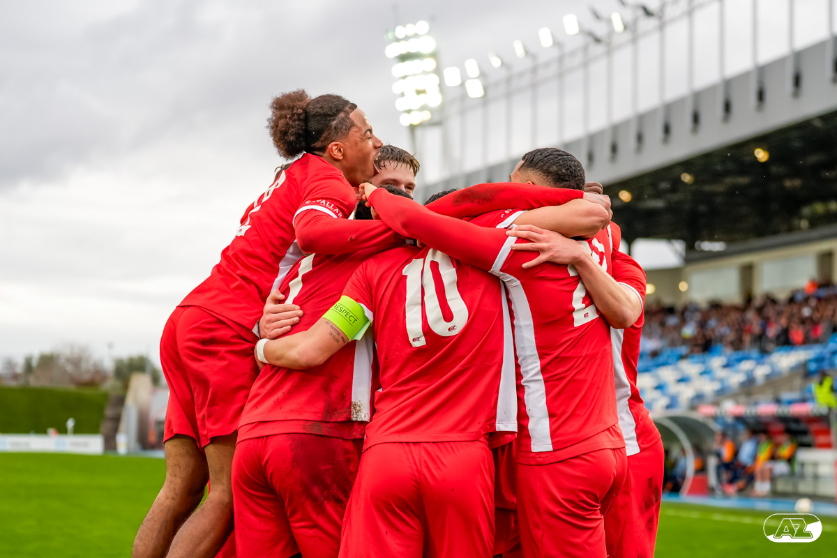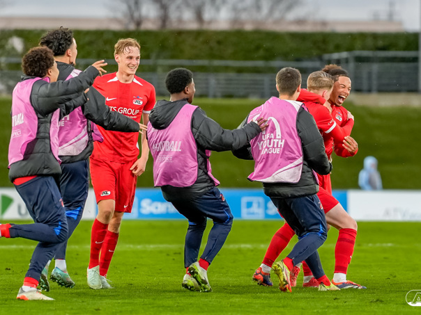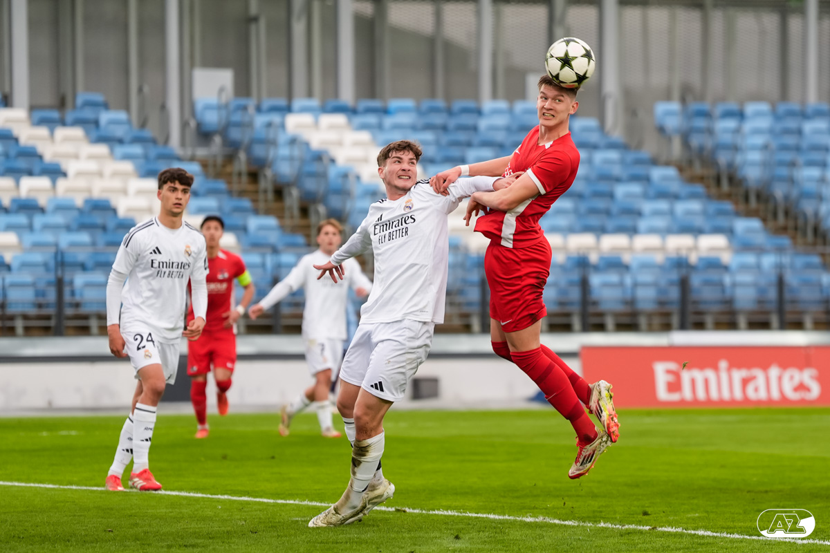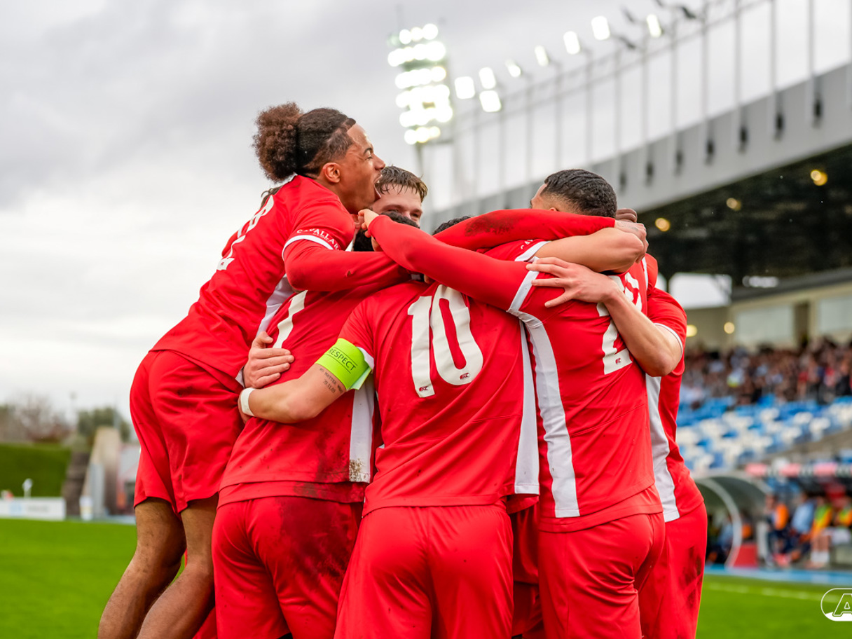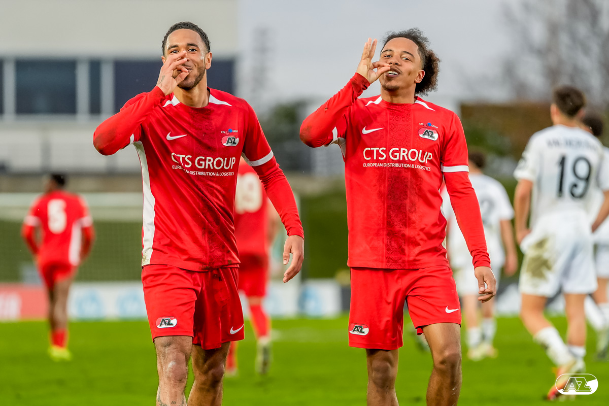 MADRID- AZ Onder 19 plaatste zich woensdagmiddag voor de kwartfinale van de UEFA Youth League. In het Estadio Alfredo Di Stéfano werd het Spaanse Real Madrid met 0-2 verslagen. Wassim Bouziane en Anthony Smits waren trefzeker namens de Alkmaarders. De overwinning in beeld. (Foto's: Ed van de Pol).