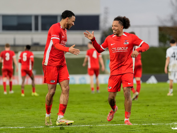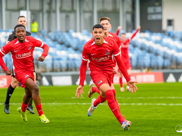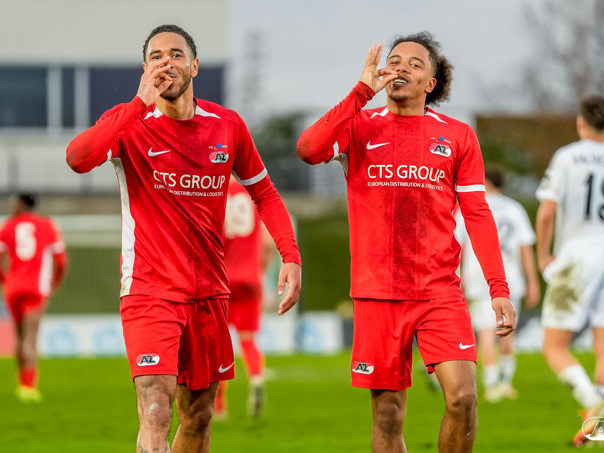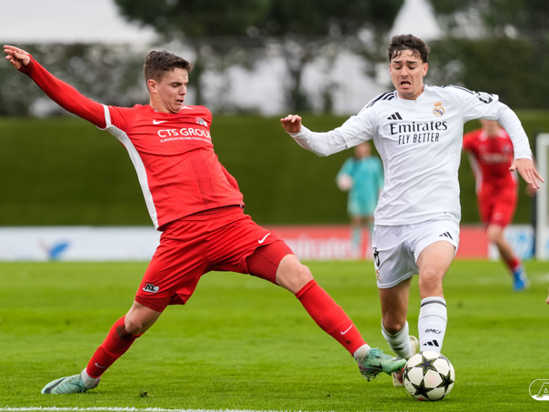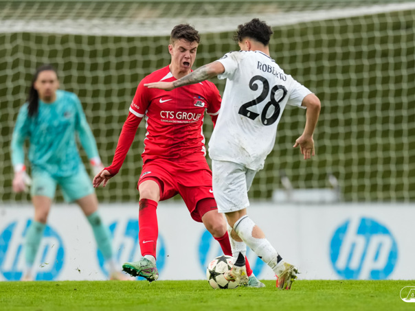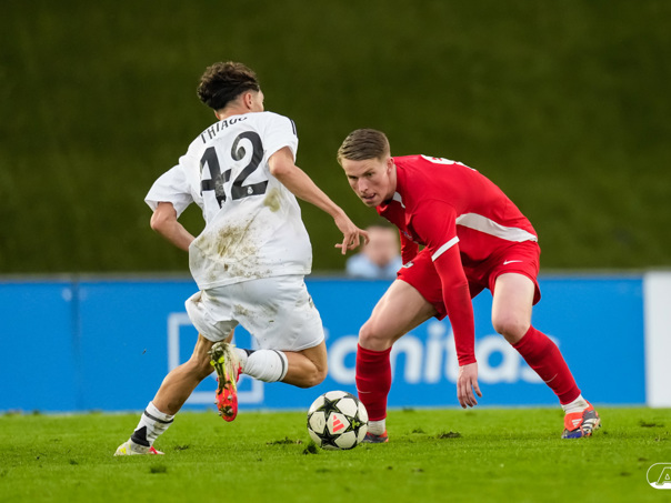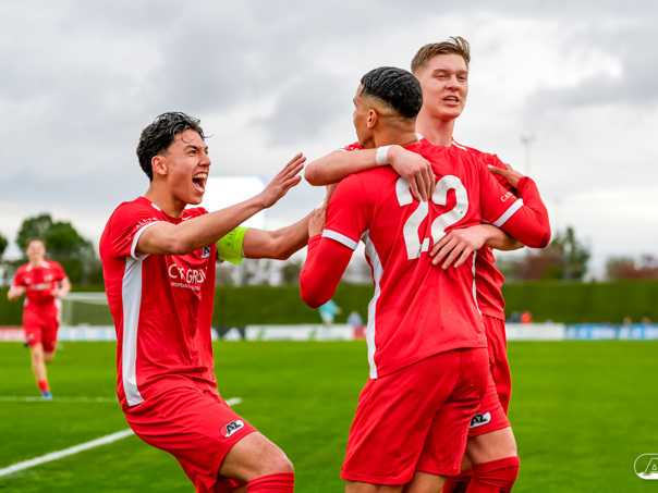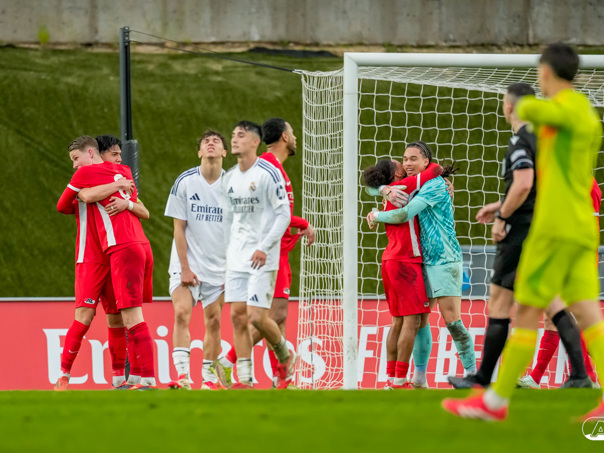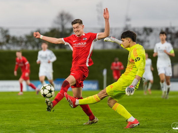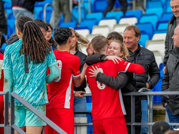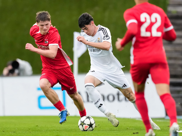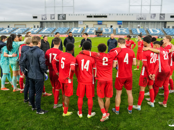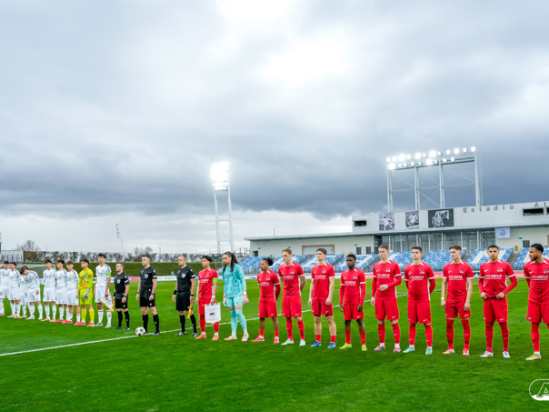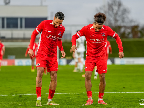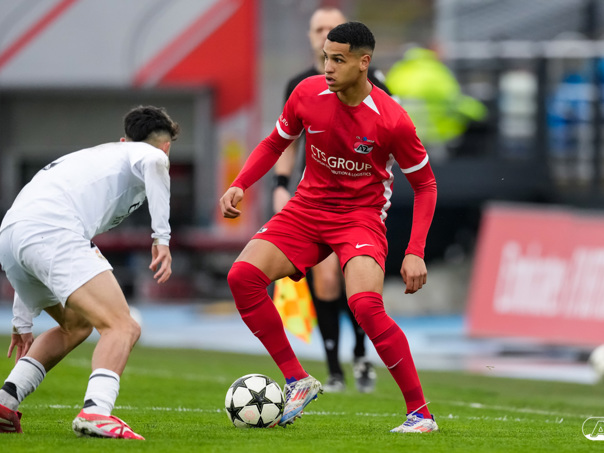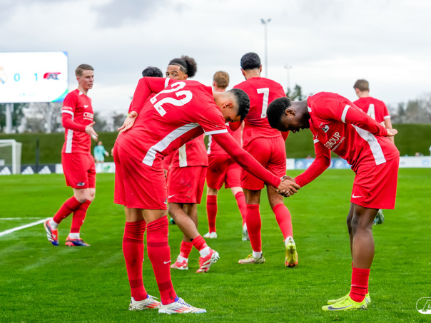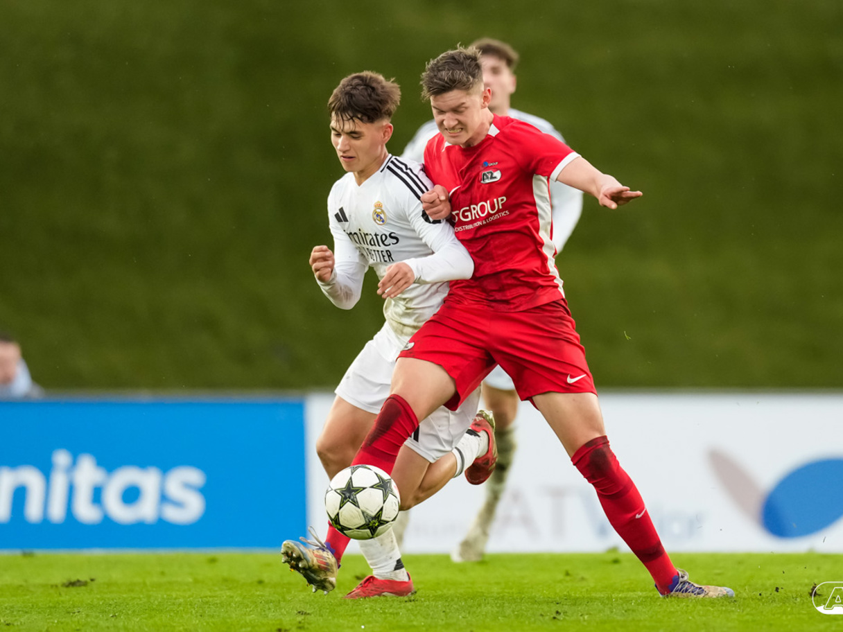 MADRID- AZ Onder 19 plaatste zich woensdagmiddag voor de kwartfinale van de UEFA Youth League. In het Estadio Alfredo Di Stéfano werd het Spaanse Real Madrid met 0-2 verslagen. Wassim Bouziane en Anthony Smits waren trefzeker namens de Alkmaarders. De overwinning in beeld. (Foto's: Ed van de Pol).