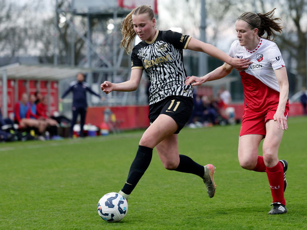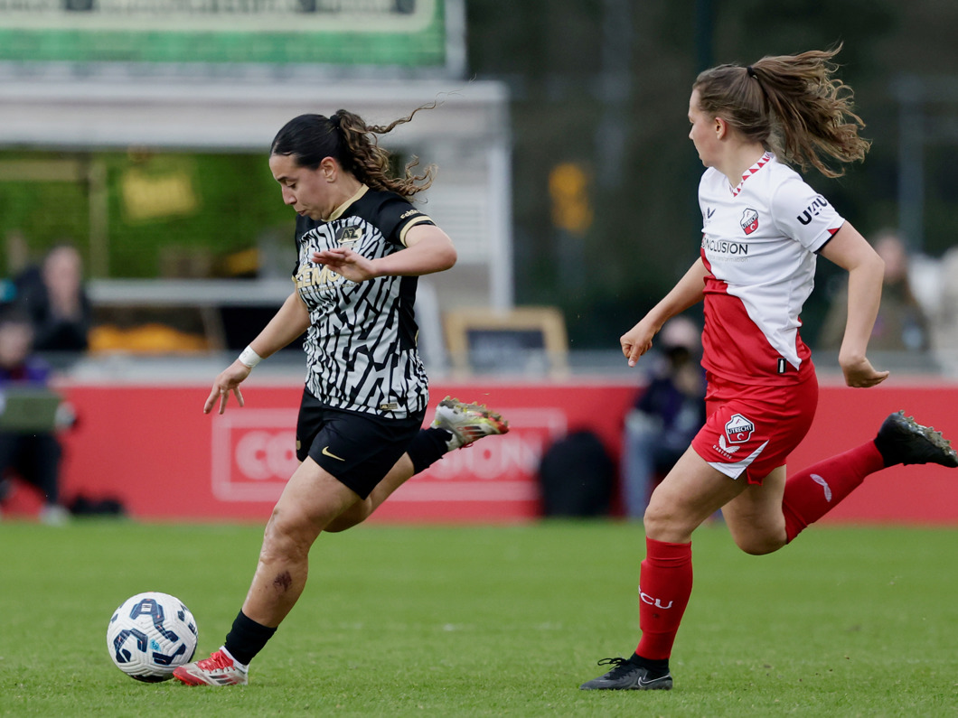 UTRECHT- De AZ Vrouwen wonnen zaterdagmiddag na een spannende wedstrijd op Sportcomplex Zoudenbalch van FC Utrecht. De ploeg van trainer Wouter de Vogel kwam vlak voor rust op achterstand, maar draaide de wedstrijd in de tweede helft om. Dankzij twee treffers van Fieke Kroese keerden de Alkmaarders met een 1-2 overwinning terug naar huis.