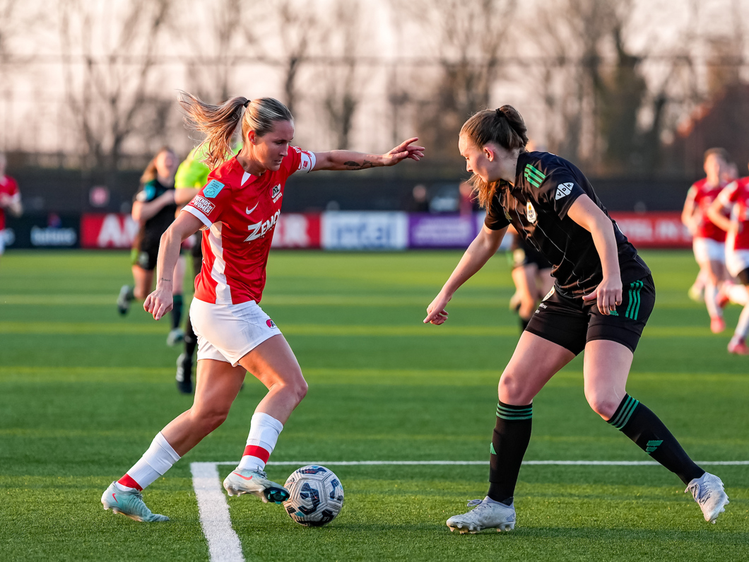 ZAANSTAD- De AZ Vrouwen waren zaterdagmiddag met 2-0 te sterk voor de vrouwen van PEC Zwolle. Op het zonnige AFAS Trainingscomplex vielen beide goals in de eerste helft. Isa Colin nam de eerste treffer voor haar rekening en ruim een kwartier later verdubbelde Floor Spaan de score.