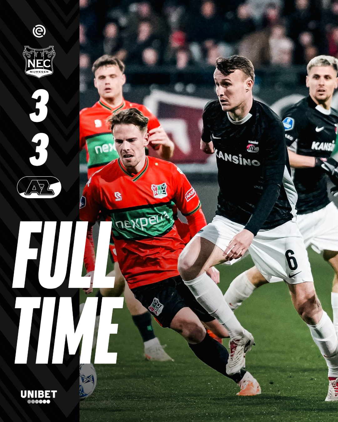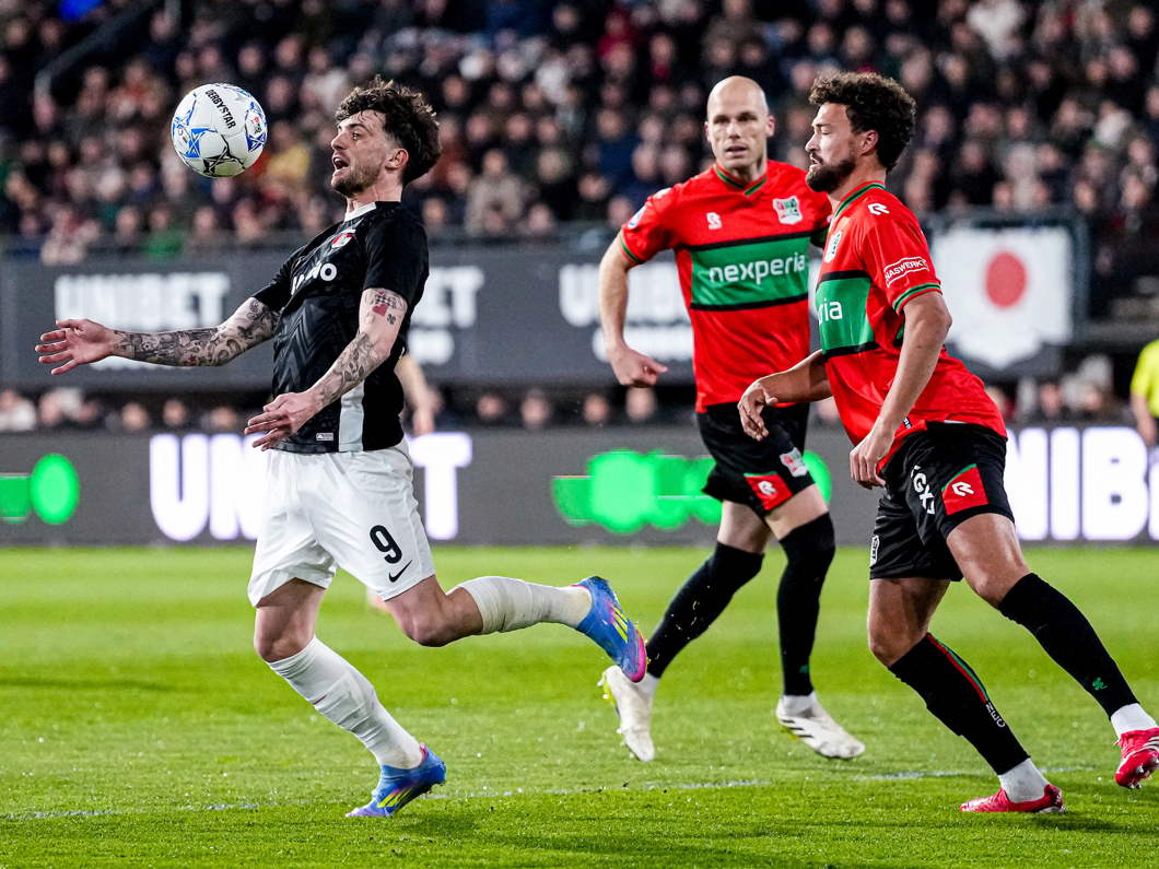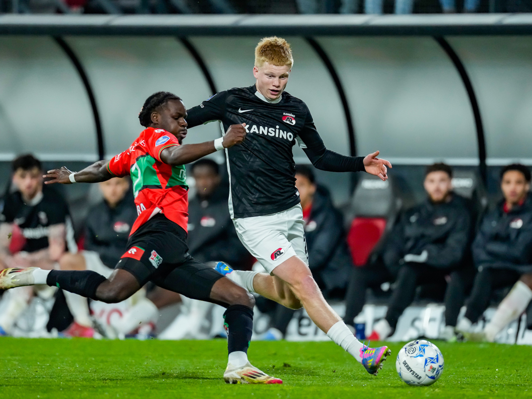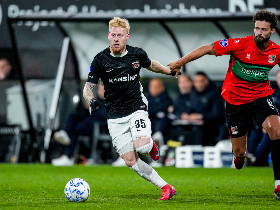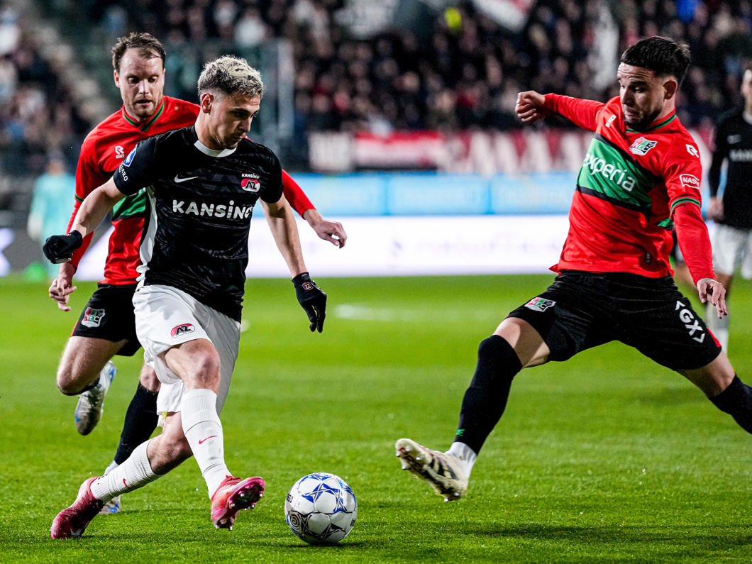 NIJMEGEN- AZ hield zaterdagavond slechts één punt over aan het duel met N.E.C. Nijmegen. In het Goffertstadion ging de ploeg van Maarten Martens met een 1-2 voorsprong de rust in, maar twee treffers in de tweede helft van de thuisploeg resulteerden uiteindelijk in een 3-3 gelijkspel. De Alkmaarse goals werden gemaakt door Ibrahim Sadiq, Ernest Poku en Troy Parrott.
