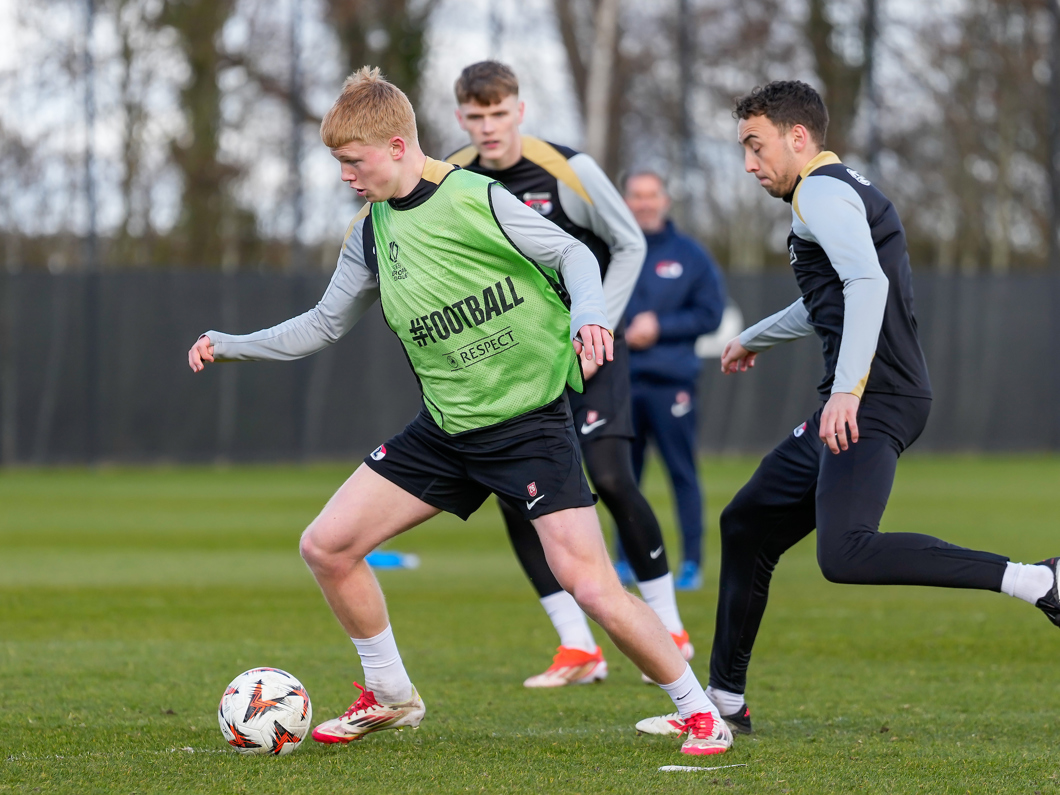 De laatste training wordt traditioneel gezien altijd afgewerkt op locatie, maar woensdagmiddag stond de training eenmalig op het eigen AFAS Trainingscomplex op het programma.