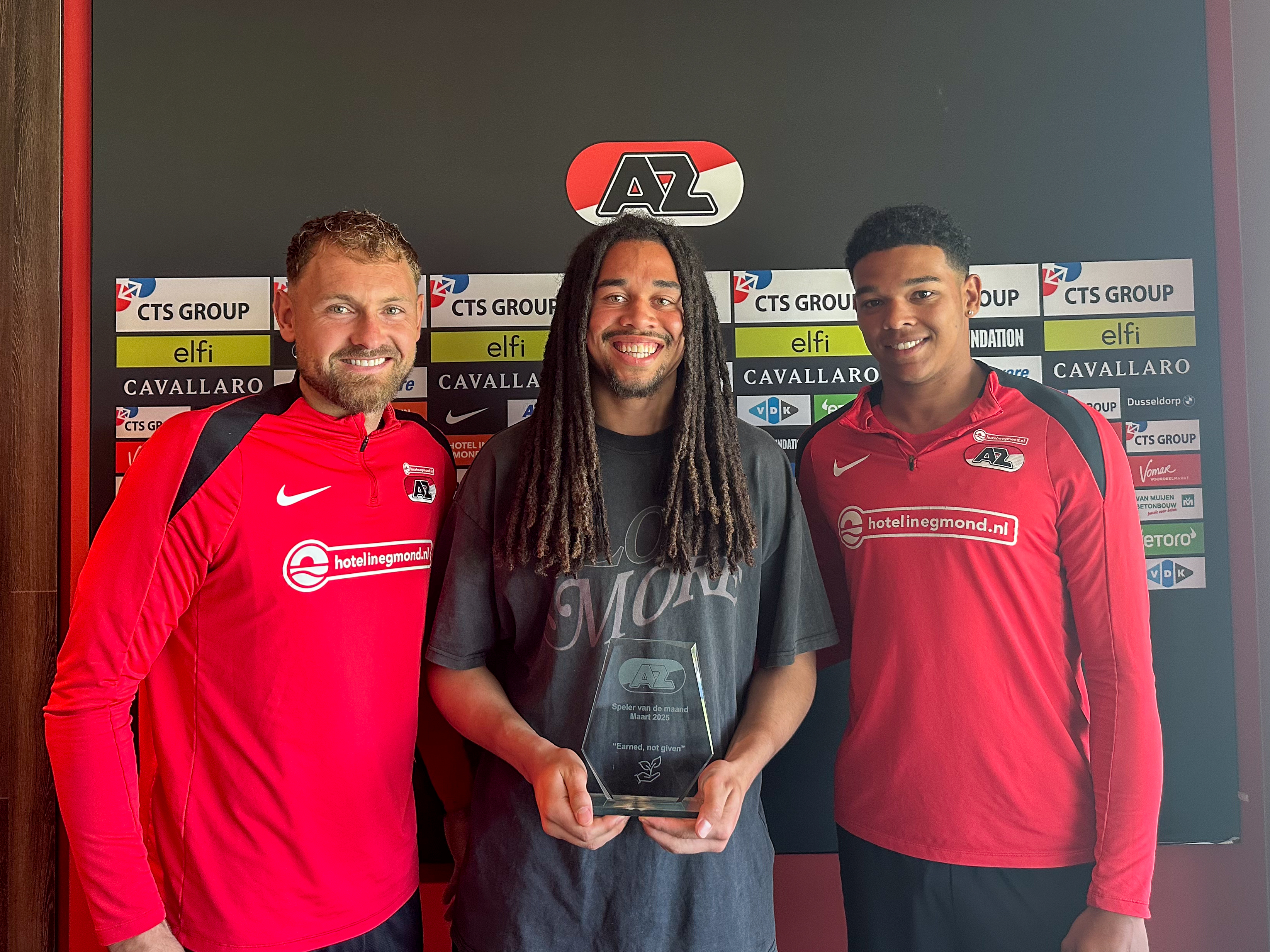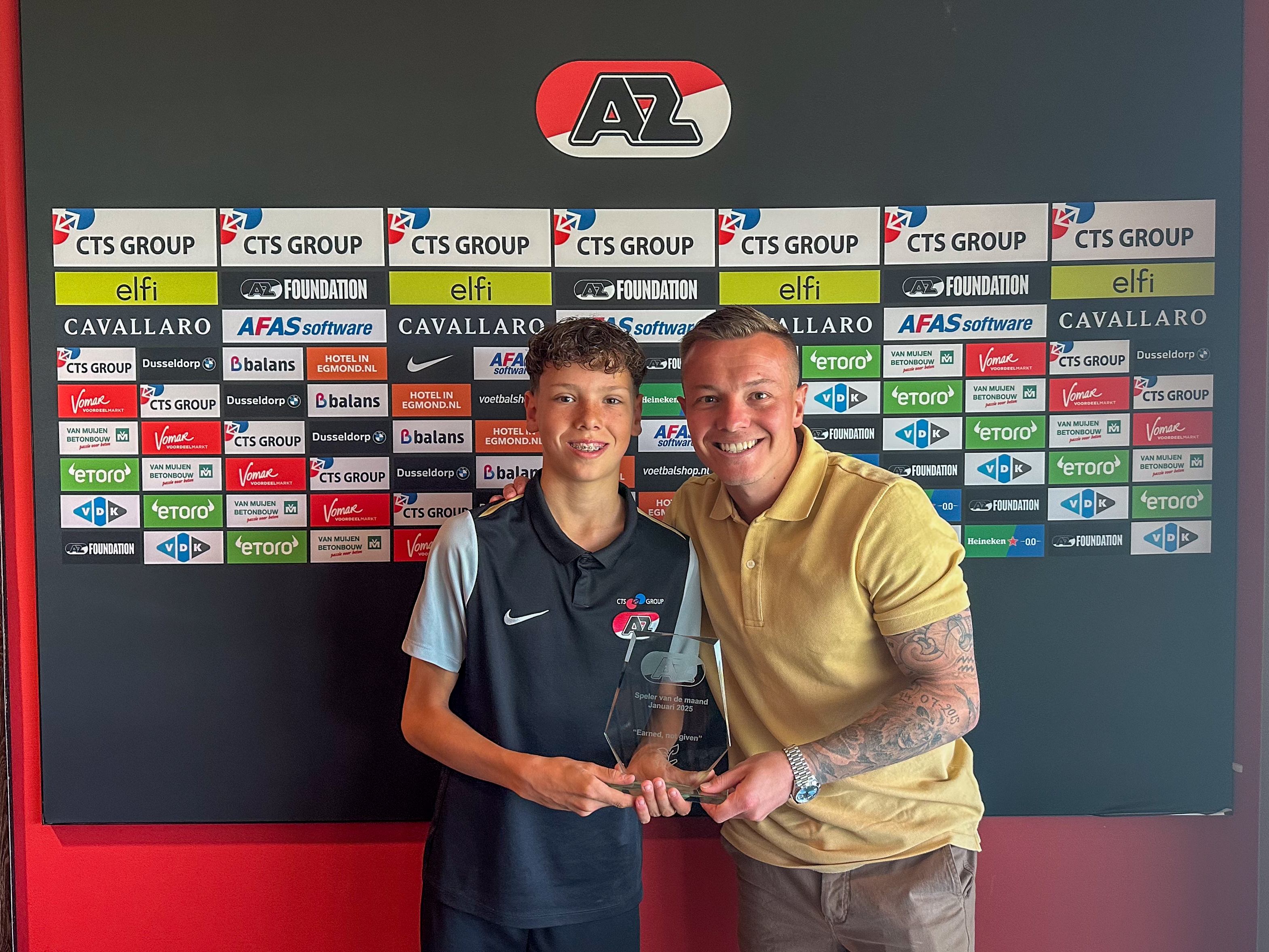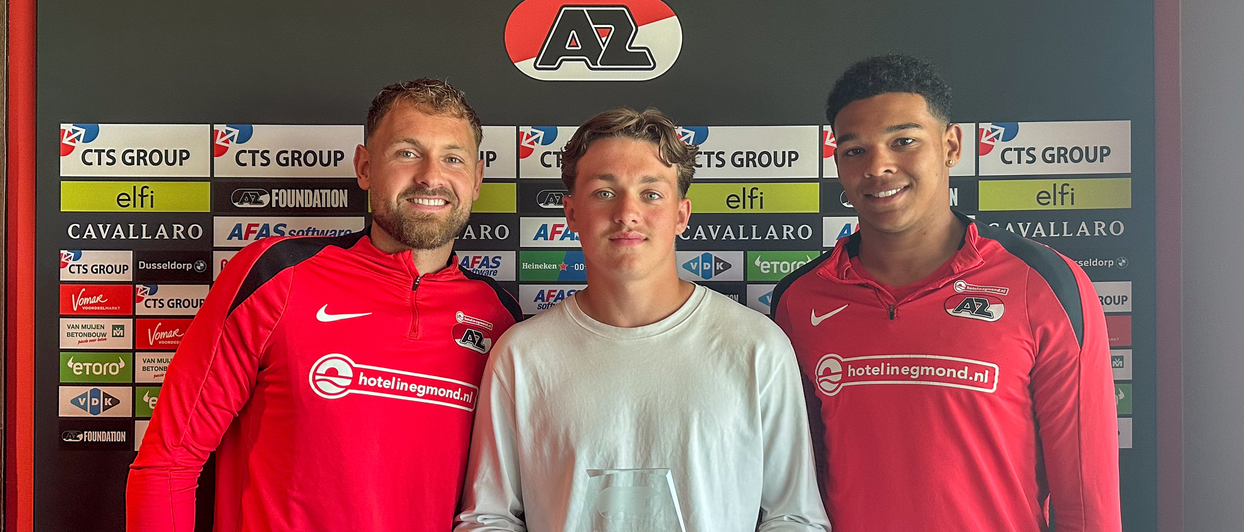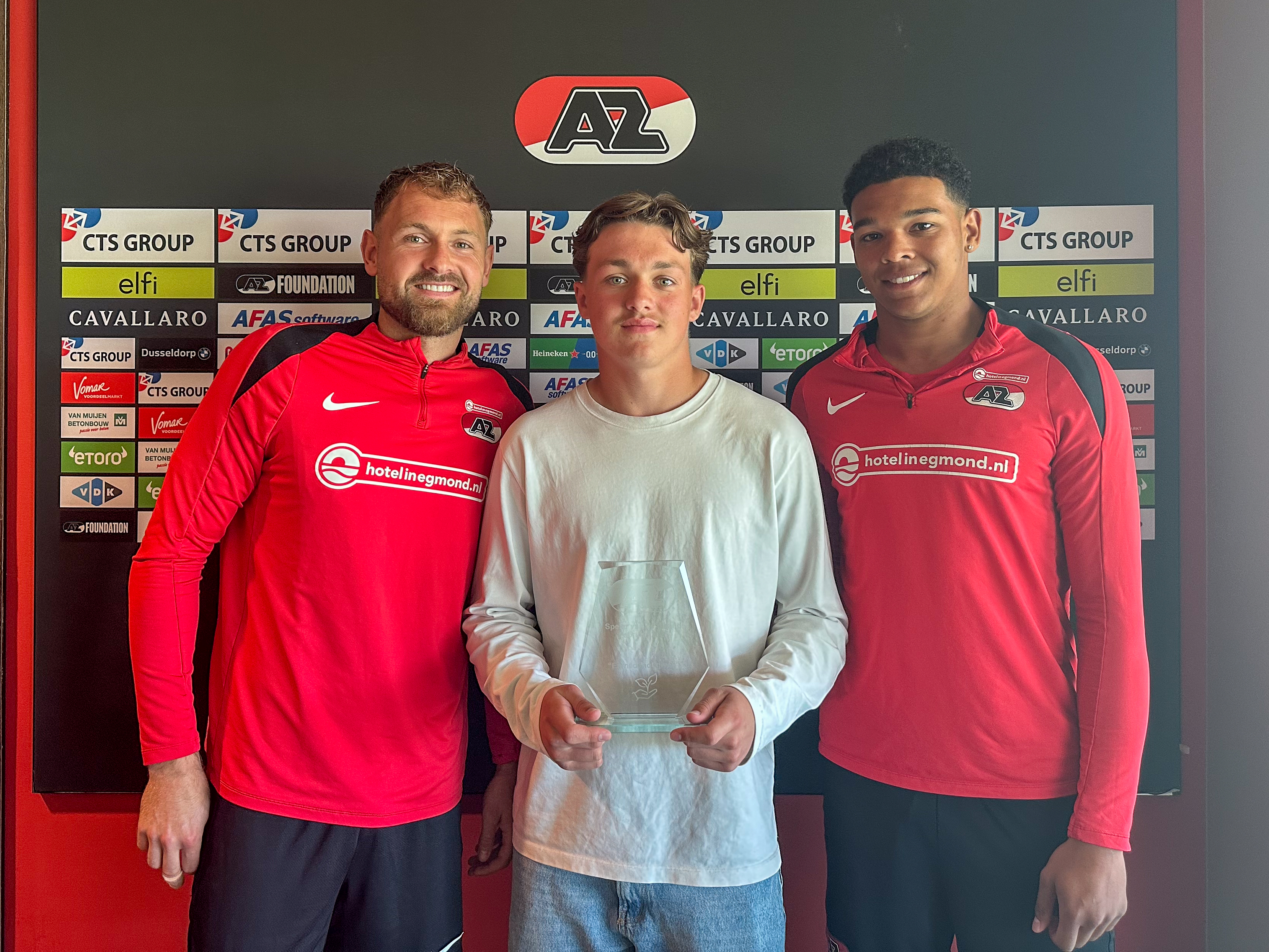 ZAANSTAD- AZ-jeugdspelers Matias Bernardos (Onder 12), Nick Homan (Onder 17) en Kiyani Zeggen (Jong AZ) zijn op het AFAS Trainingscomplex door de AZ Jeugdopleiding gehuldigd als CTS Group Speler van de Maand. De jonge AZers gingen vervolgens in gesprek met Jordy Clasie, Rome-Jayden Owusu-Oduro en Jeroen Zoet uit het eerste elftal.