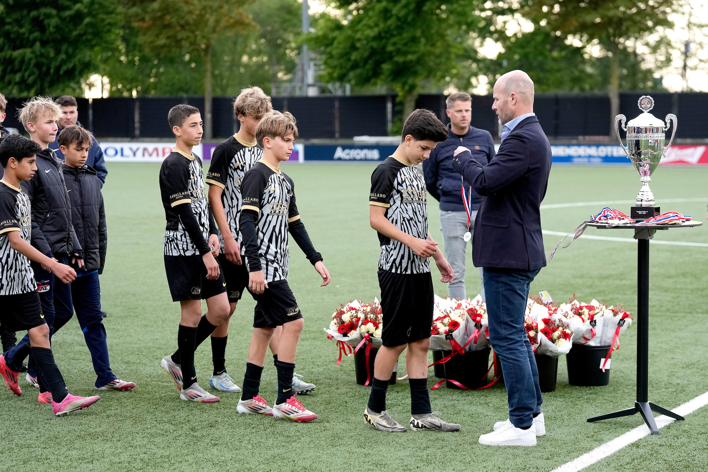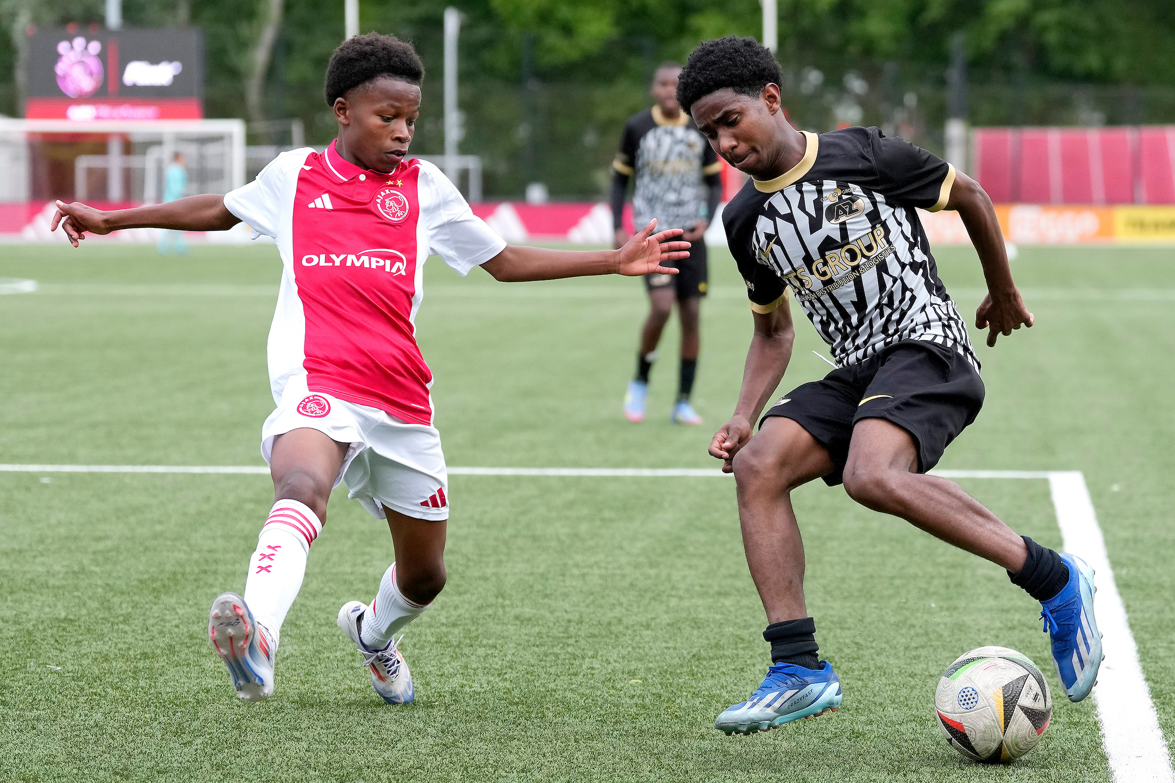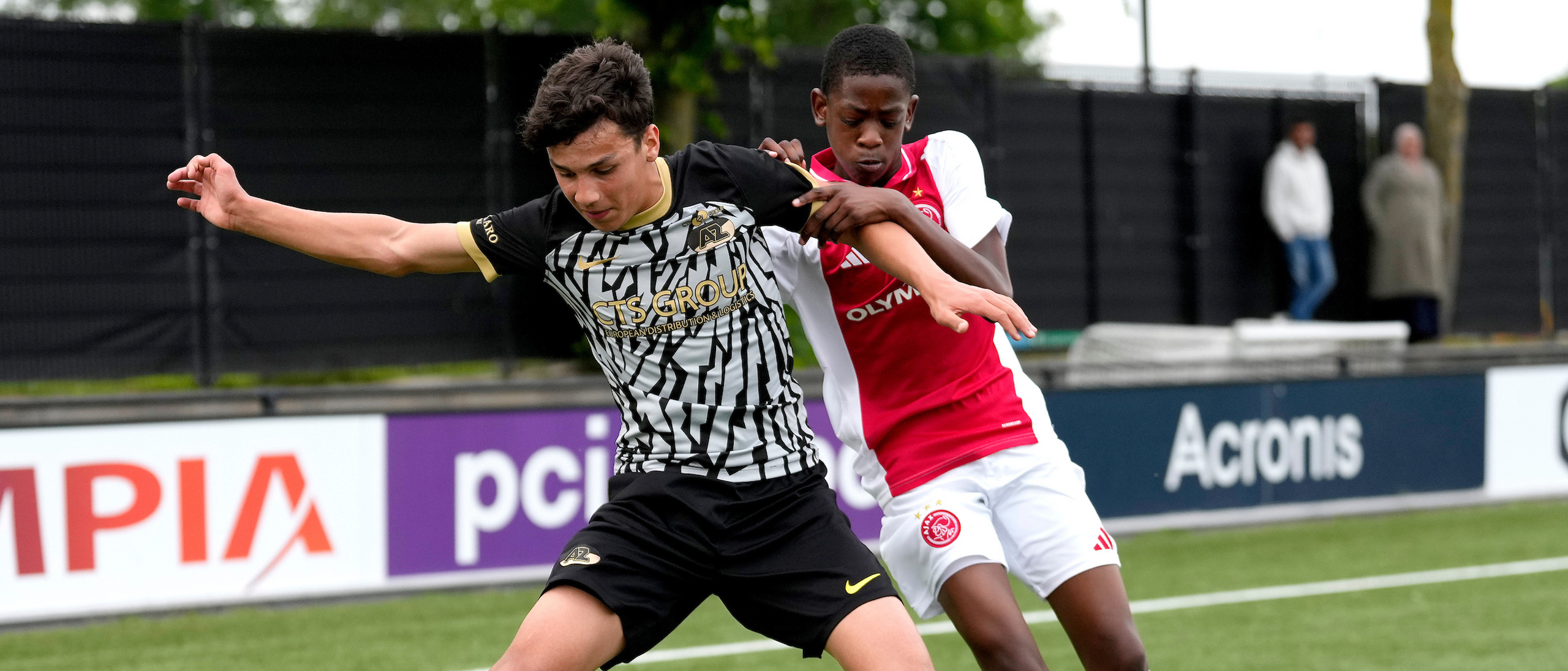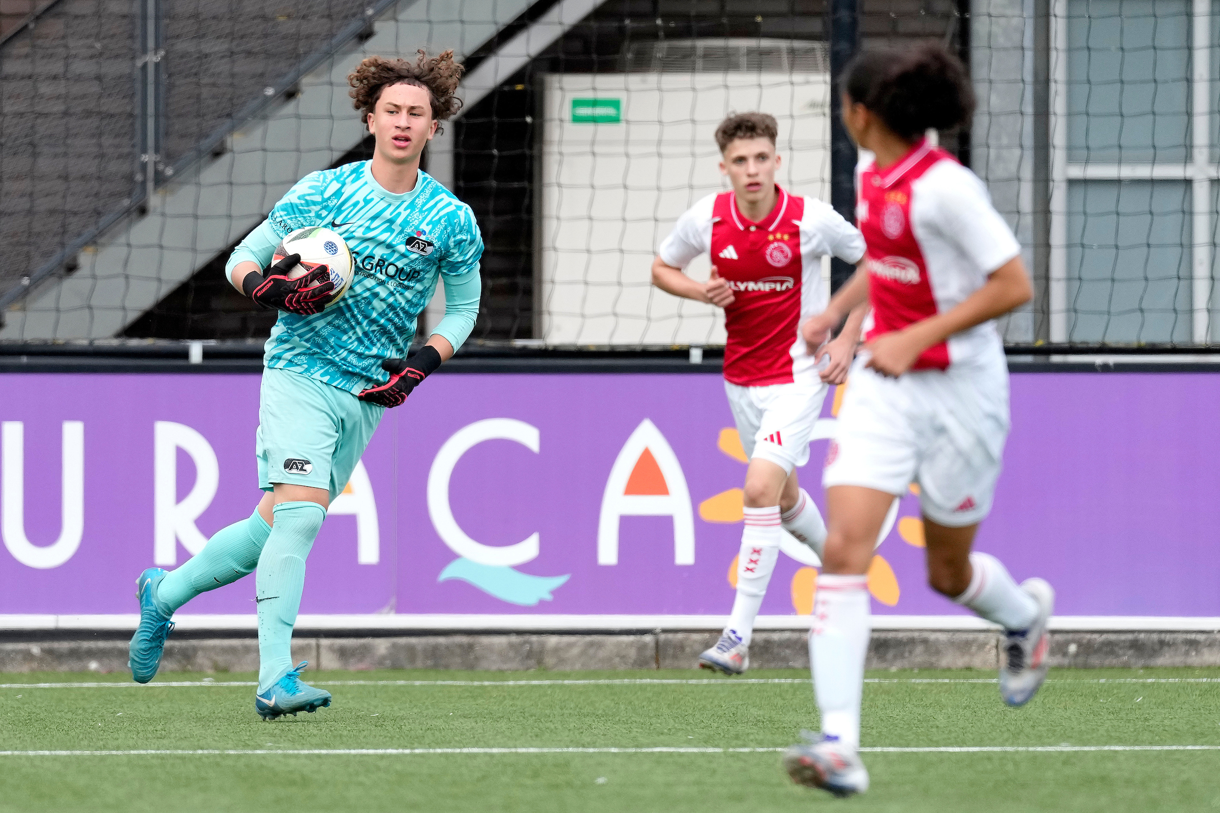 AMSTERDAM- AZ Onder 14 heeft woensdagavond naast de KNVB Beker gegrepen. In de finale tegen Ajax op sportcomplex De Toekomst bleven de Alkmaarders lange tijd op gelijke hoogte, maar incasseerden zij na rust twee doelpunten en moesten zij hun meerdere erkennen in de thuisploeg: 2-0.