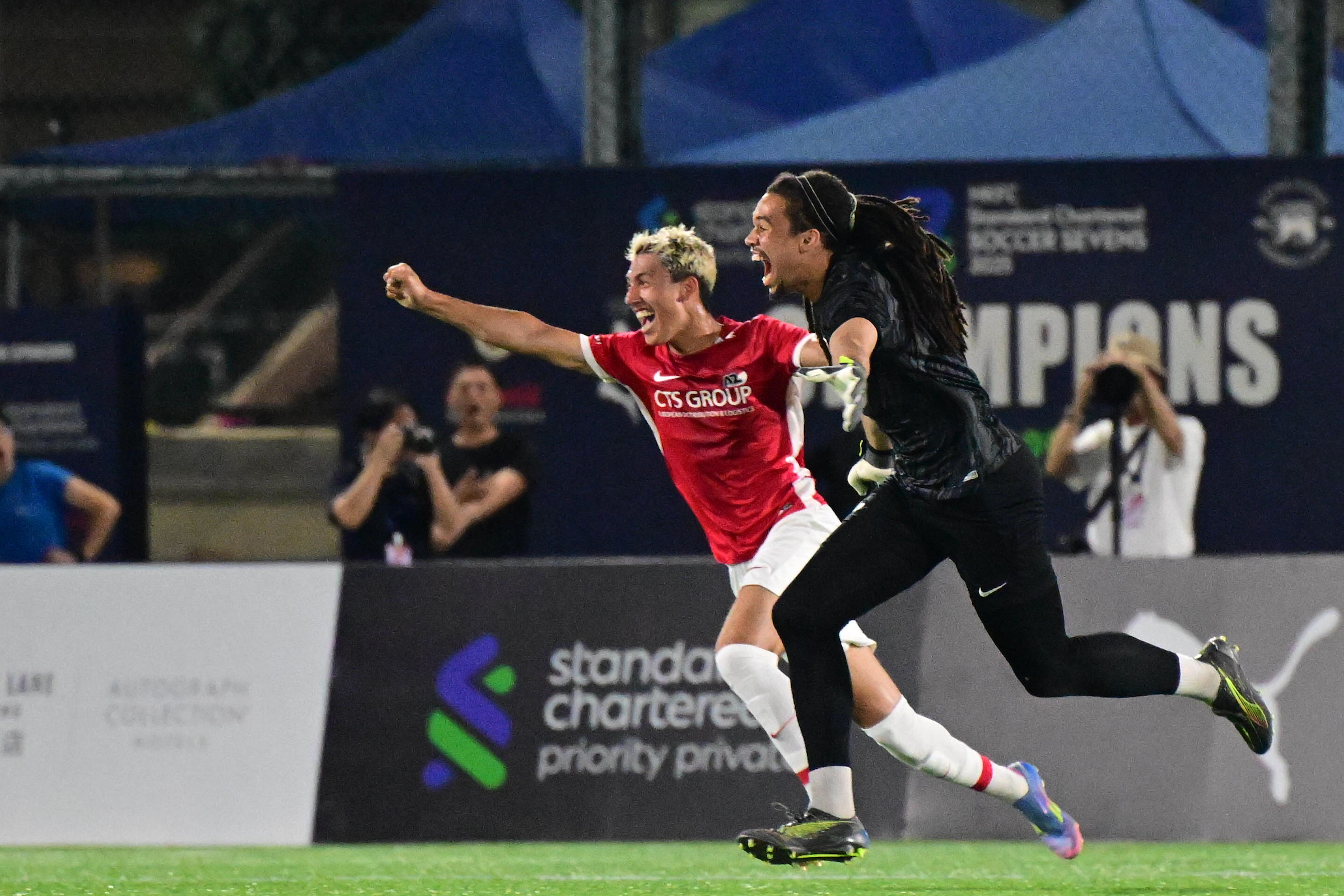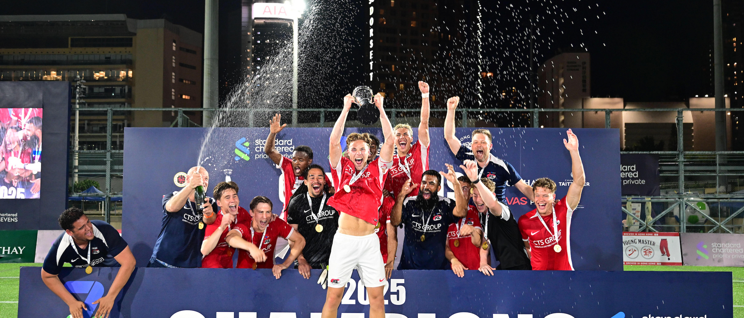 HONGKONG- AZ kroonde zich zondag tot winnaar van het HKFC Standard Chartered Soccer Sevens-toernooi in Hongkong. Een spannende finale tegen titelhouder Brighton & Hove Albion eindigde in een 0-0 gelijkspel, waarna doelman Kiyani Zeggen in de verlenging de winnende goal maakte. Aanvaller Sem van Duijn werd tevens uitgeroepen tot Speler van het Toernooi.