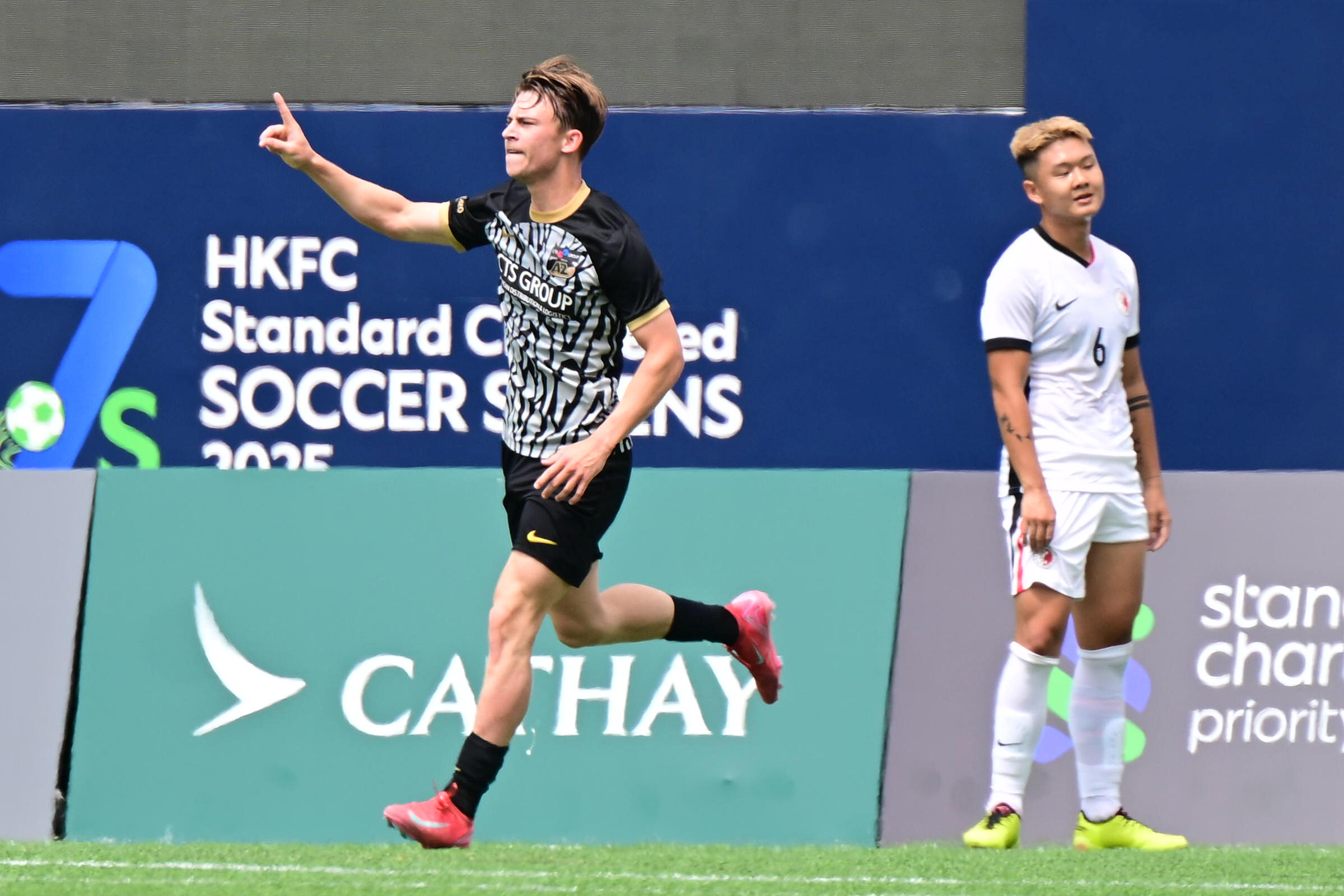 Halverwege de eerste helft slaagde AZ erin de voorsprong te verdubbelen. Opnieuw was het Van Duijn die werd aangespeeld door Esajas en de verre onderhoek vond: 0-2. In het tweede bedrijf maakte Van Duijn zijn hattrick compleet op aangeven van Julian Oerip. Hiermee komt Alkmaarse aanvalsleider op vijf doelpunten in het HKFC Standard Chartered Soccer Sevens-toernooi en bepaalde hij de eindstand op 0-3.