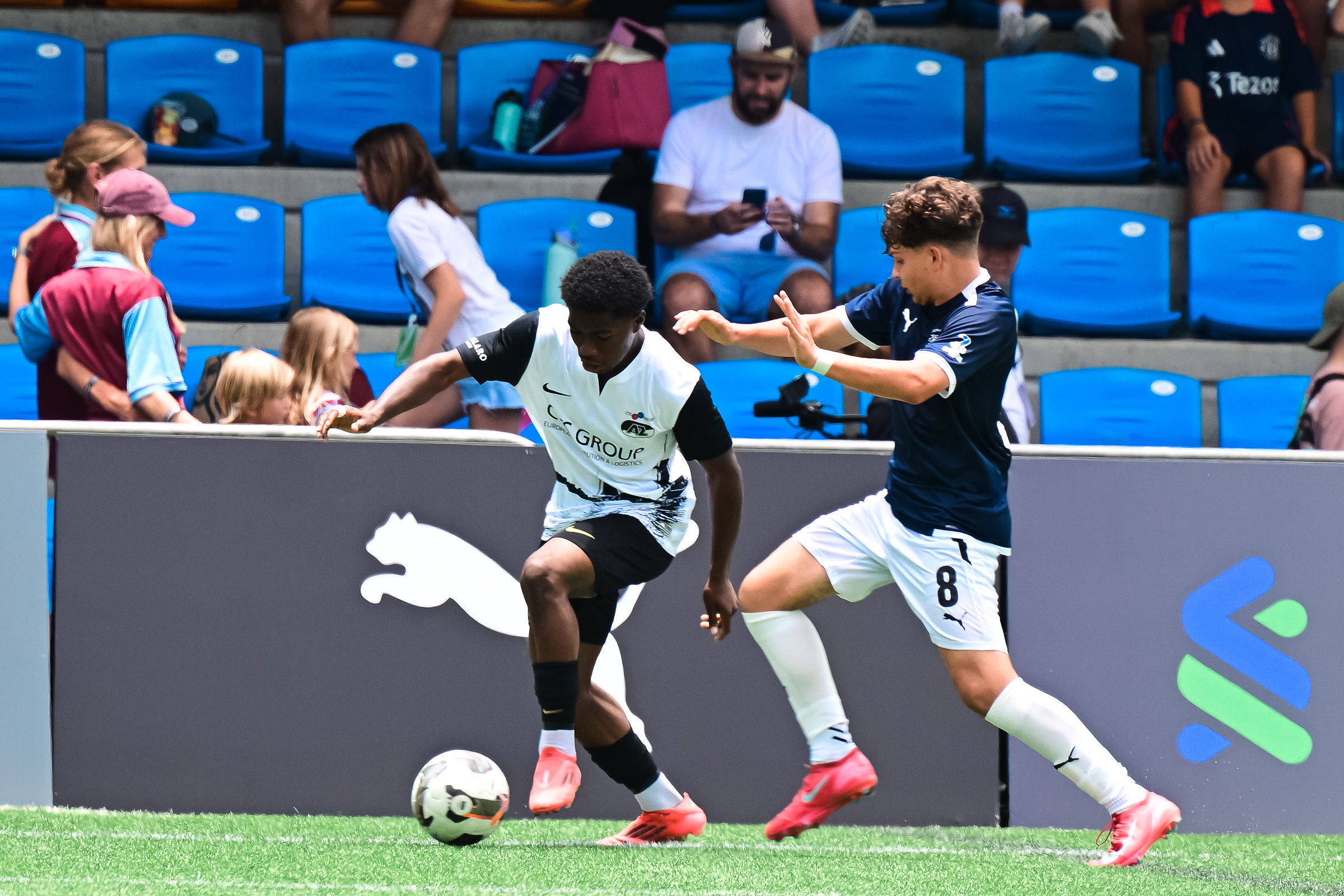 AZ bleef aanvallen en kwam dichtbij een openingstreffer via Kiani Inge. De opkomende back zag zijn schot echter rakelings naast het doel verdwijnen. Aan de andere kant van het veld viel het doelpunt wel. Spits Cai McGunnigle leek een overtreding te begaan op Esajas, maar mocht door en schoot vervolgens diagonaal raak. Deze tegentreffer resulteerde in een 0-1 nederlaag.