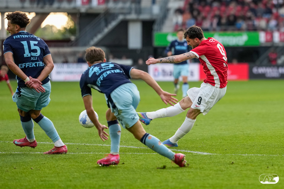 ALKMAAR- AZ heeft donderdagavond een ruime overwinning geboekt op sc Heerenveen. In het AFAS Stadion eindigde de eerste wedstrijd van de play-offs om een Europees ticket in een 4-1 zege voor de thuisploeg. Bekijk hier het duel door de lens van clubfotograaf Ed van de Pol.