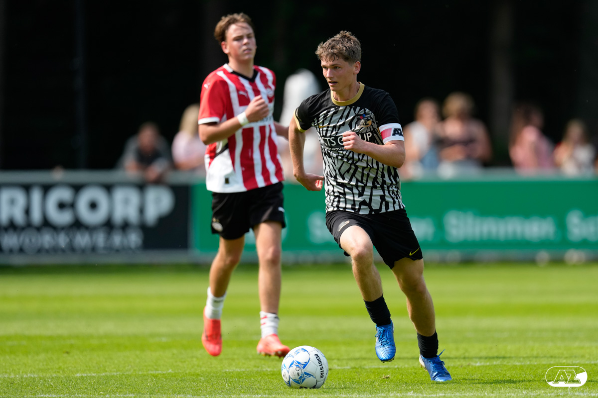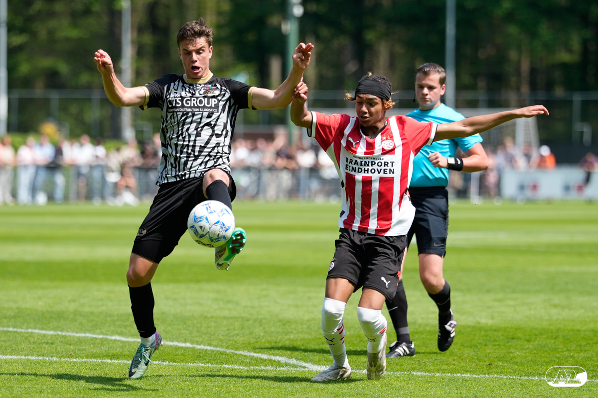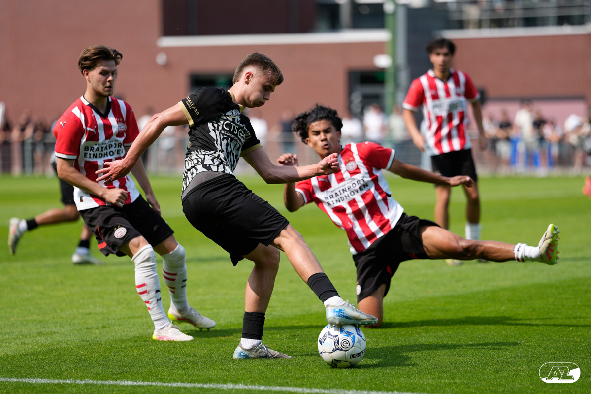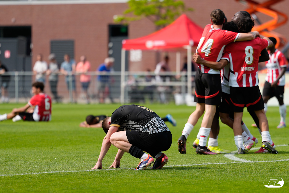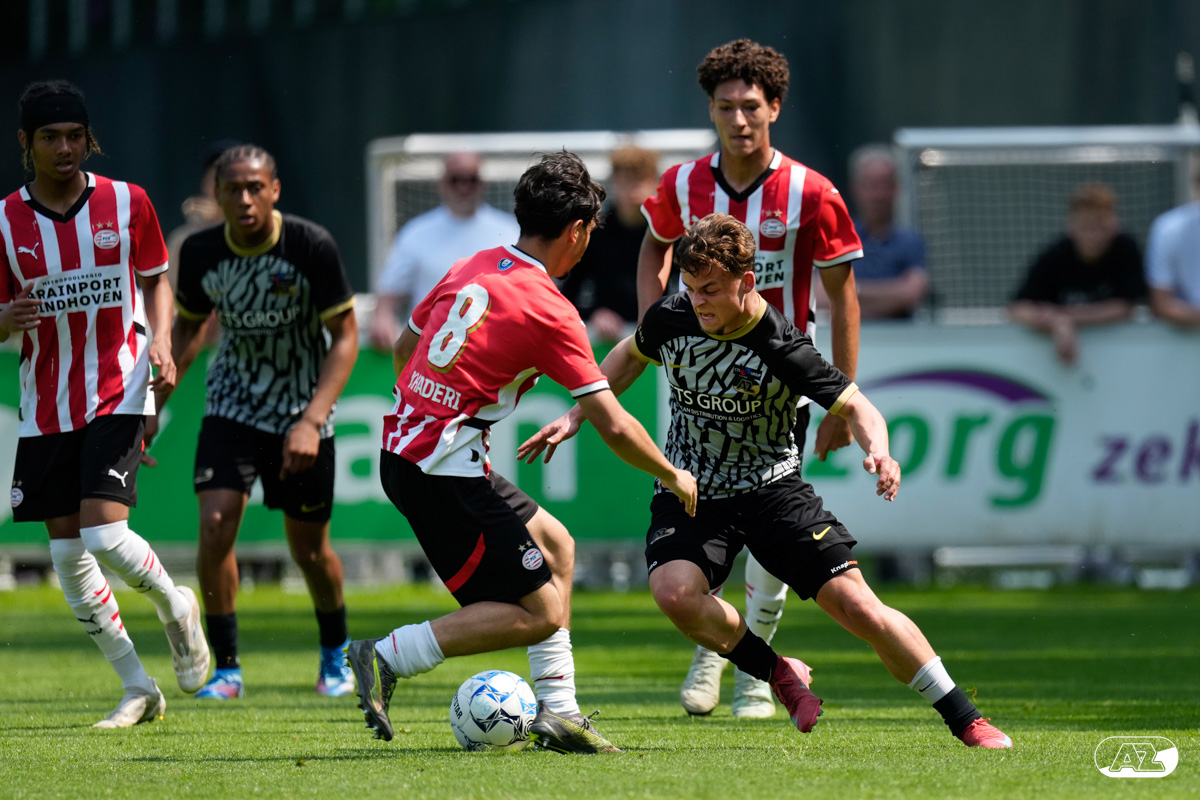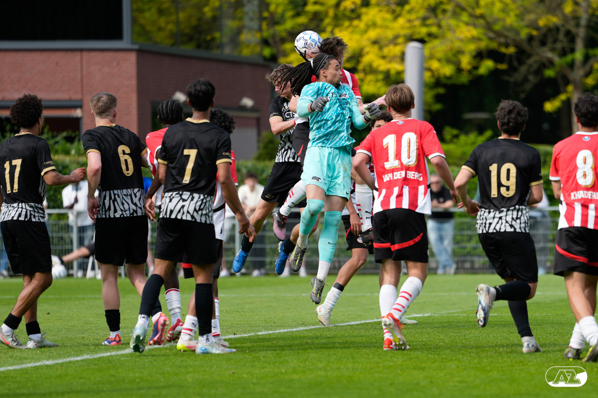 EINDHOVEN- AZ Onder 19 verloor zaterdagmiddag de wedstrijd om het landskampioenschap van PSV. Op De Herdgang bleek de thuisploeg na iets meer dan negentig minuten spelen met 1-0 te sterk. Het duel in beeld. (Foto's: Ed van de Pol)