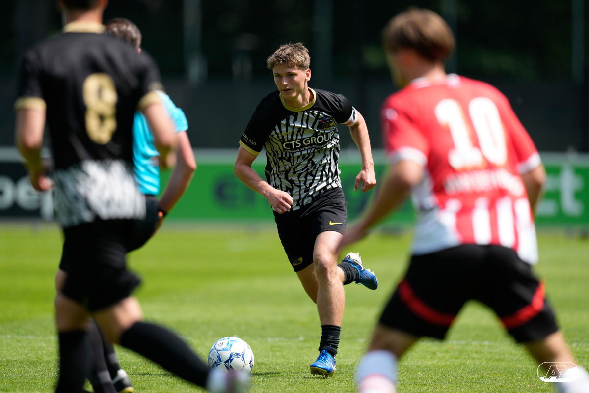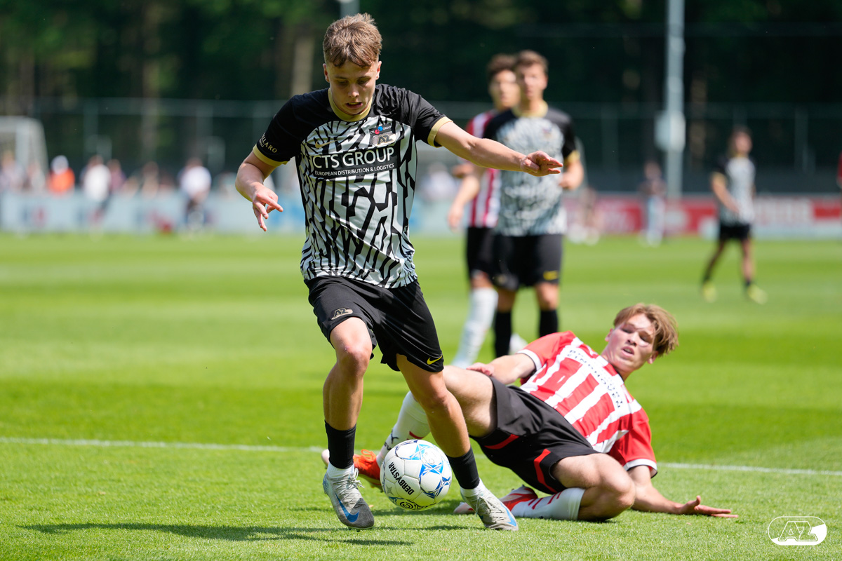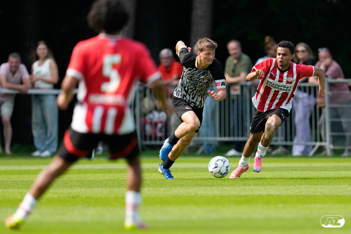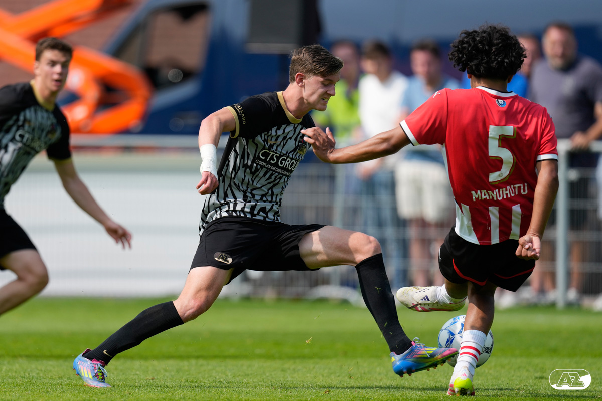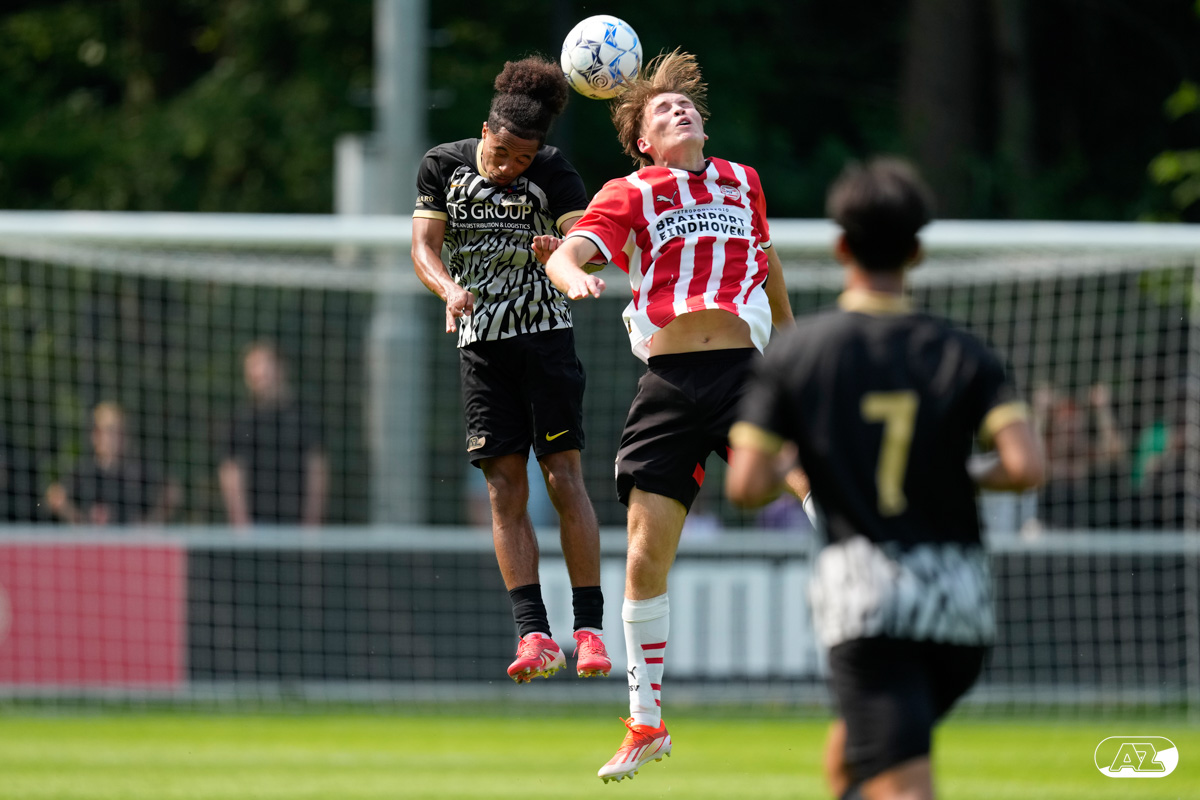 EINDHOVEN- AZ Onder 19 verloor zaterdagmiddag de wedstrijd om het landskampioenschap van PSV. Op De Herdgang bleek de thuisploeg na iets meer dan negentig minuten spelen met 1-0 te sterk. Het duel in beeld. (Foto's: Ed van de Pol)