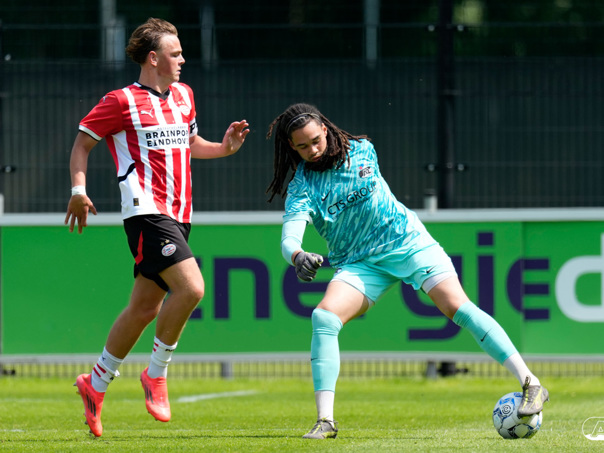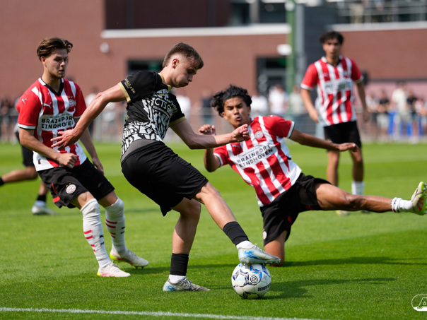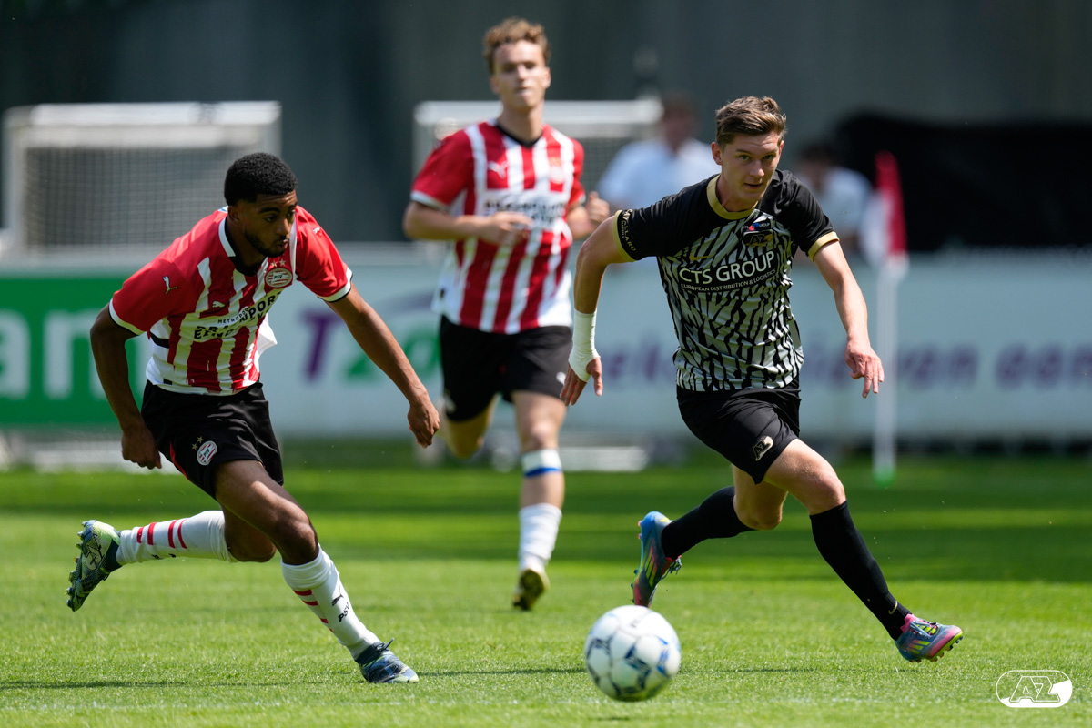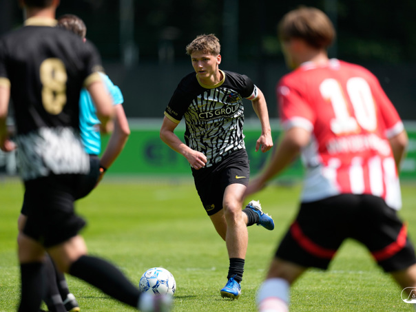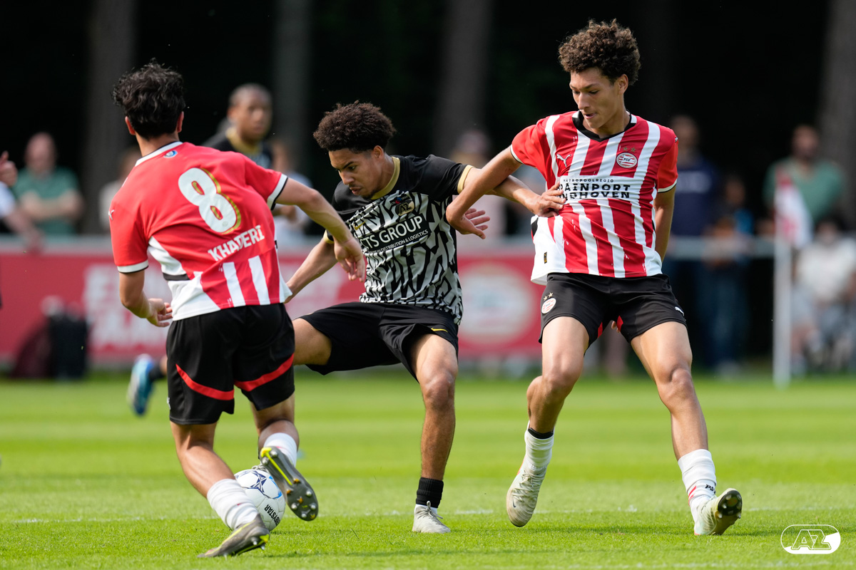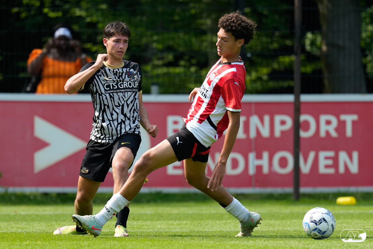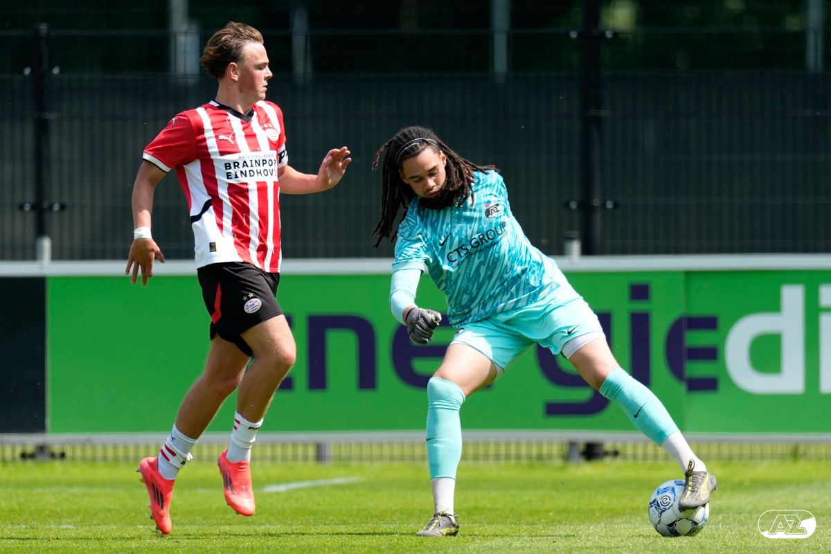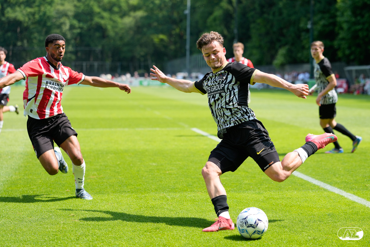 EINDHOVEN- AZ Onder 19 verloor zaterdagmiddag de wedstrijd om het landskampioenschap van PSV. Op De Herdgang bleek de thuisploeg na iets meer dan negentig minuten spelen met 1-0 te sterk. Het duel in beeld. (Foto's: Ed van de Pol)