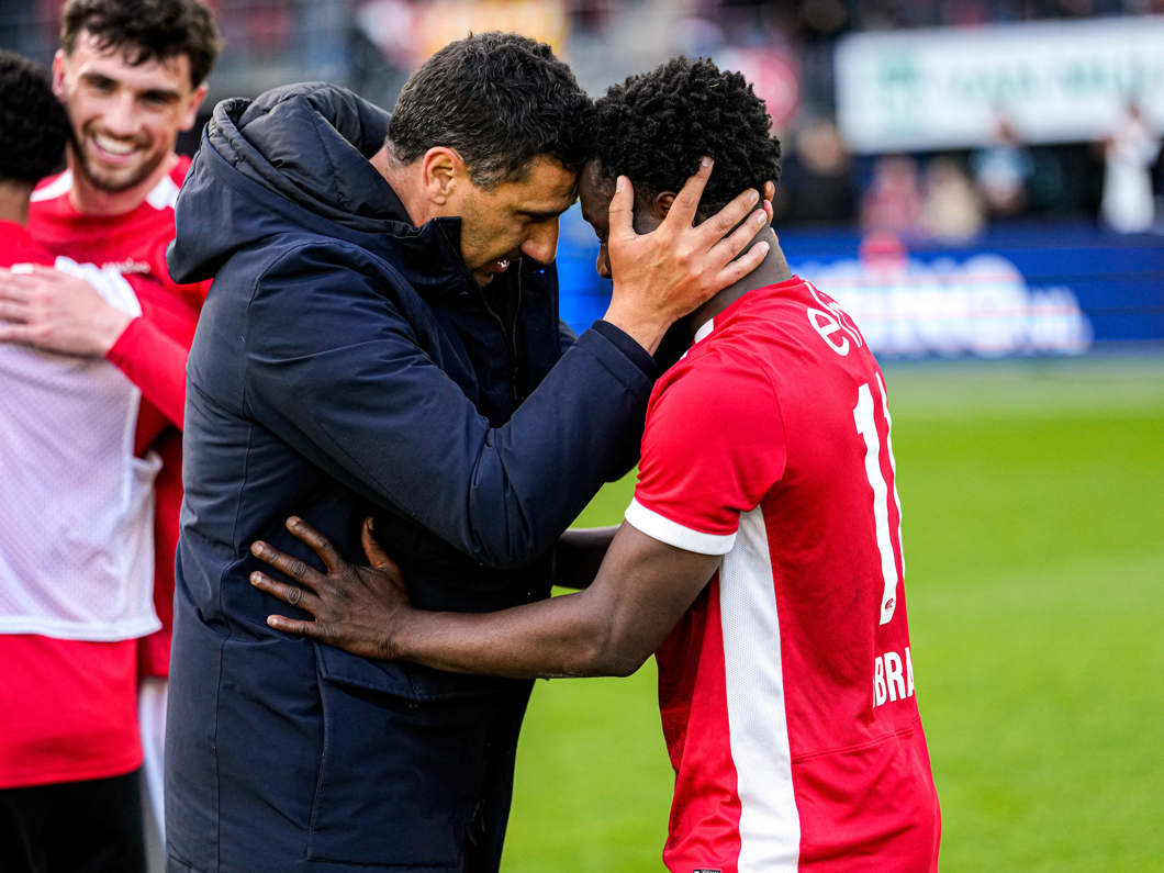 Doelman Rome-Jayden Owusu-Oduro en doelpuntenmaker Ibrahim Sadiq spraken na afloop van de feestvreugde met AZ Media.