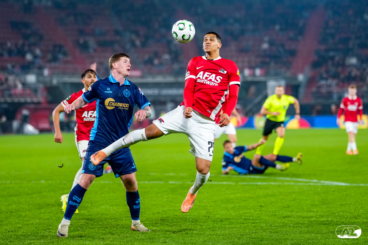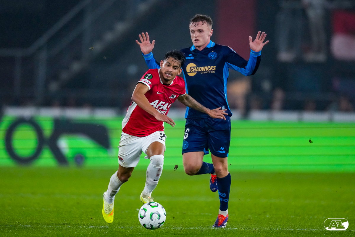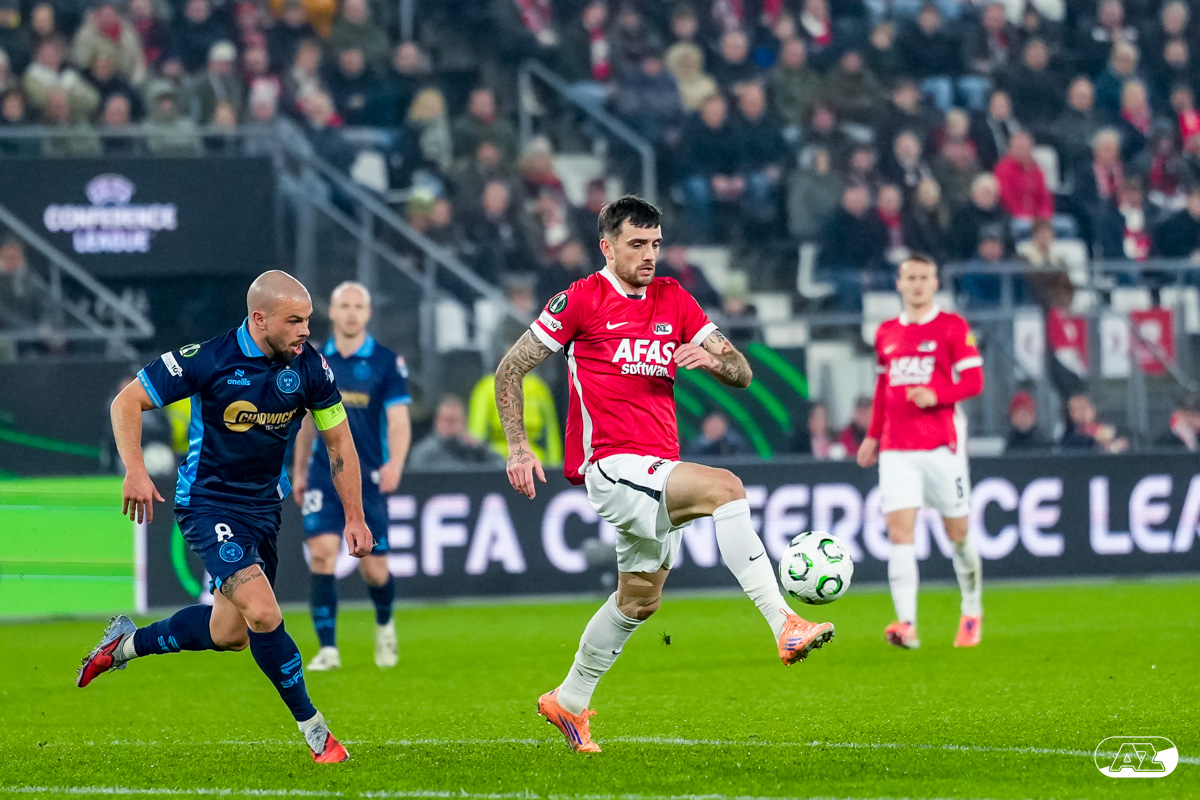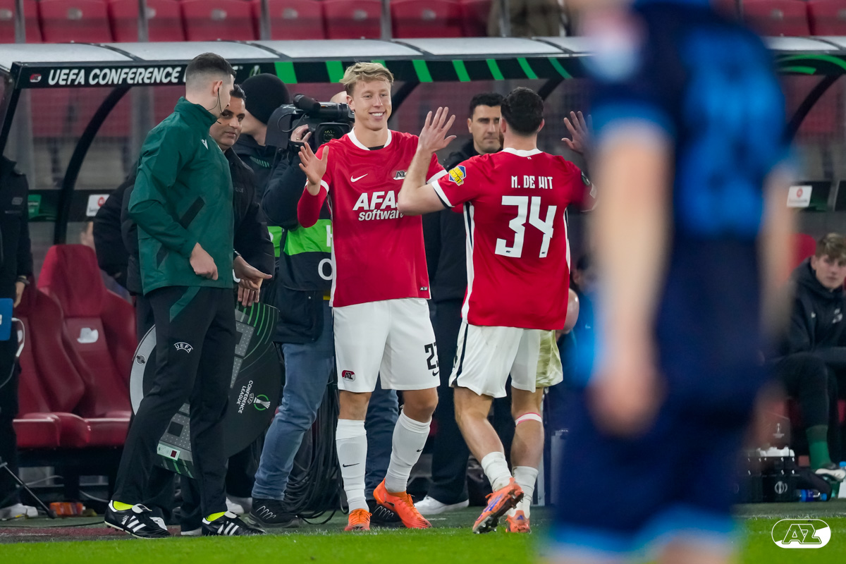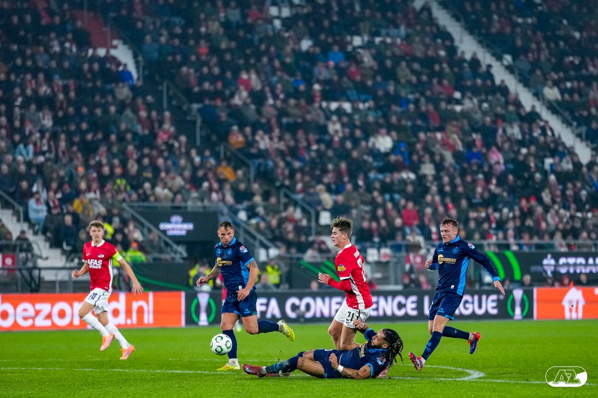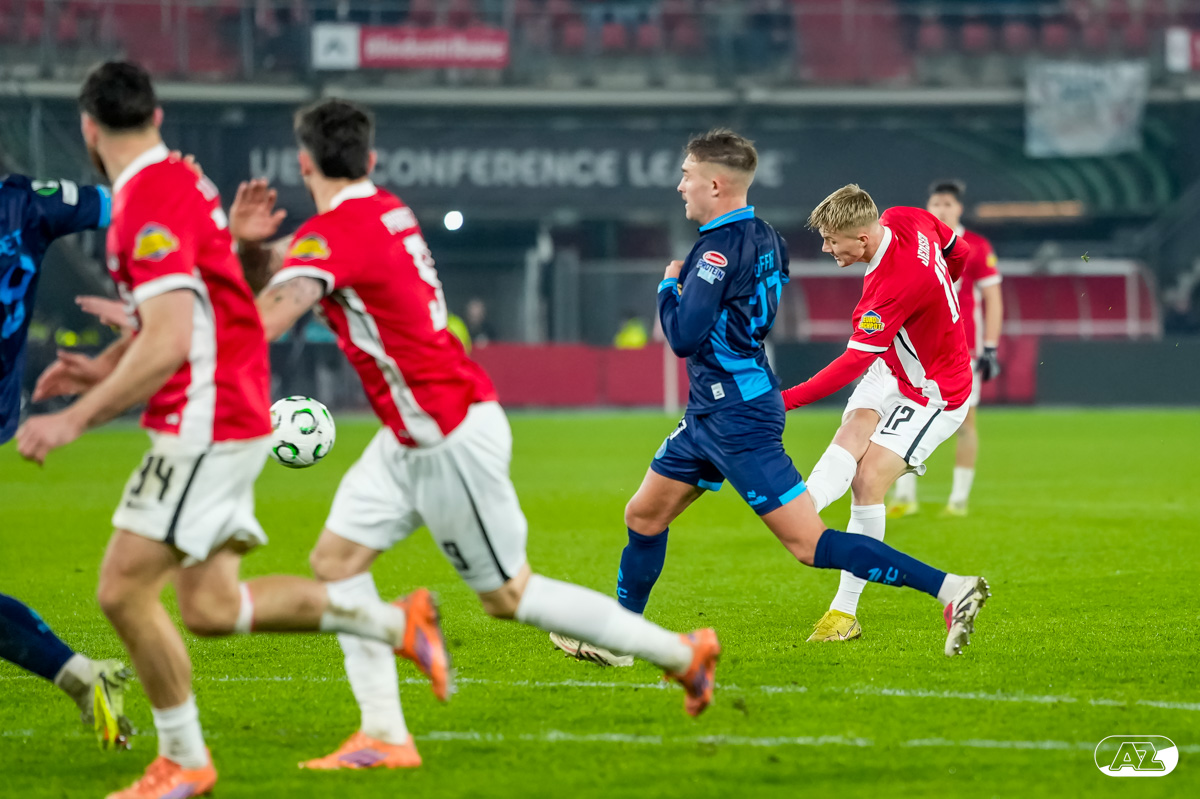ALKMAAR- AZ stond donderdagavond in de UEFA Conference League tegenover Shelbourne FC. De ploeg van Maarten Martens was met 2-0 te sterk voor de Ieren. De doelpunten kwamen op naam van Mees de Wit en Isak Jensen. Bekijk hier de wedstrijd door de lens van fotograaf Ed van de Pol.