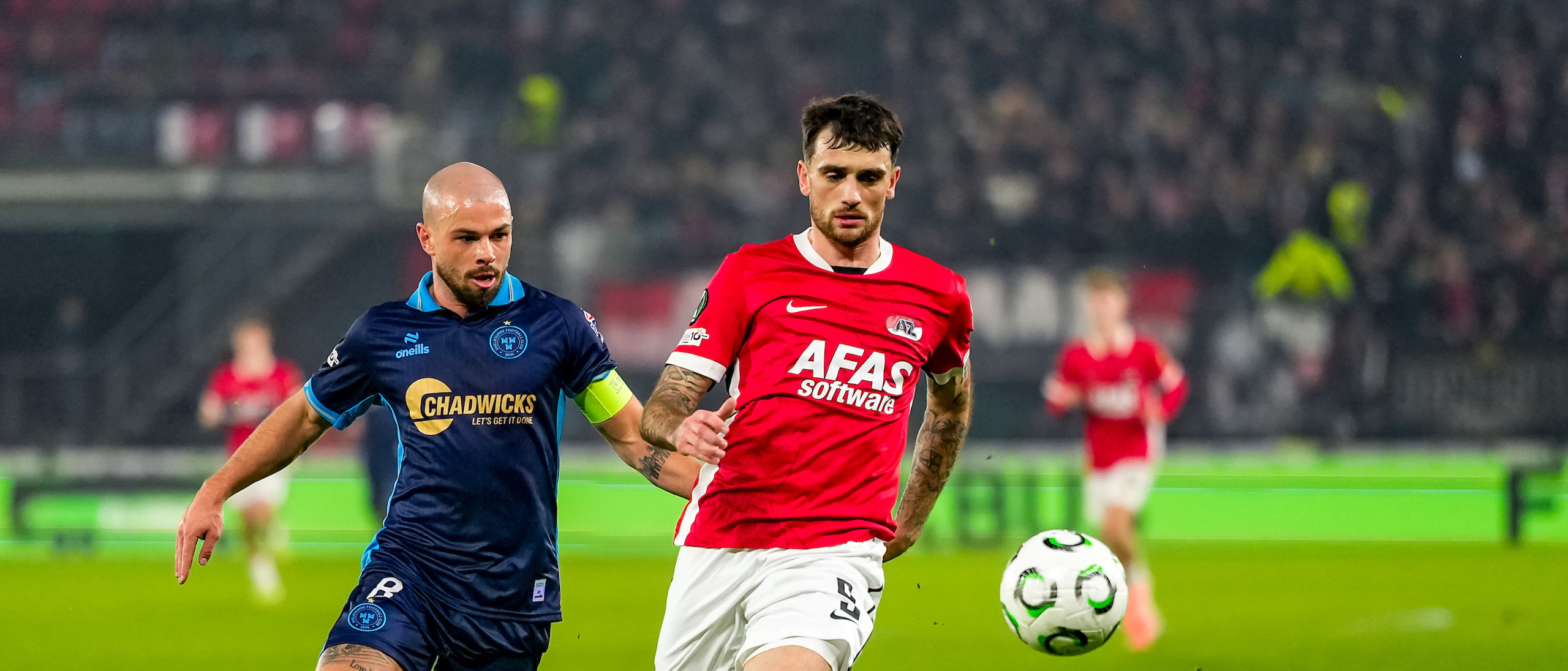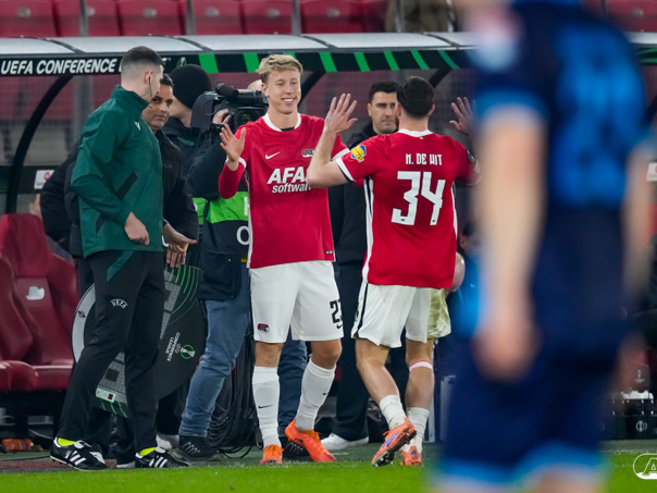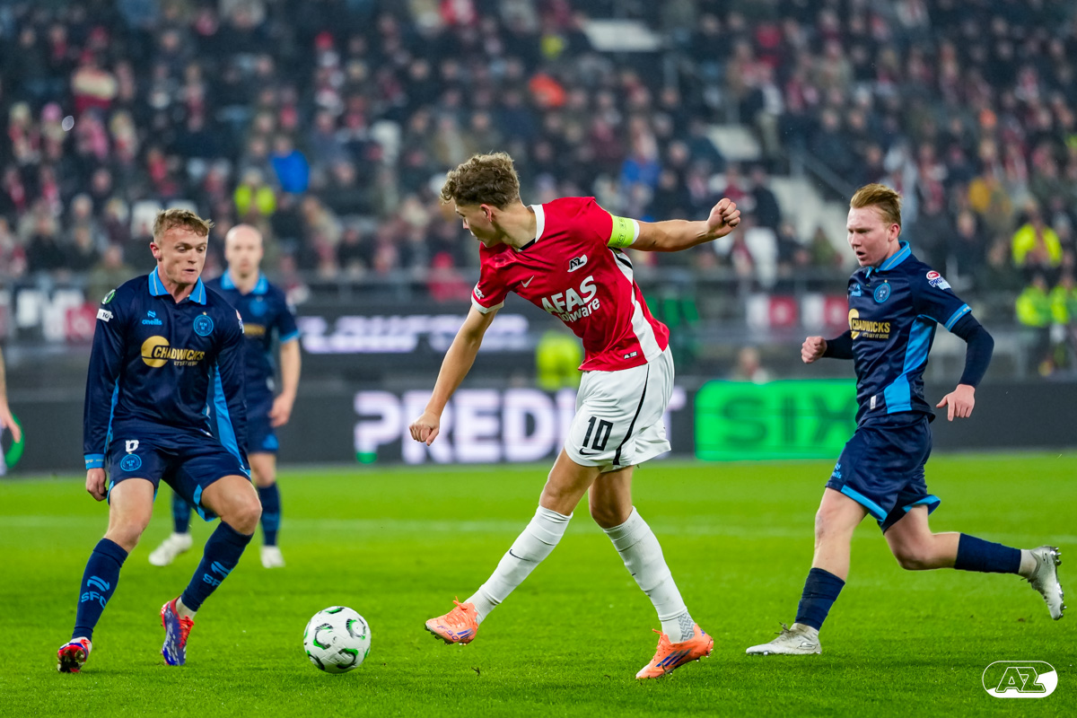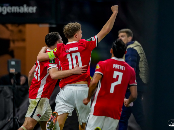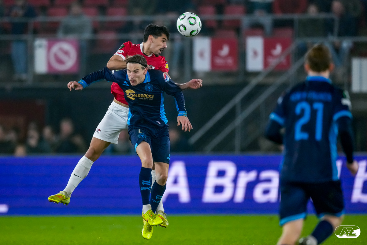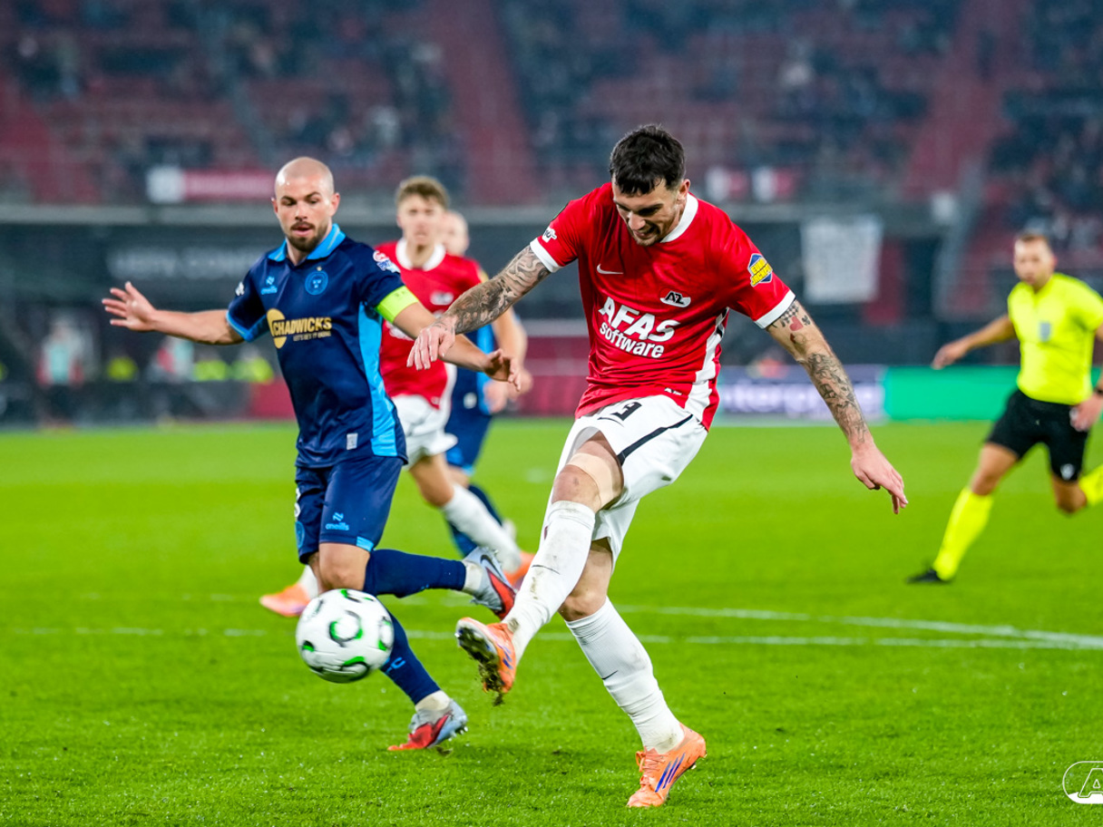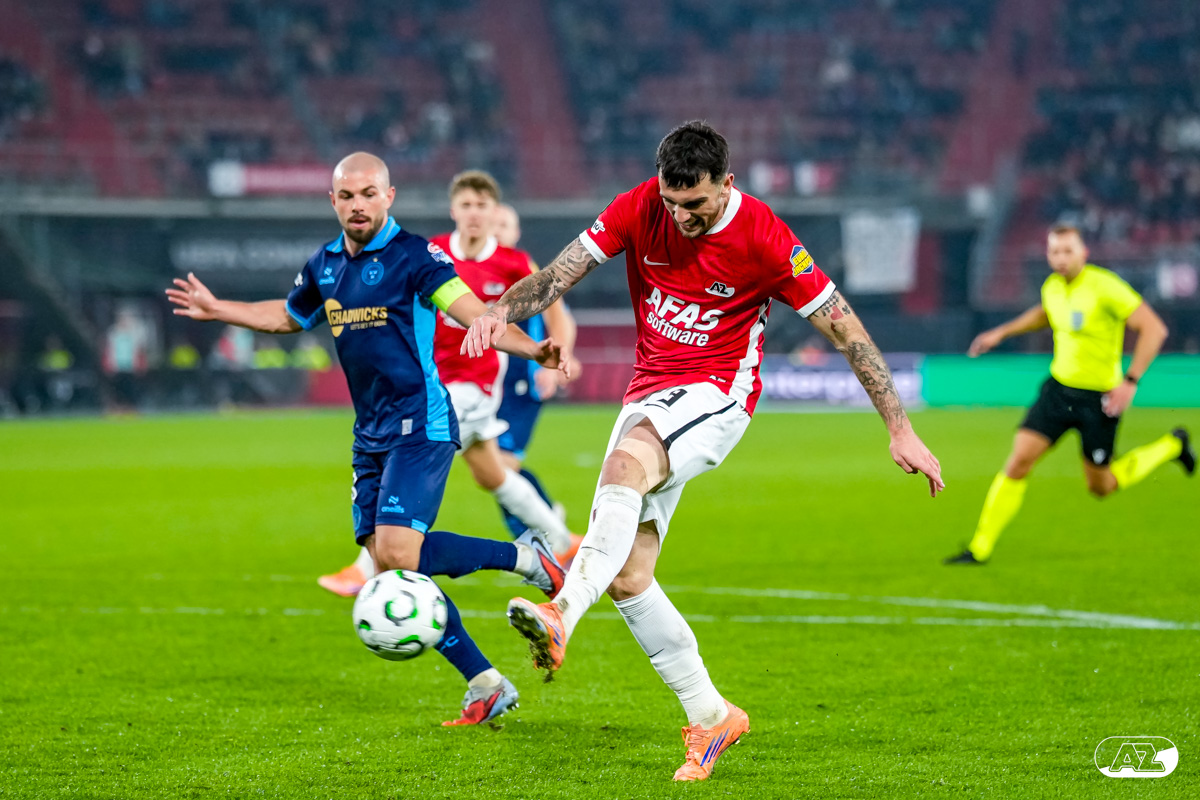 ALKMAAR- AZ stond donderdagavond in de UEFA Conference League tegenover Shelbourne FC. De ploeg van Maarten Martens was met 2-0 te sterk voor de Ieren. De doelpunten kwamen op naam van Mees de Wit en Isak Jensen. Bekijk hier de wedstrijd door de lens van fotograaf Ed van de Pol.
