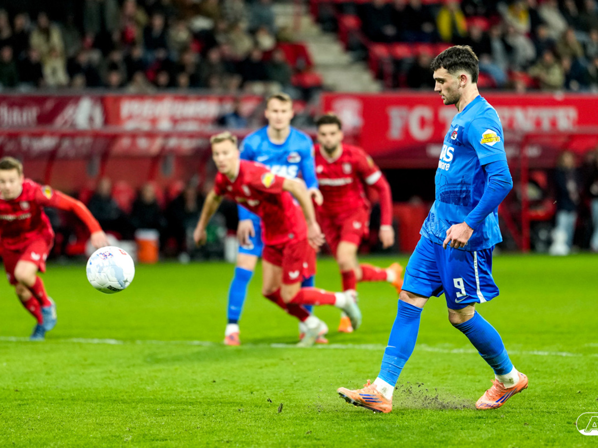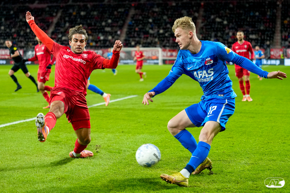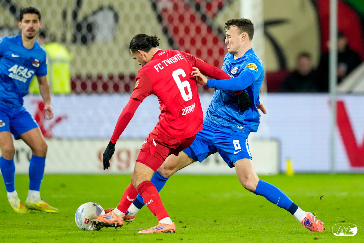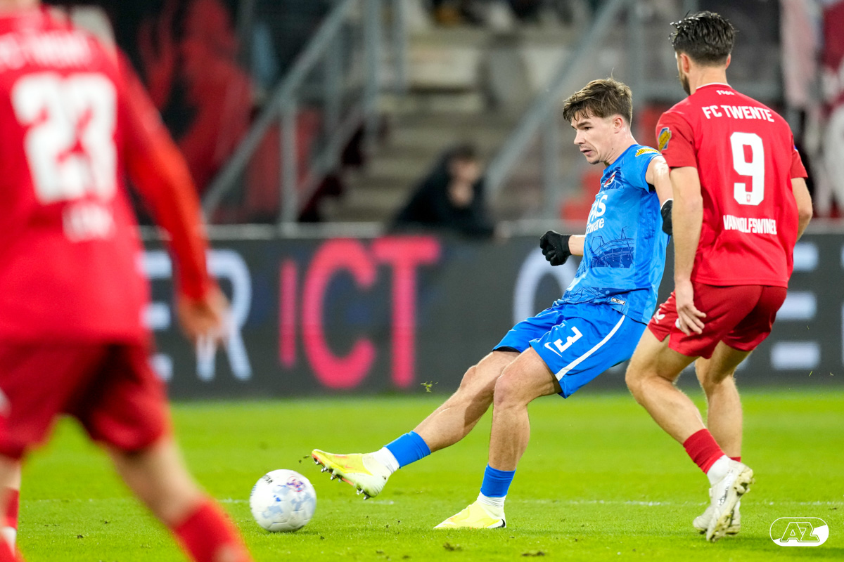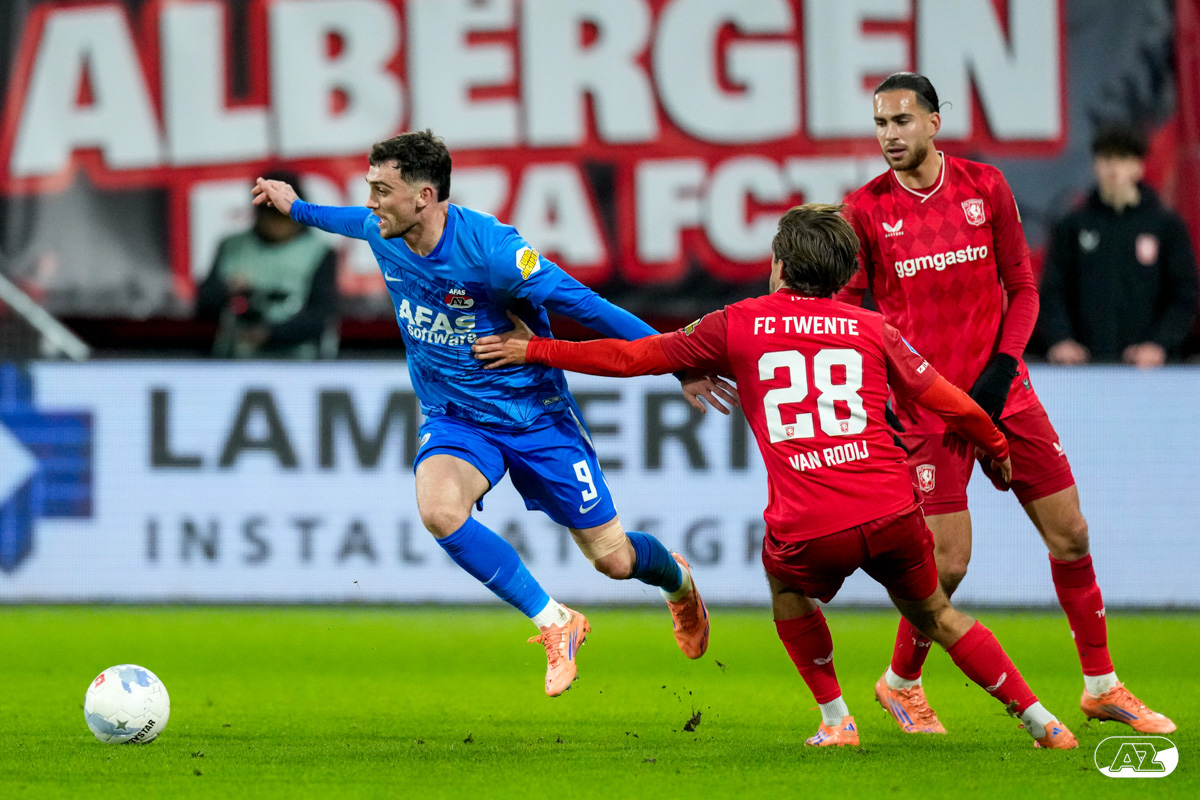 ENSCHEDE- AZ ging zondagmiddag met 1-0 onderuit bij FC Twente. In De Grolsch Veste zette Daan Rots de thuisploeg na 75 minuten op voorsprong. In de ultieme slotfase kregen de Alkmaarders nog een uitgelezen kans om vanaf de penaltystip langszij te komen, maar de inzet ging er niet in. Daardoor keerde AZ met een 1-0 verlies terug naar Alkmaar. Bekijk hier het duel door de lens van Ed van de Pol.