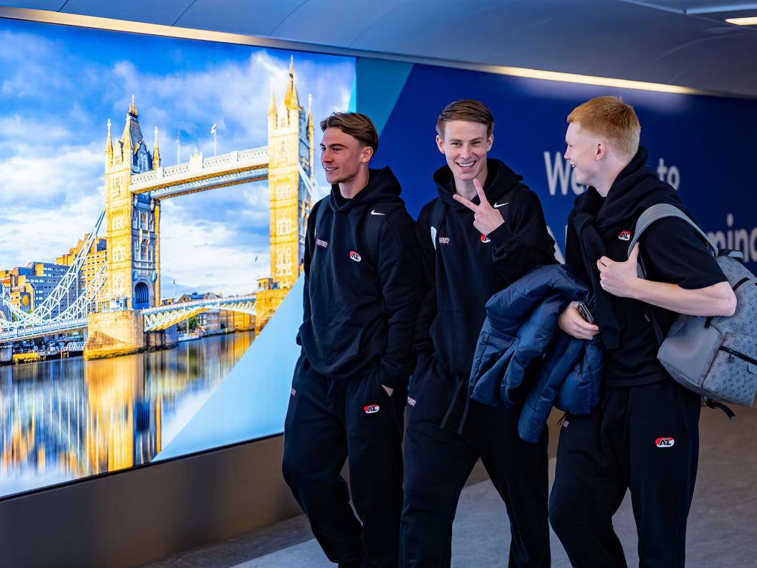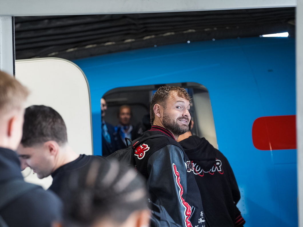 Bekijk hier hoe de ploeg afreisde naar Engeland voor het Europese duel.