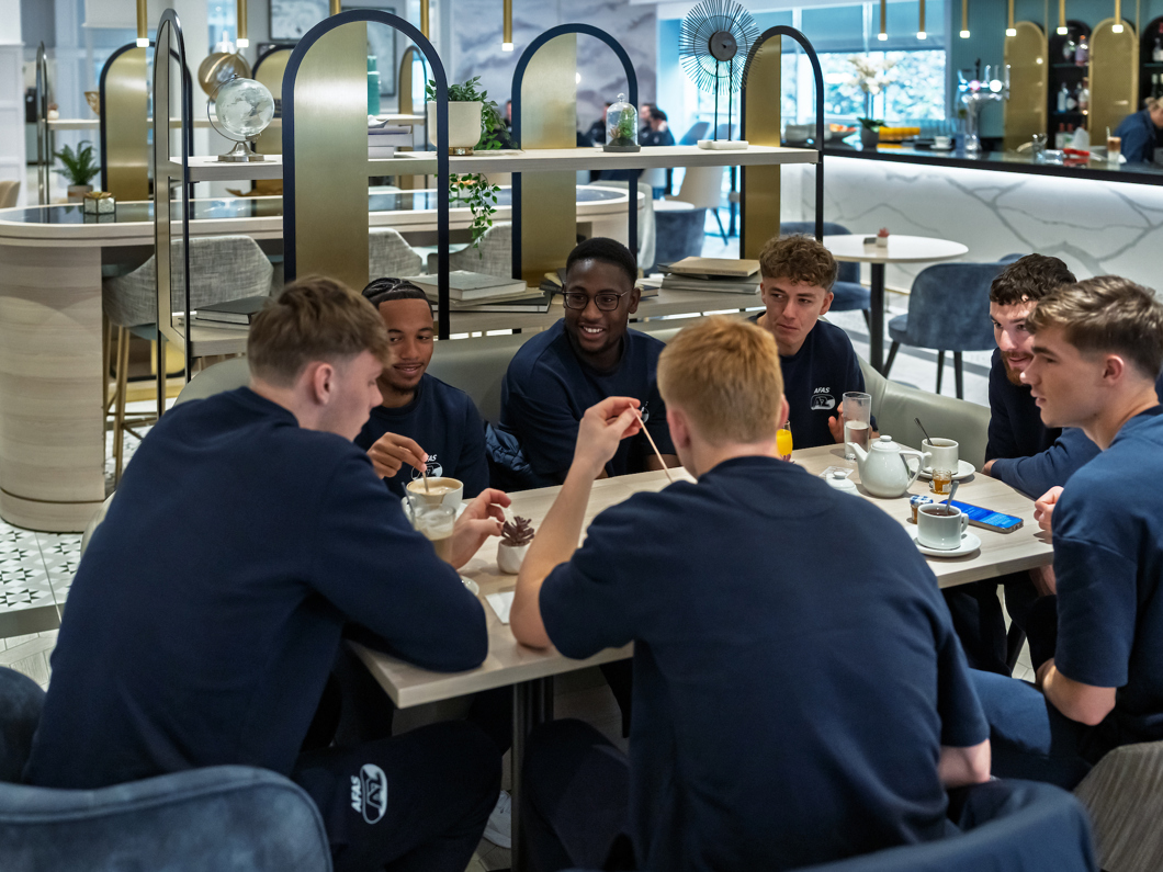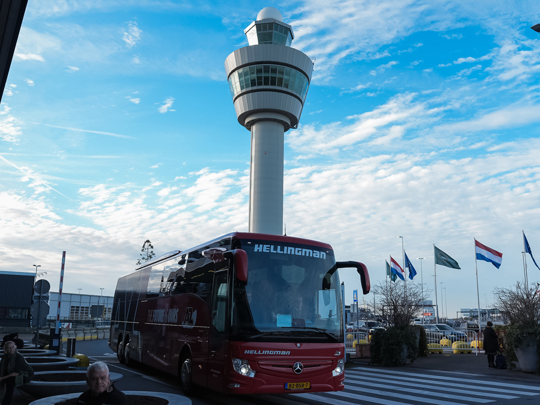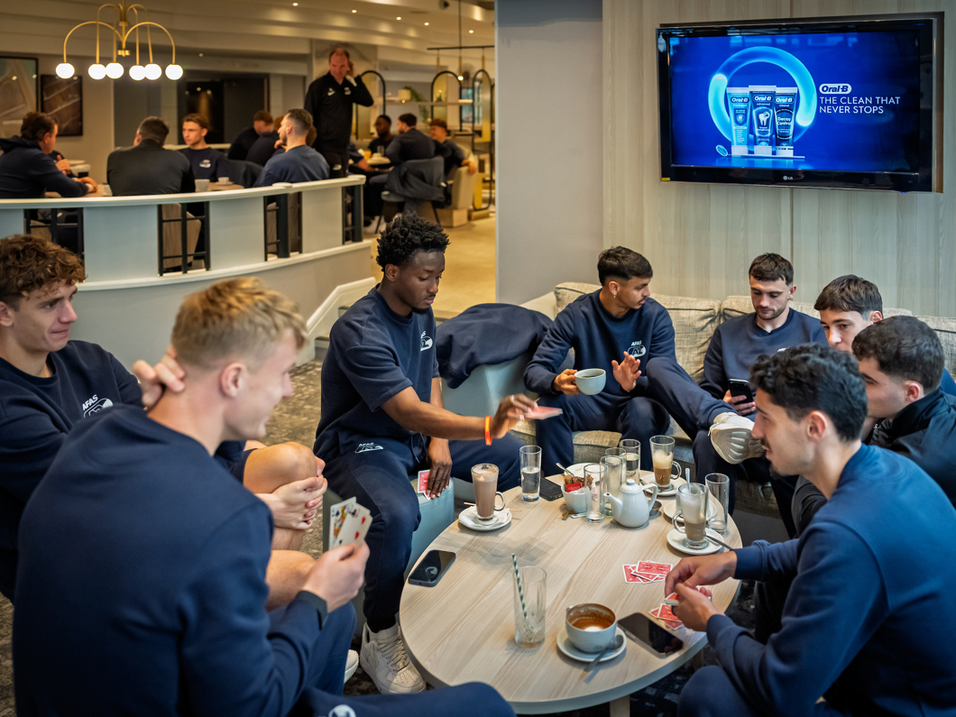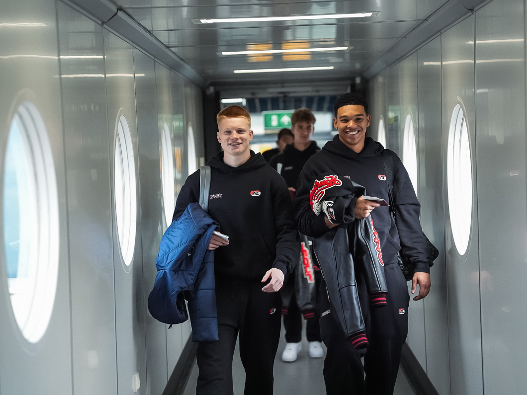 Na een korte vlucht is AZ aangekomen op Engelse bodem en onderweg naar het hotel.