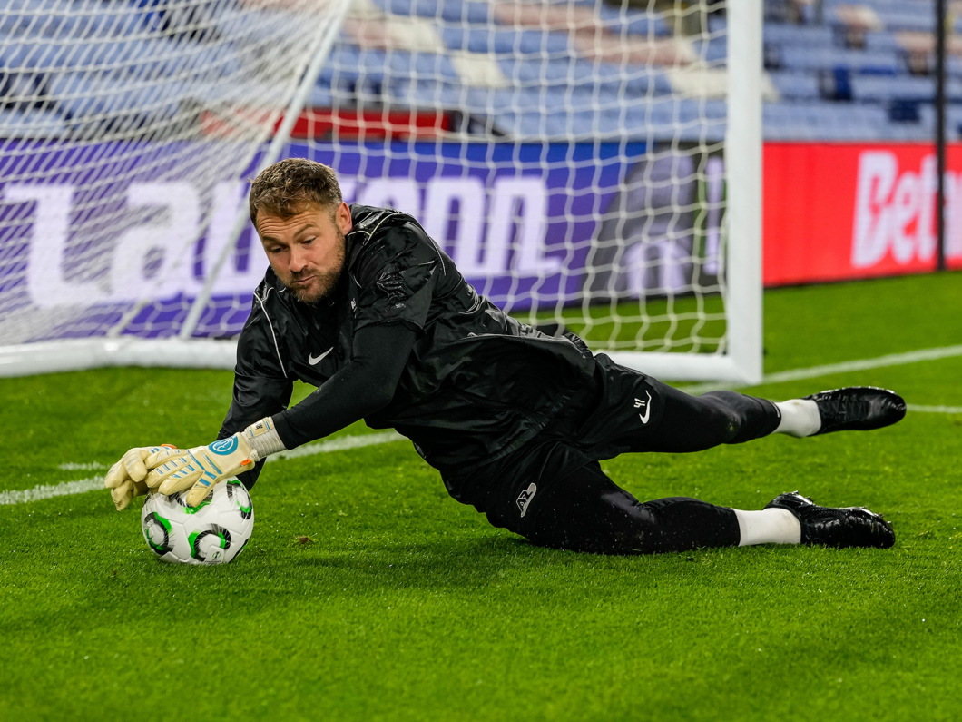 Kees Smit schiet in de handen van doelman Dean Henderson.