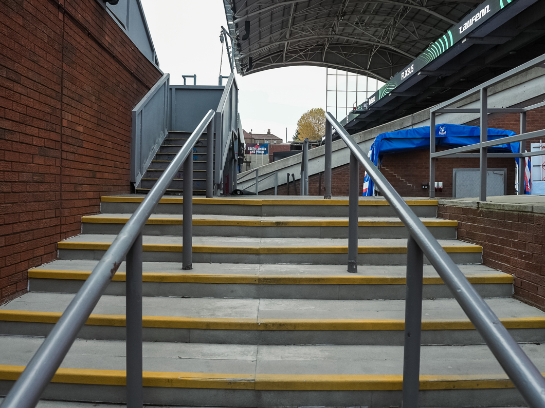 We zijn aangekomen op Selhurst Park, de thuisbasis van Crystal Palace. Het stadion heeft een capaciteit van 25.486 toeschouwers.