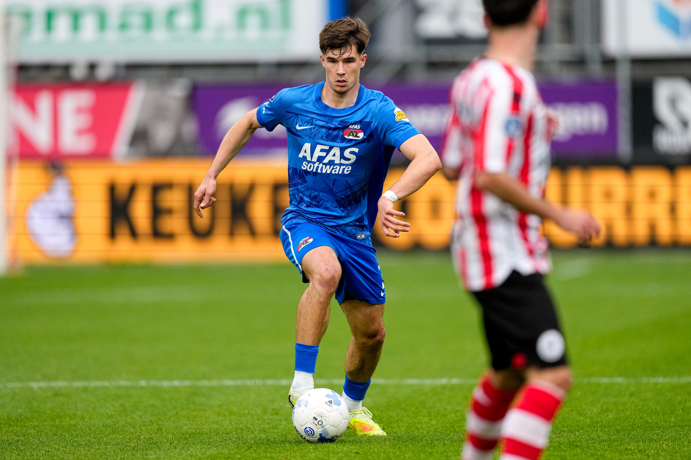 Uit een hoekschop van Isak Jensen komt de bal uiteindelijk bij Sven Mijnans terecht bij de tweede paal. De AZ'er haalt uit, maar schiet in het zijnet.