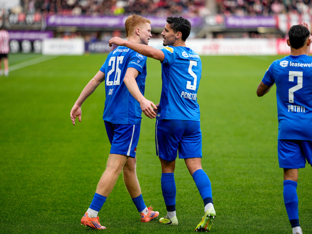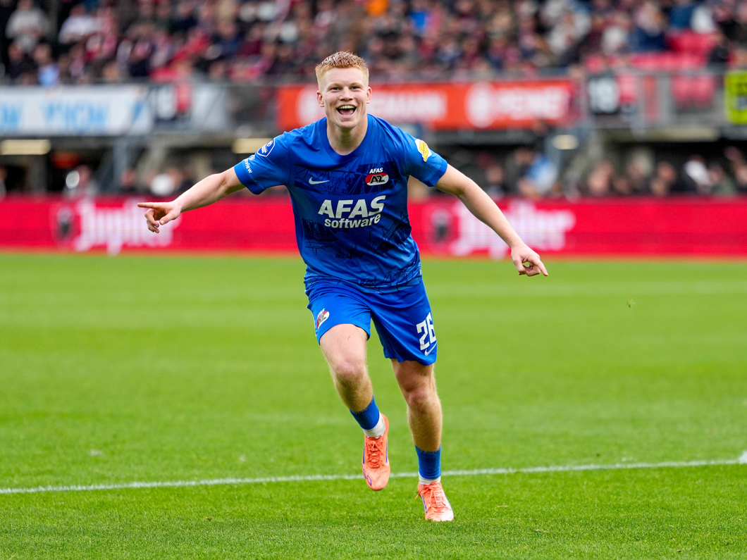 Lauritsen wordt bereikt bij de tweede paal, waarna de spits de bal langs Rome-Jayden Owusu-Oduro speelt, maar Peer Koopmeiners haalt de bal van de doellijn.