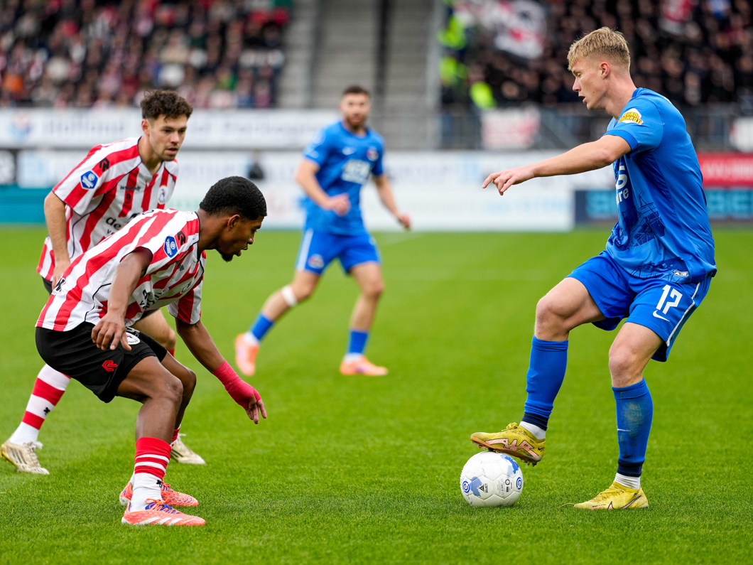 De eerste Spartaanse kans komt via Mitchell van Bergen. De aanvaller probeert het van afstand, maar Rome-Jayden Owusu-Oduro redt eenvoudig.