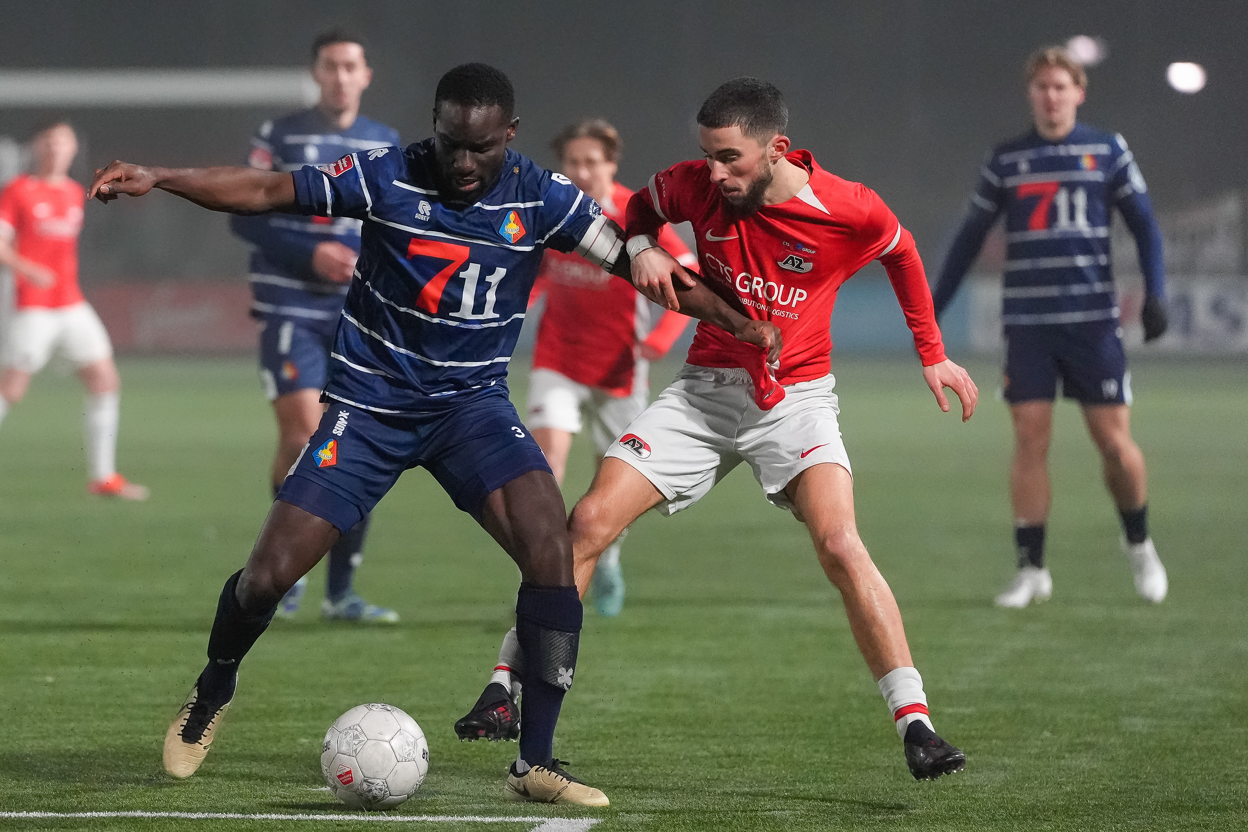 Mitch Apau namens SC Telstar in duel met Ilias Splinter van Jong AZ (seizoen 2024-2025).