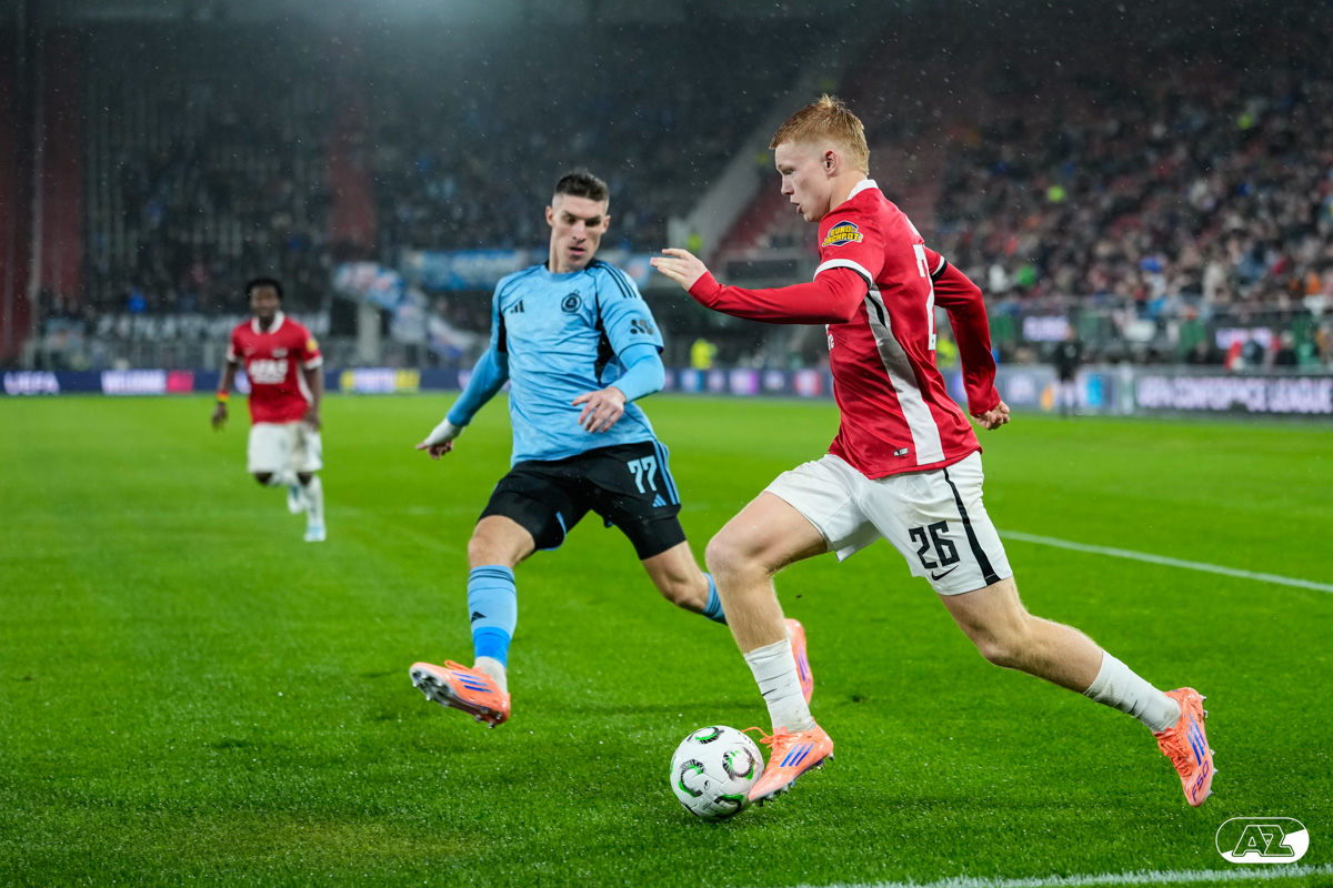 De ploeg van hoofdtrainer Maarten Martens won donderdagavond in de tweede wedstrijd van de UEFA Conference League met 1-0 van ŠK Slovan Bratislava. In het AFAS Stadion kwam AZ vlak voor rust op voorsprong via Sven Mijnans. Bekijk hier de wedstrijd door de lens van clubfotograaf Ed van de Pol.