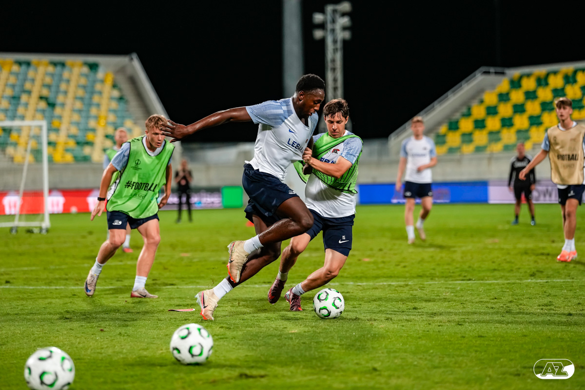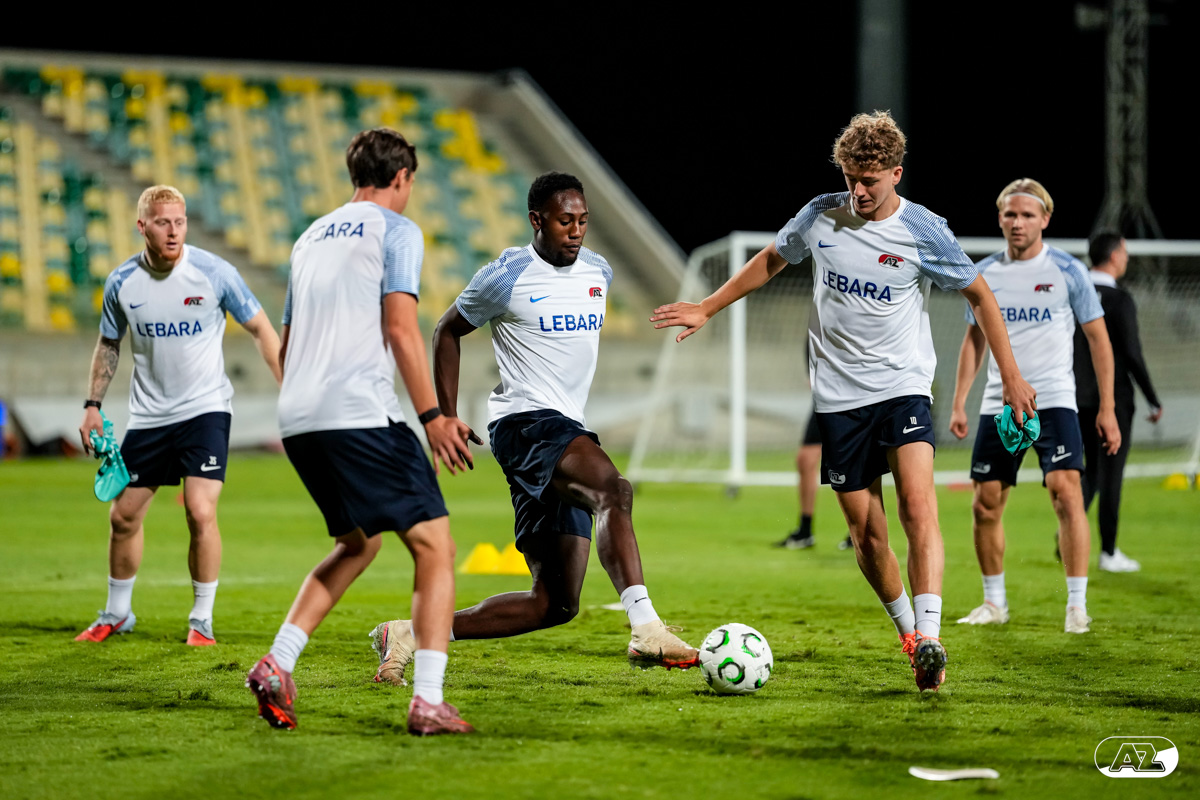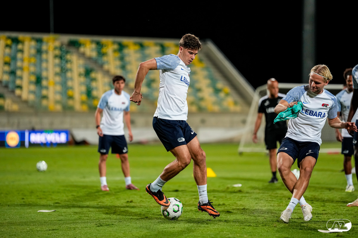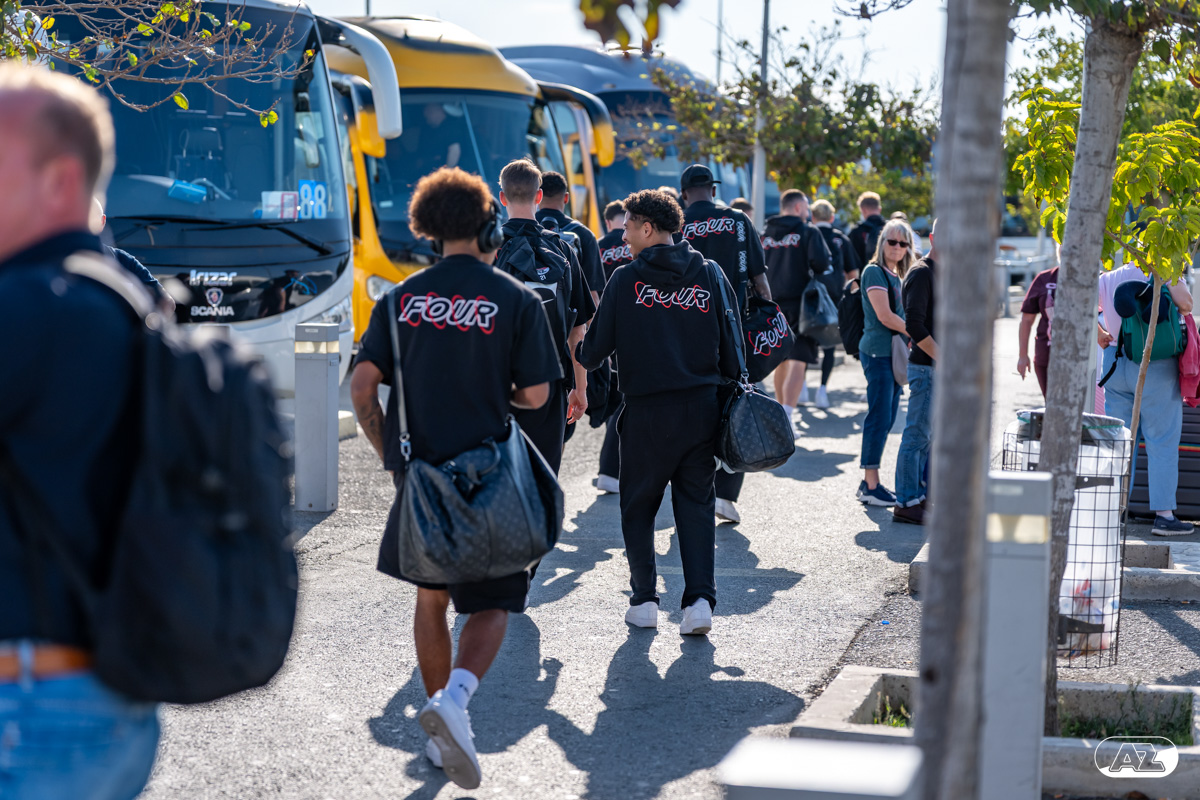 LANARCA- AZ reisde woensdag af naar het Cypriotische Lanarca voor het eerste duel van de competitiefase binnen de UEFA Conference League. Aan het einde van de reisdag stonden Maarten Martens en Alexandre Penetra de pers te woord, voordat de ploeg voor de laatste keer trainde voor de confrontatie. Bekijk hier de gehele dag door de lens van clubfotograaf Ed van de Pol.