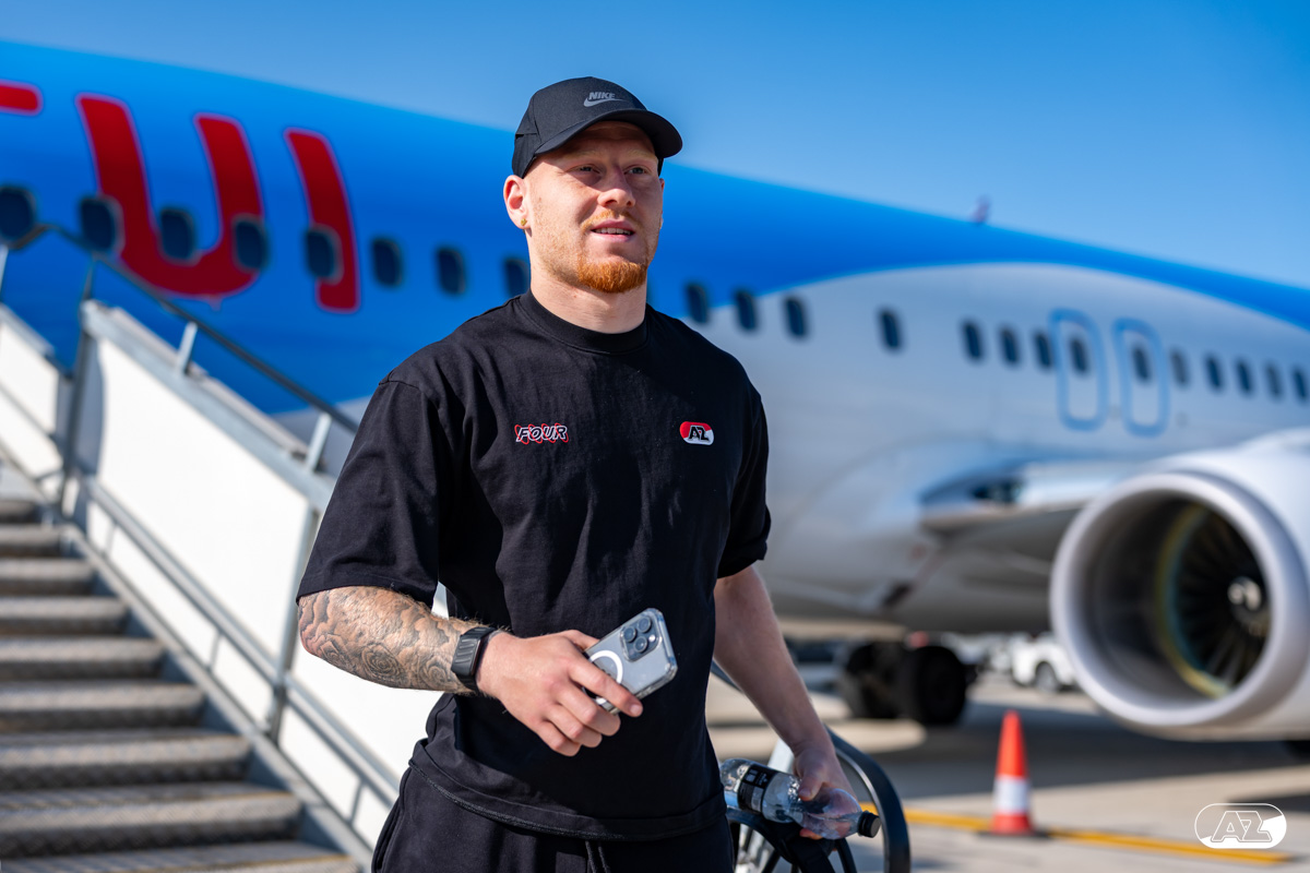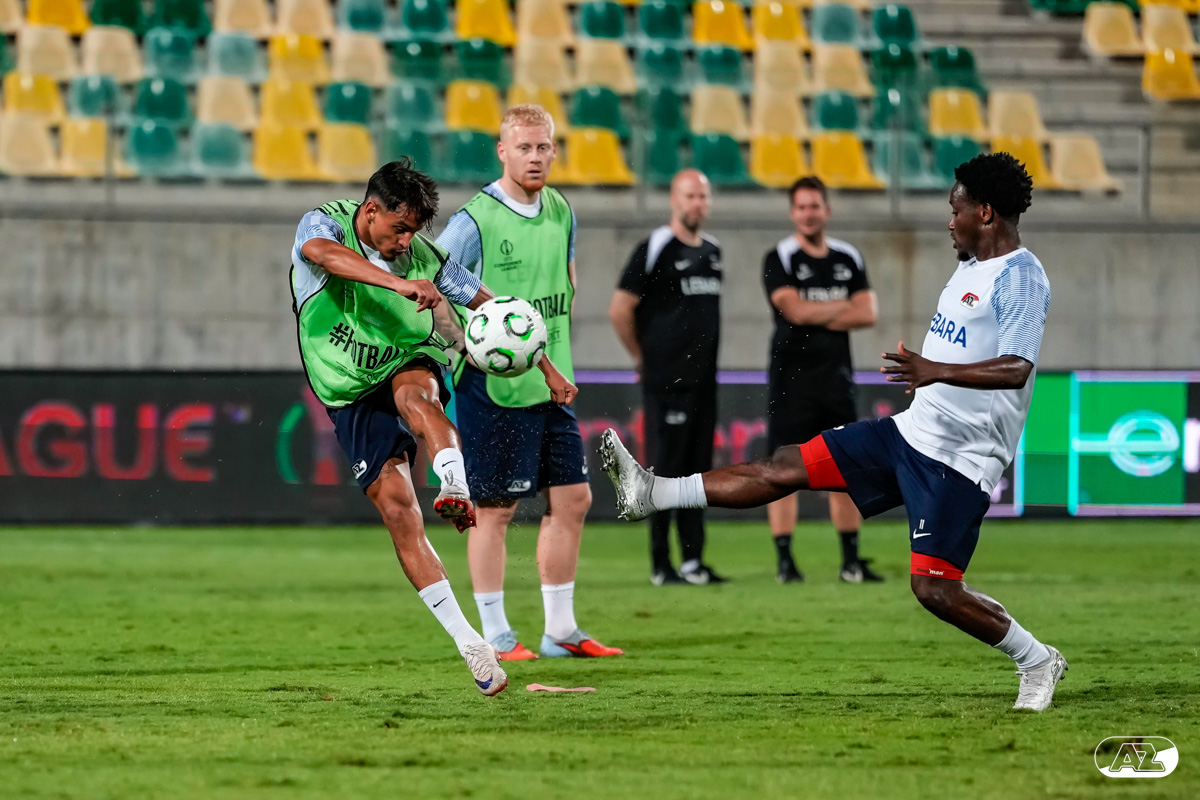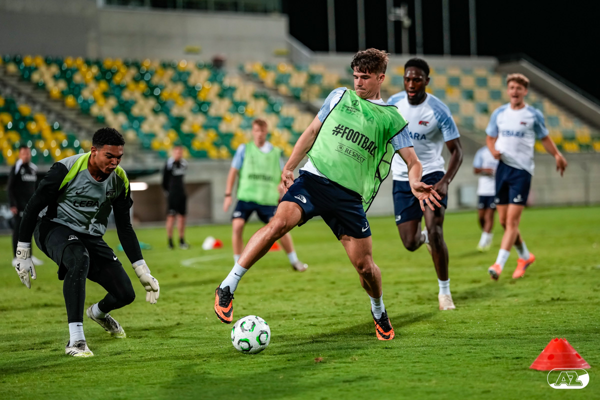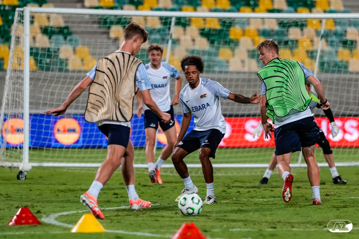 LANARCA- AZ reisde woensdag af naar het Cypriotische Lanarca voor het eerste duel van de competitiefase binnen de UEFA Conference League. Aan het einde van de reisdag stonden Maarten Martens en Alexandre Penetra de pers te woord, voordat de ploeg voor de laatste keer trainde voor de confrontatie. Bekijk hier de gehele dag door de lens van clubfotograaf Ed van de Pol.