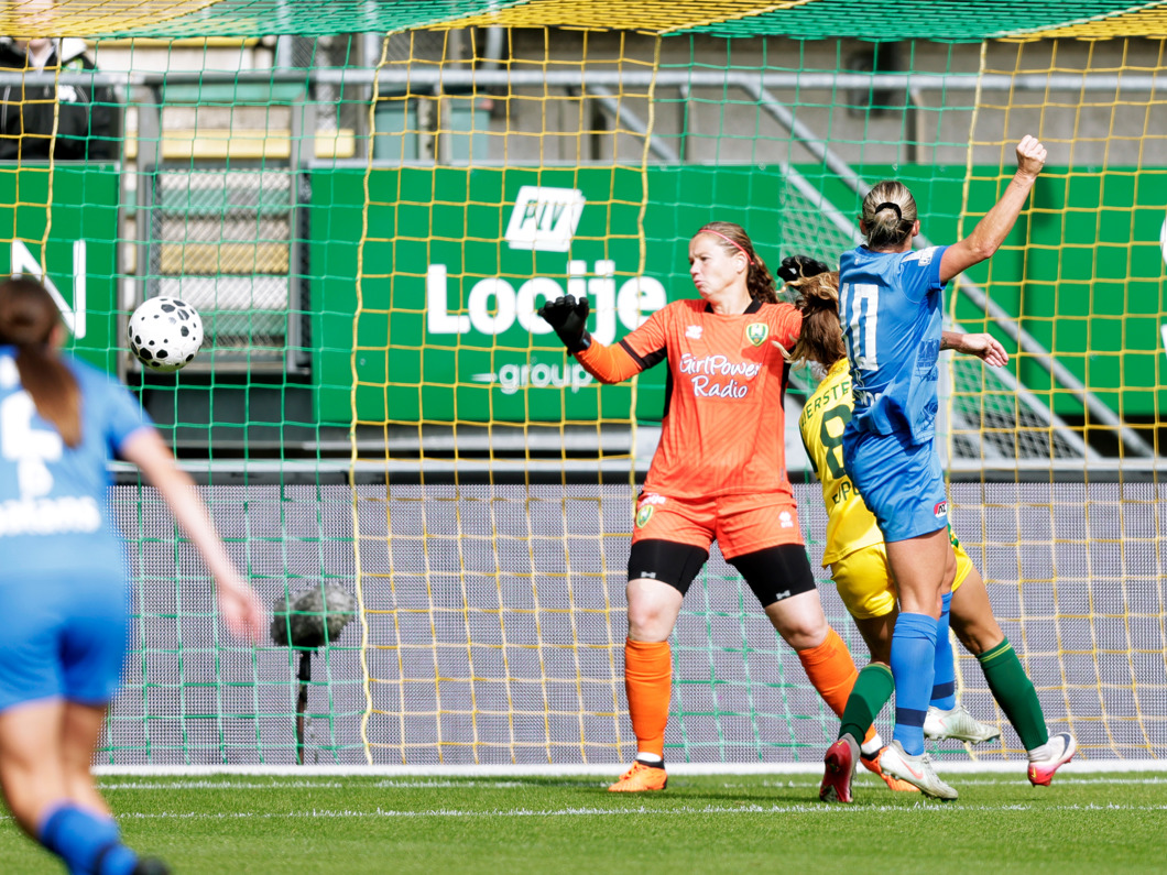 De AZ Vrouwen zijn meteen te vinden in het strafschopgebied bij ADO Den Haag, maar de verdediging houdt stand.