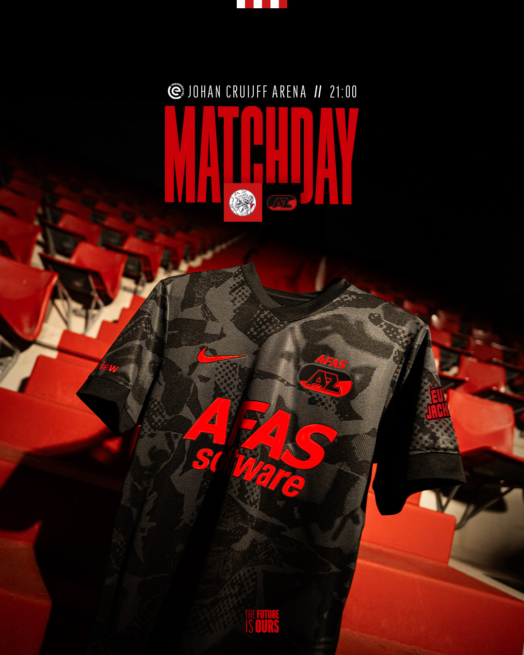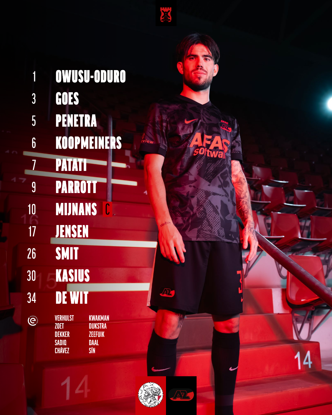 AZ neemt het zaterdagavond tegen Ajax op in het gloednieuwe derde tenue. Het krachtige zwarte shirt kleurt rood door de opvallende bedrukking – een eerbetoon aan de clubkleur die we met trots dragen. Na de wedstrijd krijg jij de kans om dit unieke, wedstrijdgedragen shirt te bemachtigen via deze veiling! De shirts komen rechtstreeks van het veld, inclusief handtekening van de speler en zichtbare sporen van de wedstrijd.
