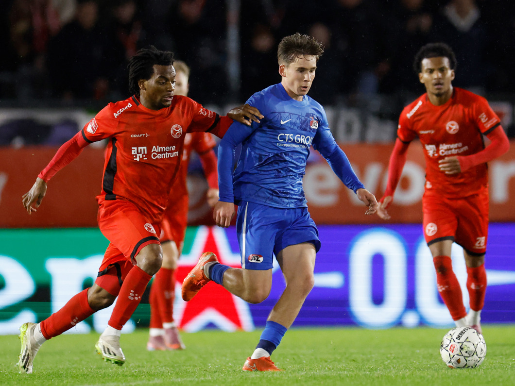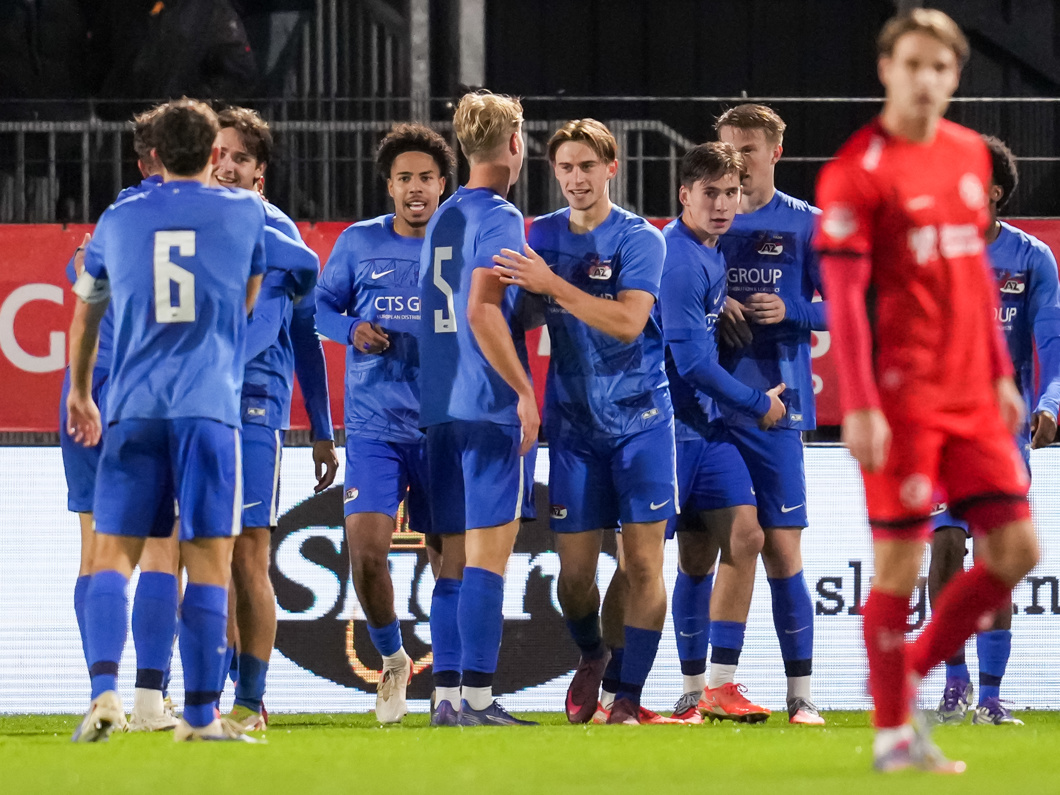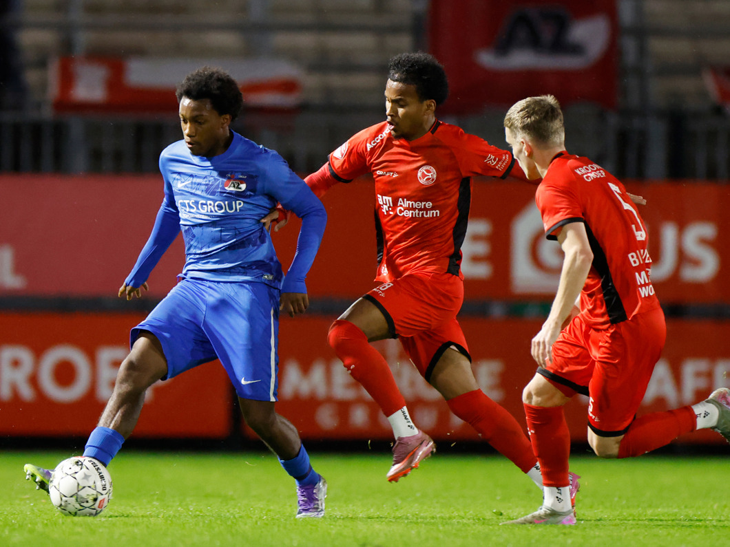 ALMERE CITY- Jong AZ boekte vrijdagavond een knappe uitzege op Eredivisie-degradant Almere City. In het Yanmar Stadion kwam de ploeg van Leeroy Echtheld na iets minder dan een halfuur spelen op voorsprong via Wassim Bouziane. Een tegengoal van Byron Burgering zorgde voor een 1-1 ruststand, maar in de tweede helft bezorgden doelpunten van Kasper Boogaard en Sem van Duijn de Alkmaarders alsnog de overwinning.