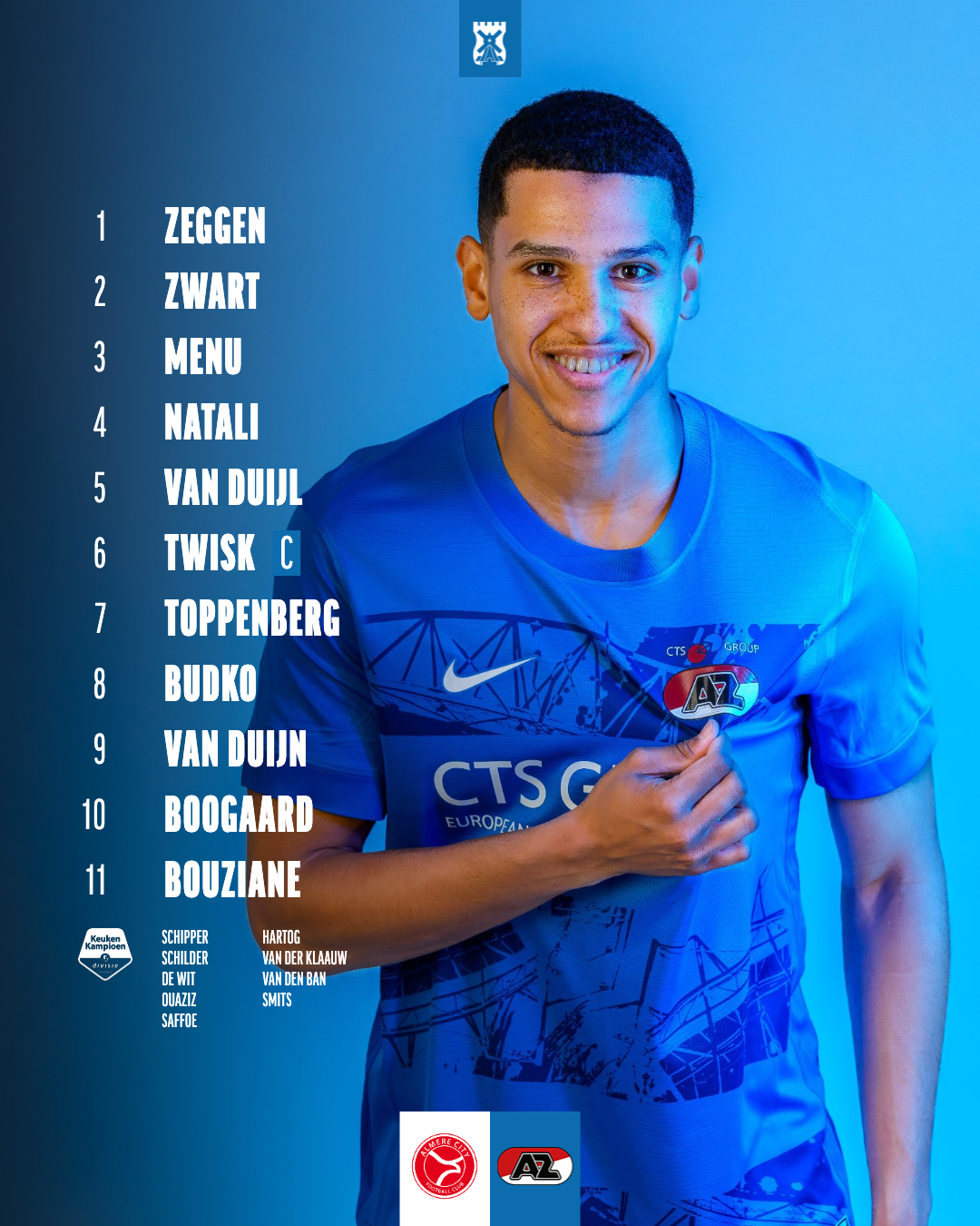 De eerste kans aan Alkmaarse zijde is voor Wassim Bouziane. De buitenspeler wordt gevonden met een voorzet bij de tweede paal door Jesper Zwart, maar Bouziane kan net niet goed uithalen.