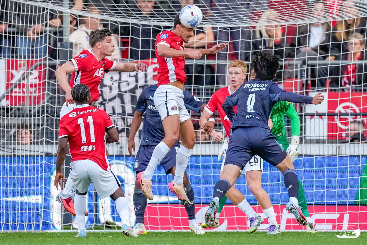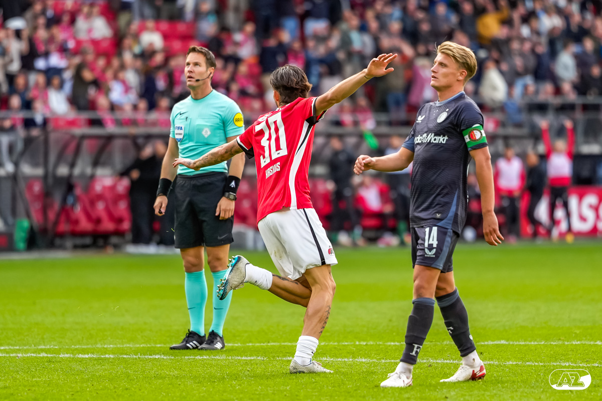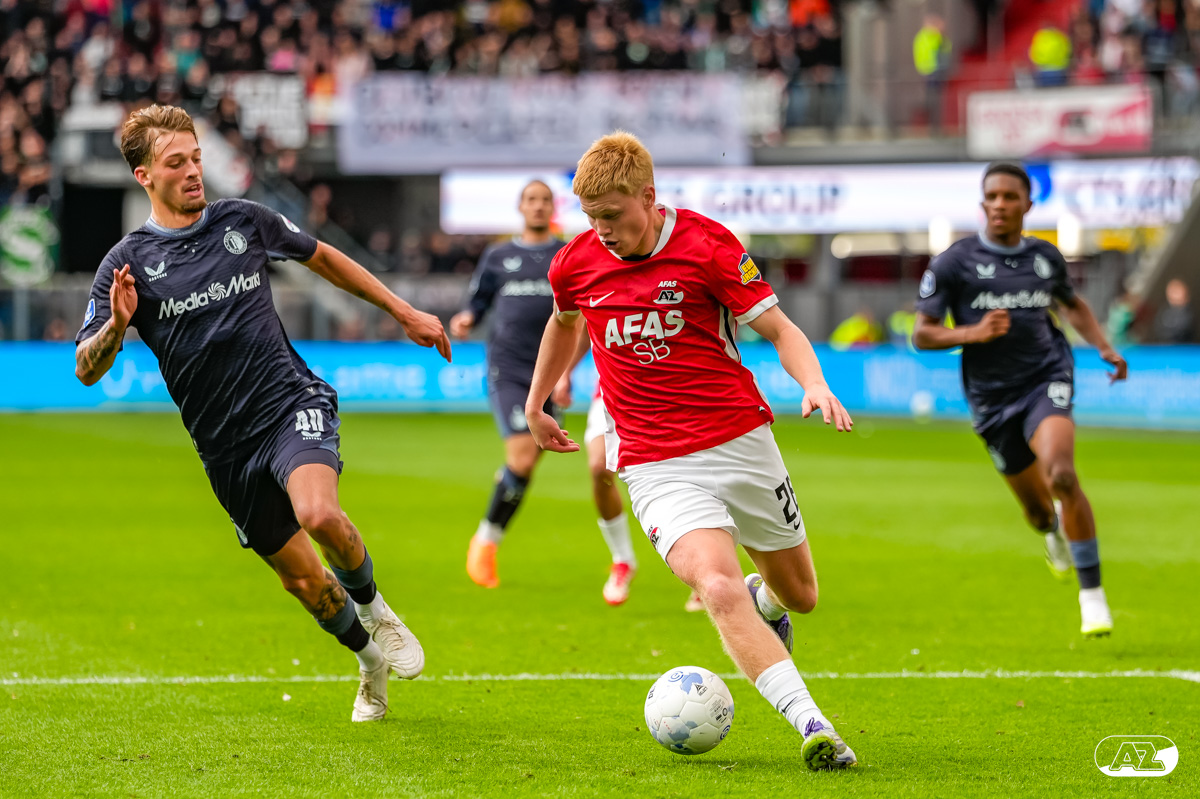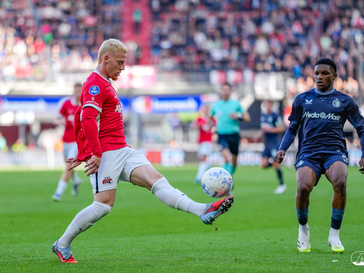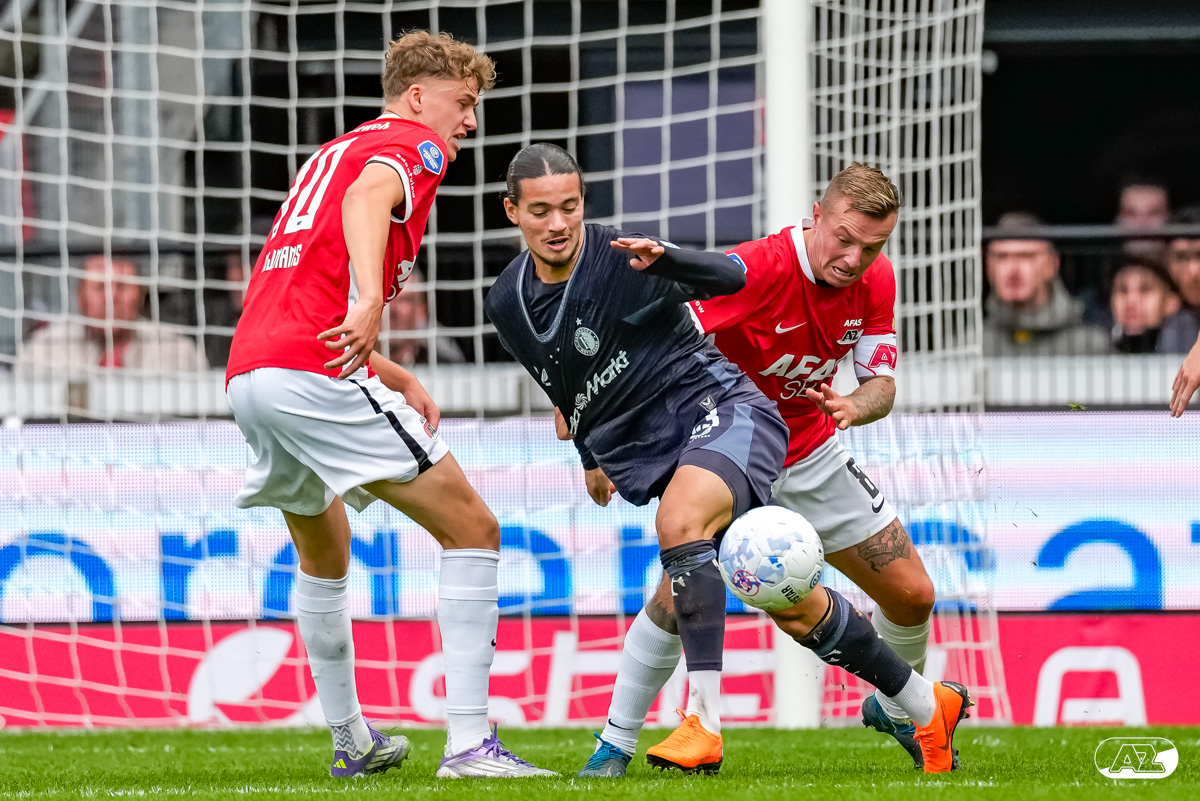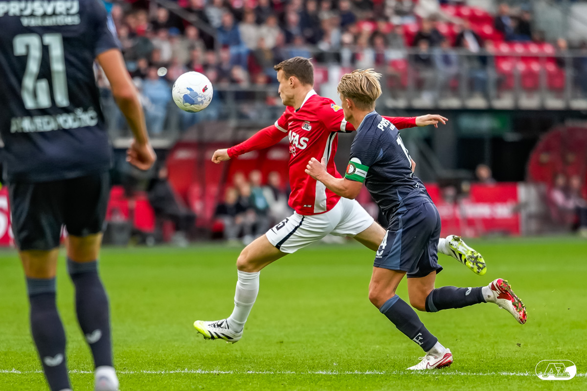 ALKMAAR- In een spannende wedstrijd behaalde AZ zondagmiddag één punt tegen Feyenoord. In het AFAS Stadion ging het duel over en weer met kansen aan beide kanten. Uiteindelijk leverde de confrontatie zes doelpunten op en hielden AZ en Feyenoord elkaar in evenwicht: 3-3. De kraker in beeld (foto's: Ed van de Pol).