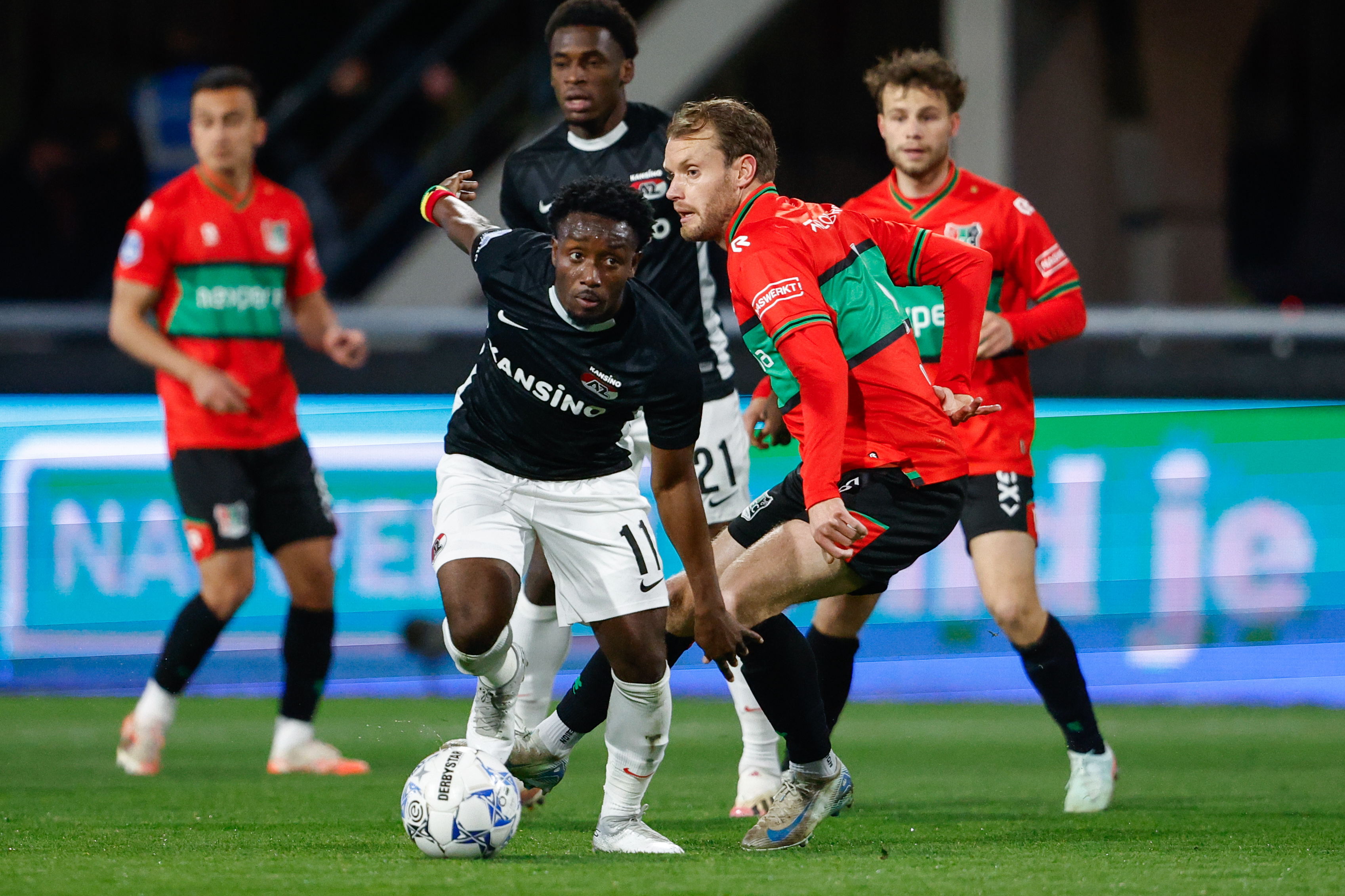 NIJMEGEN- AZ liep zondagmiddag tegen de eerste nederlaag van het seizoen aan. In Stadion De Goffert ging de ploeg van Maarten Martens met een 1-0 achterstand de rust in, maar zorgde Ibrahim Sadiq na een uur spelen voor de gelijkmaker. Tien minuten voor tijd kwamen de Nijmegenaren echter opnieuw op voorsprong, en kon AZ hier niet meer van terugkomen: 2-1.