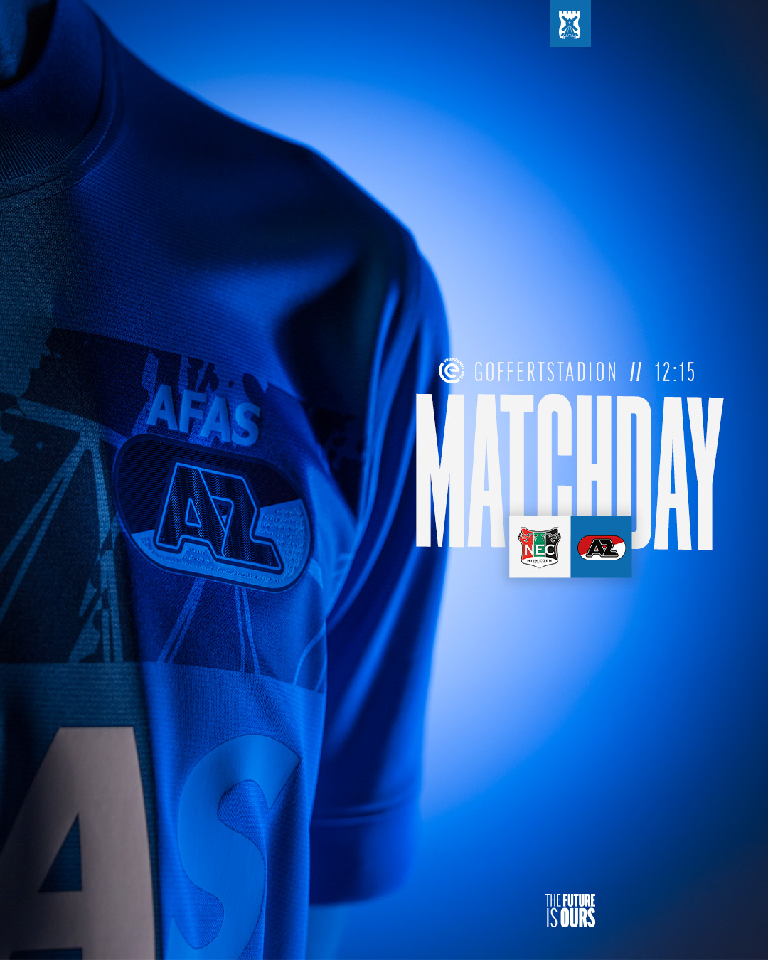 Uit een corner van AZ komt de afvallende bal terecht bij Wouter Goes. De verdediger ziet zijn poging van buiten het zestienmetergebied echter over het Nijmeegse doel gaan.