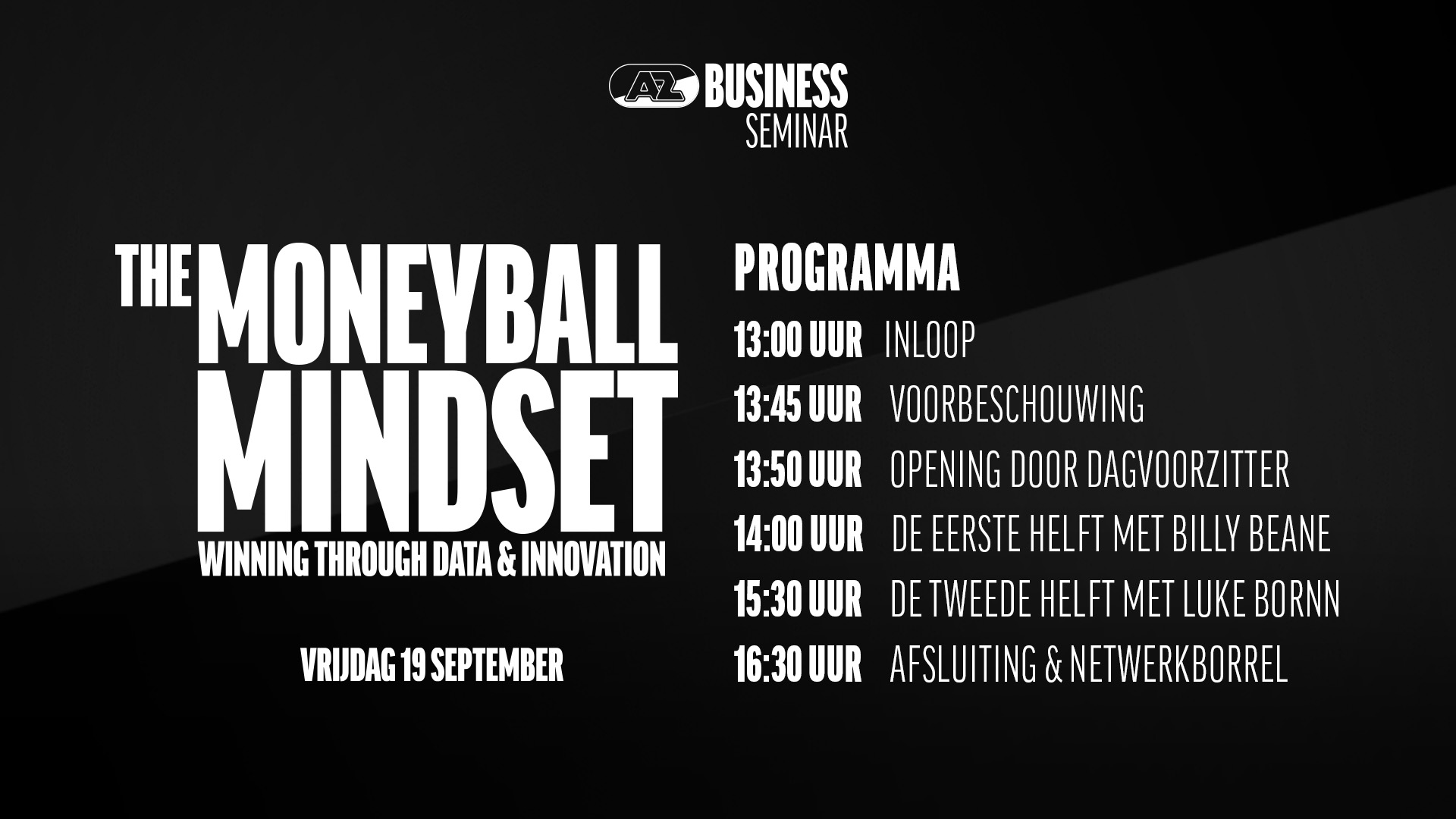 Dit wil je écht niet missen! Op vrijdag 19 september organiseert AZ Business het exclusieve seminar “The Moneyball Mindset - Winning through Data & Innovation”, met twee absolute wereldsprekers die de sport én het bedrijfsleven voorgoed hebben veranderd. Een primeur in Nederland!