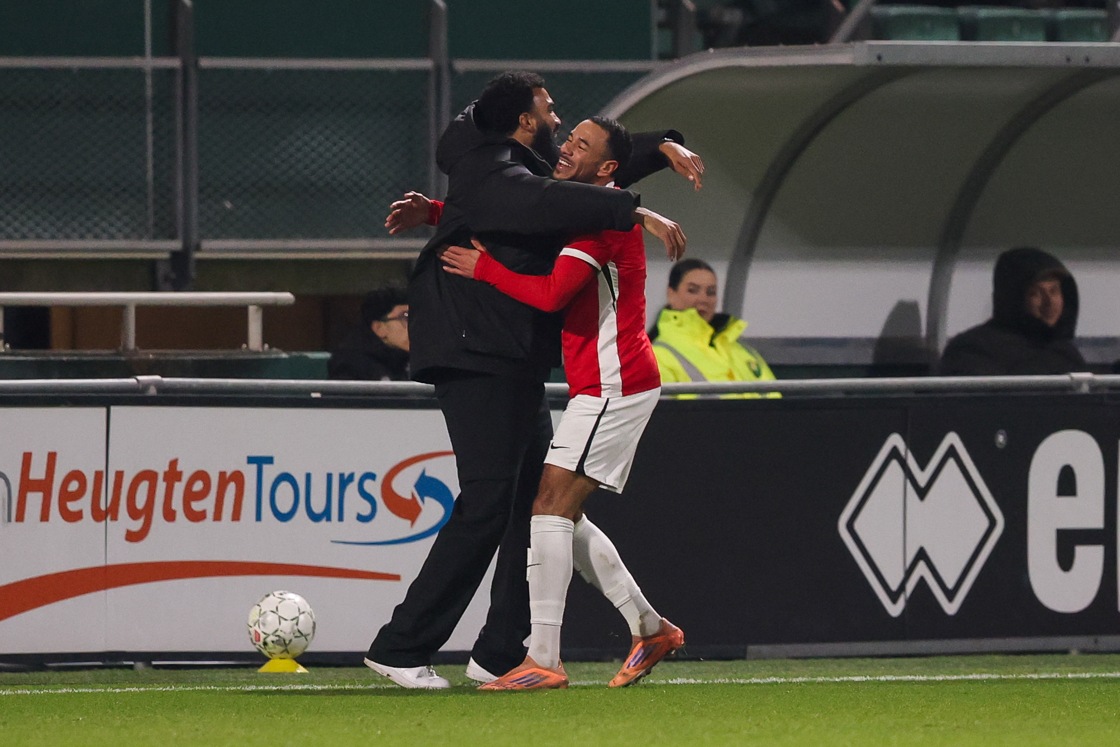 Jong AZ krijgt kansen op tot 0-2 te komen, maar Anthony Smits ziet zijn poging van dichtbij via Nikiema naast gaan.
