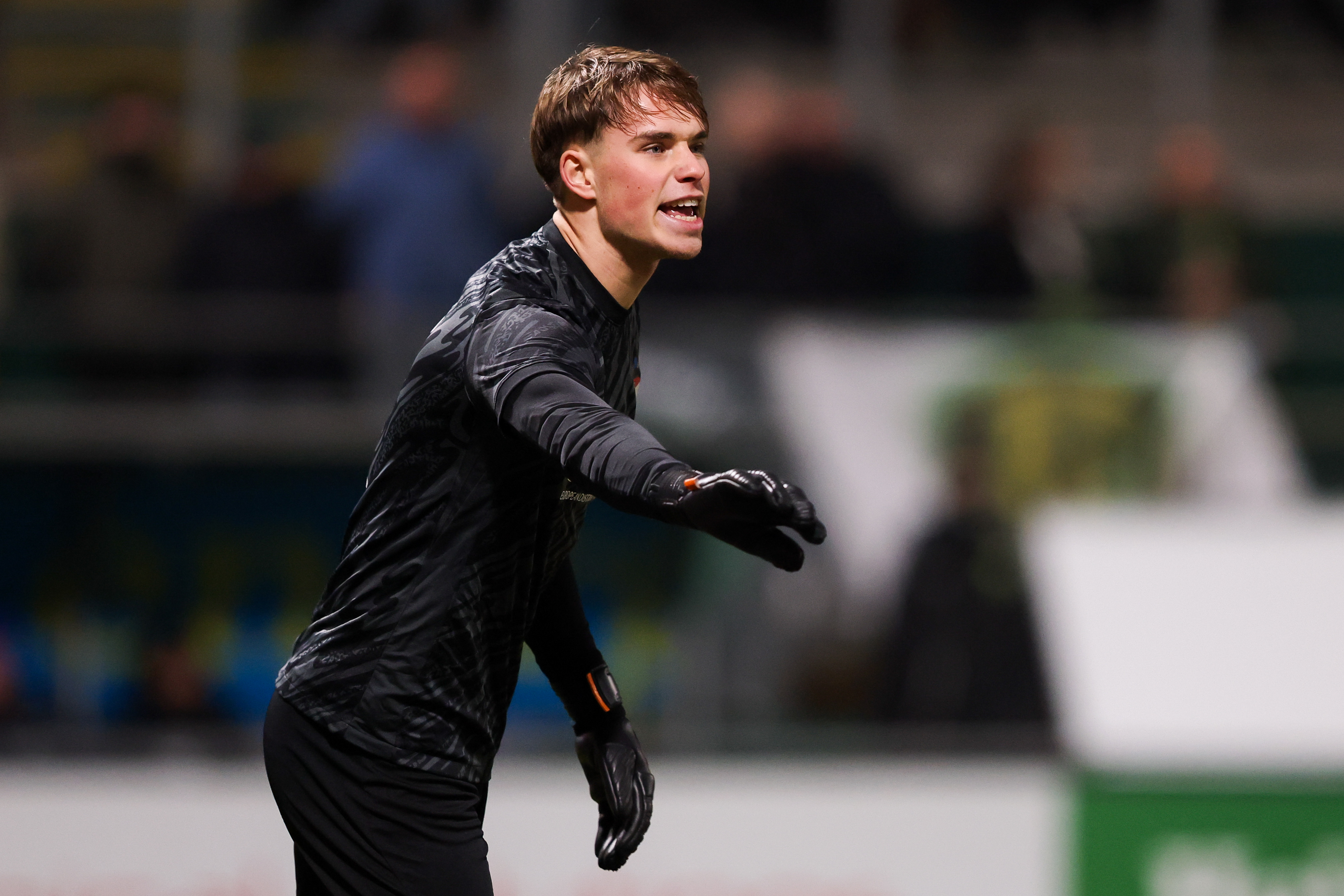 Jur Schipper weet nogmaals zijn doel schoon te houden na een goede redding met de voeten op de inzet van Evan Rottier.