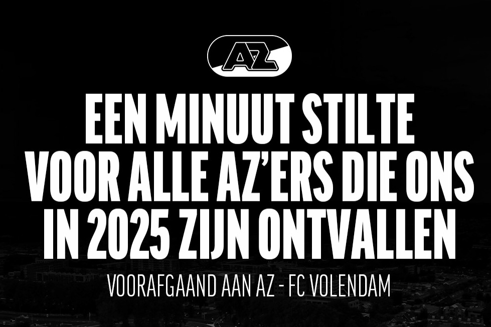 Voorafgaand aan de aftrap roepen wij alle supporters op om op tijd in het stadion aanwezig te zijn. Samen staan we stil bij alle AZ’ers die ons in 2025 zijn ontvallen. Met een moment van herdenking eren we hun herinnering en tonen we ons respect, als één club en één familie. We rekenen op ieders aanwezigheid en medewerking om dit moment de aandacht te geven die het verdient.