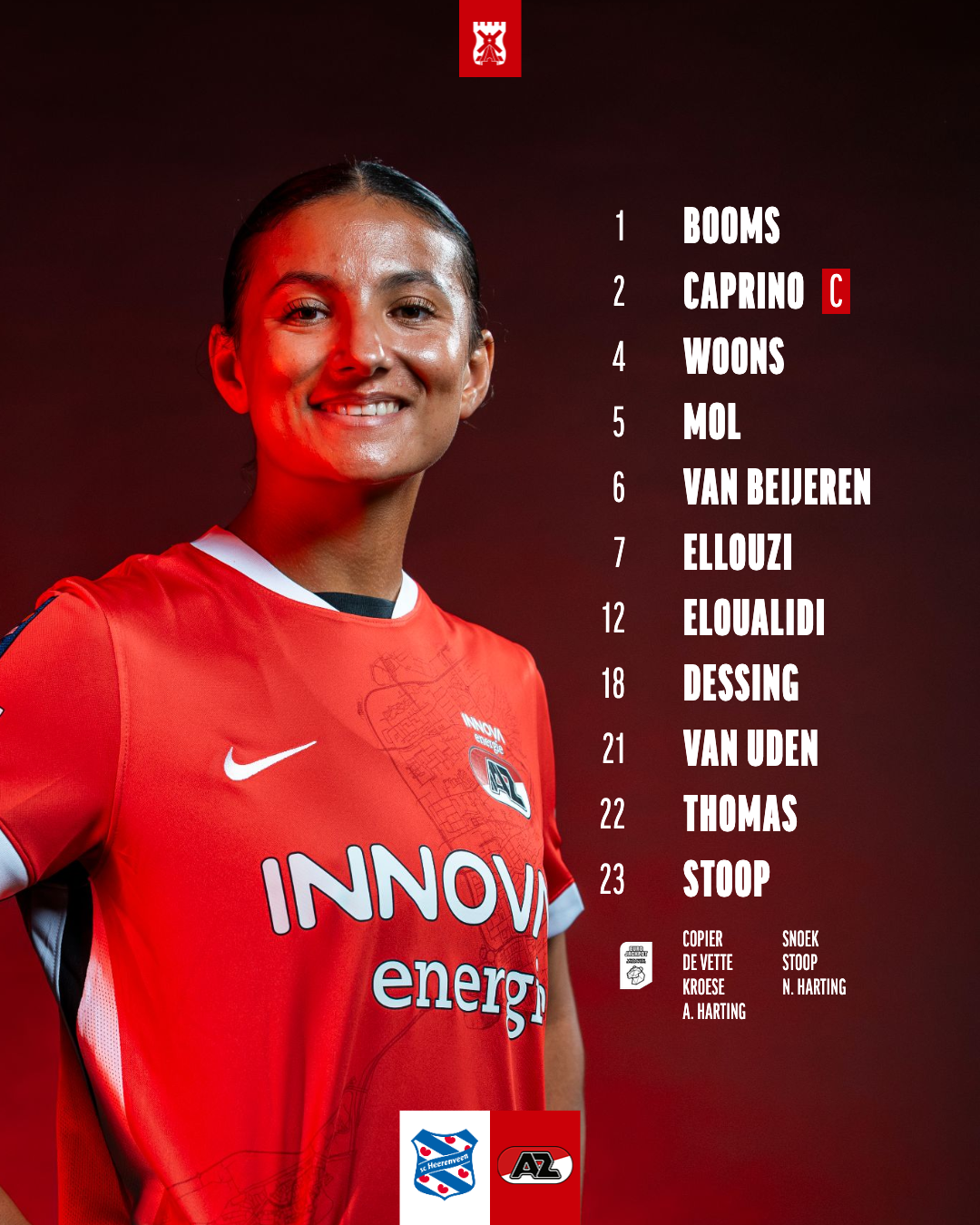 Ayah Eloualidi en Sabrine Ellouzi maken vandaag hun basisdebuut, terwijl Jet Snoek en Nikita Harting voor het eerst bij de selectie zitten.