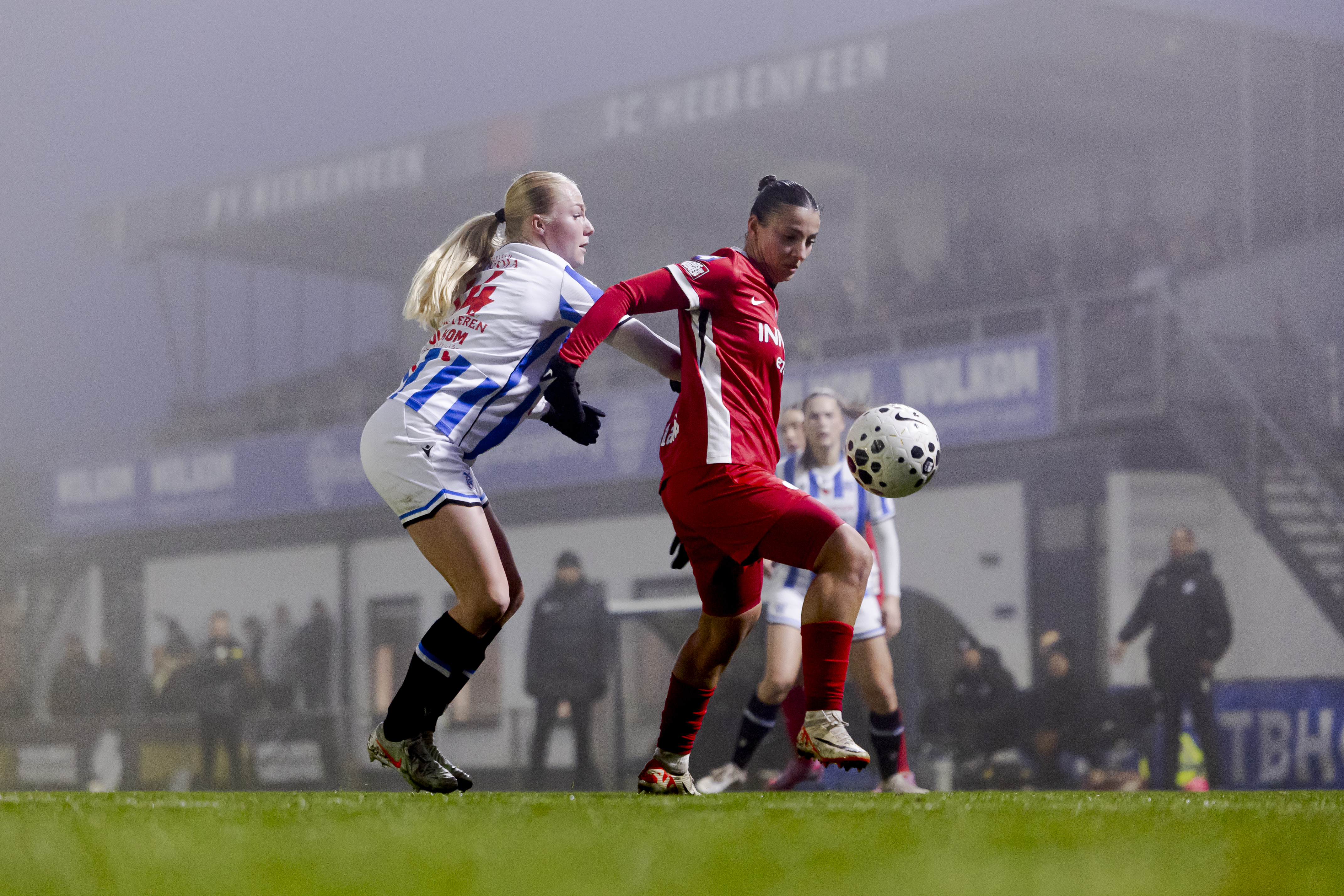 HEERENVEEN- De AZ Vrouwen verloren zondagavond nipt van sc Heerenveen. In Friesland kwam de ploeg van trainer Wouter de Vogel tot tweemaal toe terug van een achterstand, maar slaagde er uiteindelijk niet in een nederlaag te voorkomen: 3-2. De Alkmaarse doelpunten kwamen op naam van Sabrine Ellouzi en Maudy Stoop.