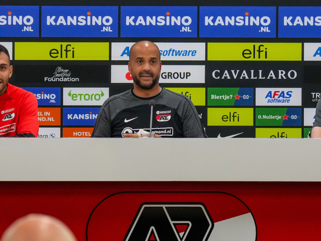 ALKMAAR- AZ staat aan de vooravond van een belangrijk duel met SK Brann in de Play-offs van de UEFA Europa Conference League. Woensdagmiddag namen Vangelis Pavlidis en Pascal Jansen de tijd om met de pers vooruit te blikken op de heenwedstrijd in het AFAS Stadion.