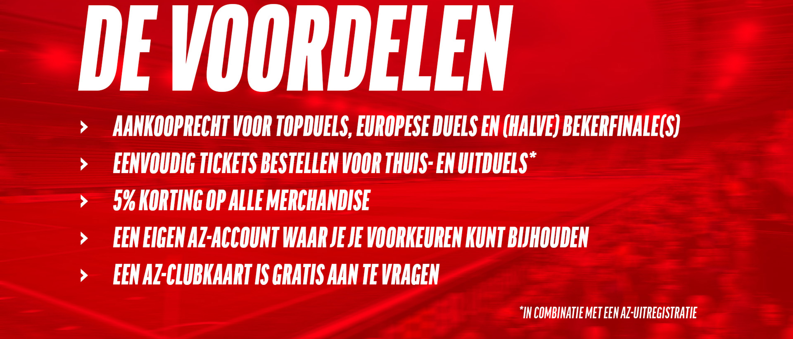 Je kunt alleen een AZ-clubkaart aanvragen indien je niet in het bezit bent van een club- of seizoenkaart van AZ of een andere Nederlandse voetbalclub.